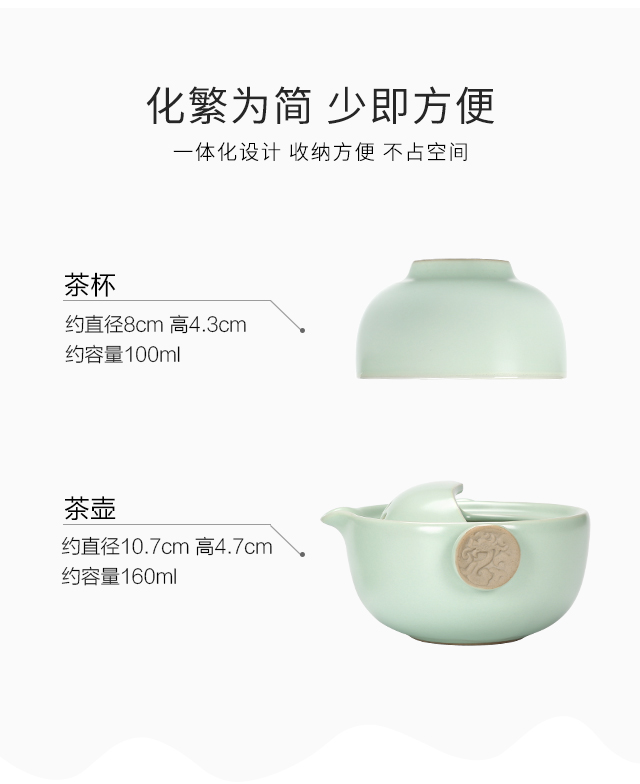 金镶玉 茶具茶壶茶杯 功夫旅行茶具套装泡茶壶 快客杯飘逸杯盖碗汝窑 祥龙快客杯