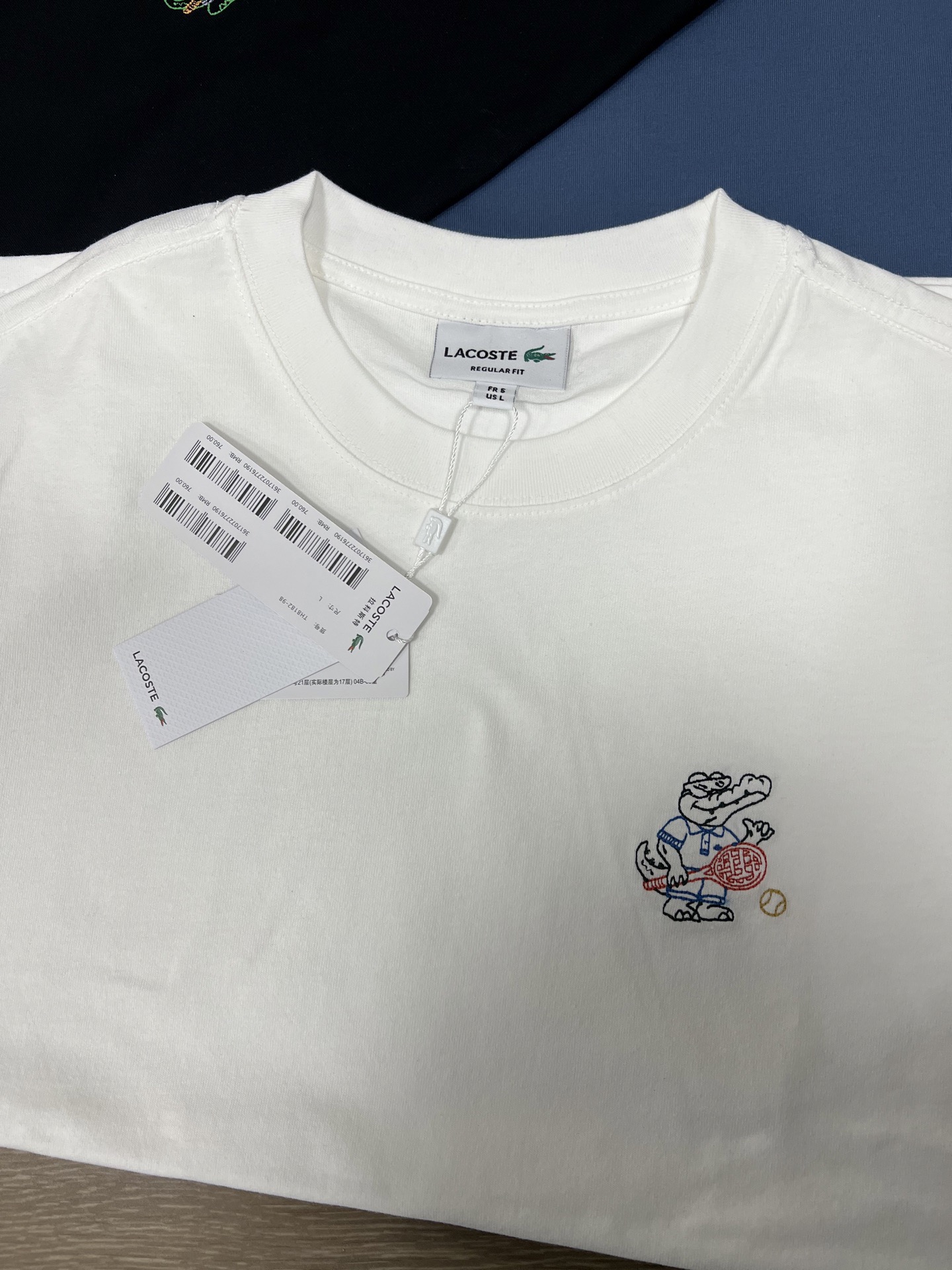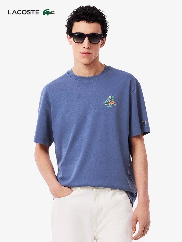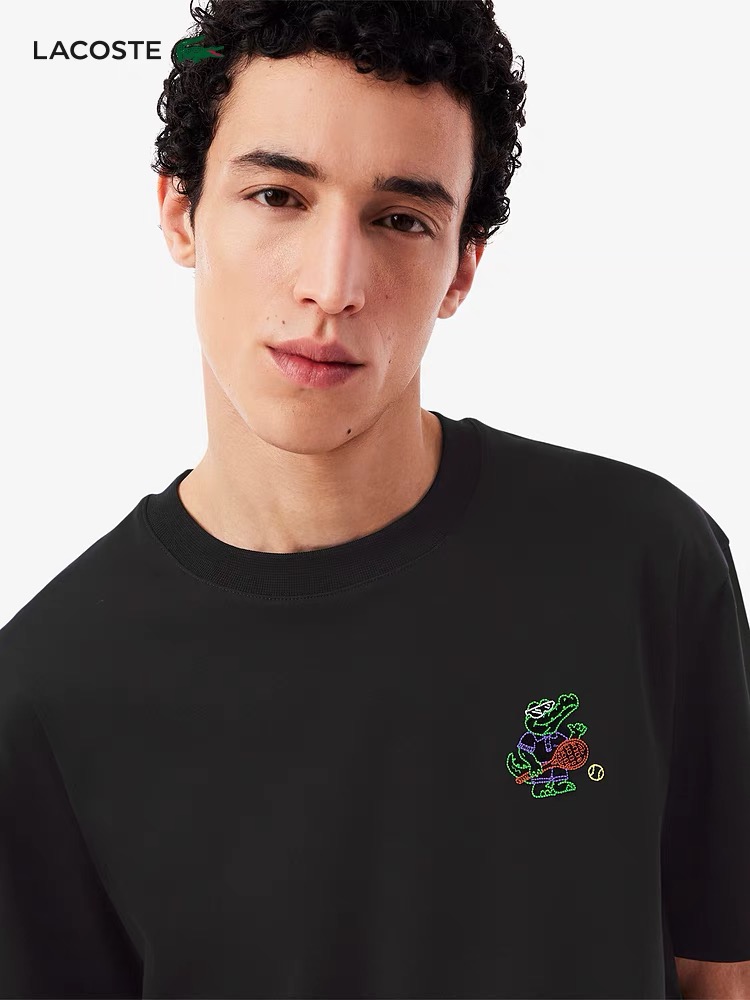 法鱼圆领短袖T恤。胸前刺绣+袖口小鳄鱼LOGO设计。面料舒适透气。