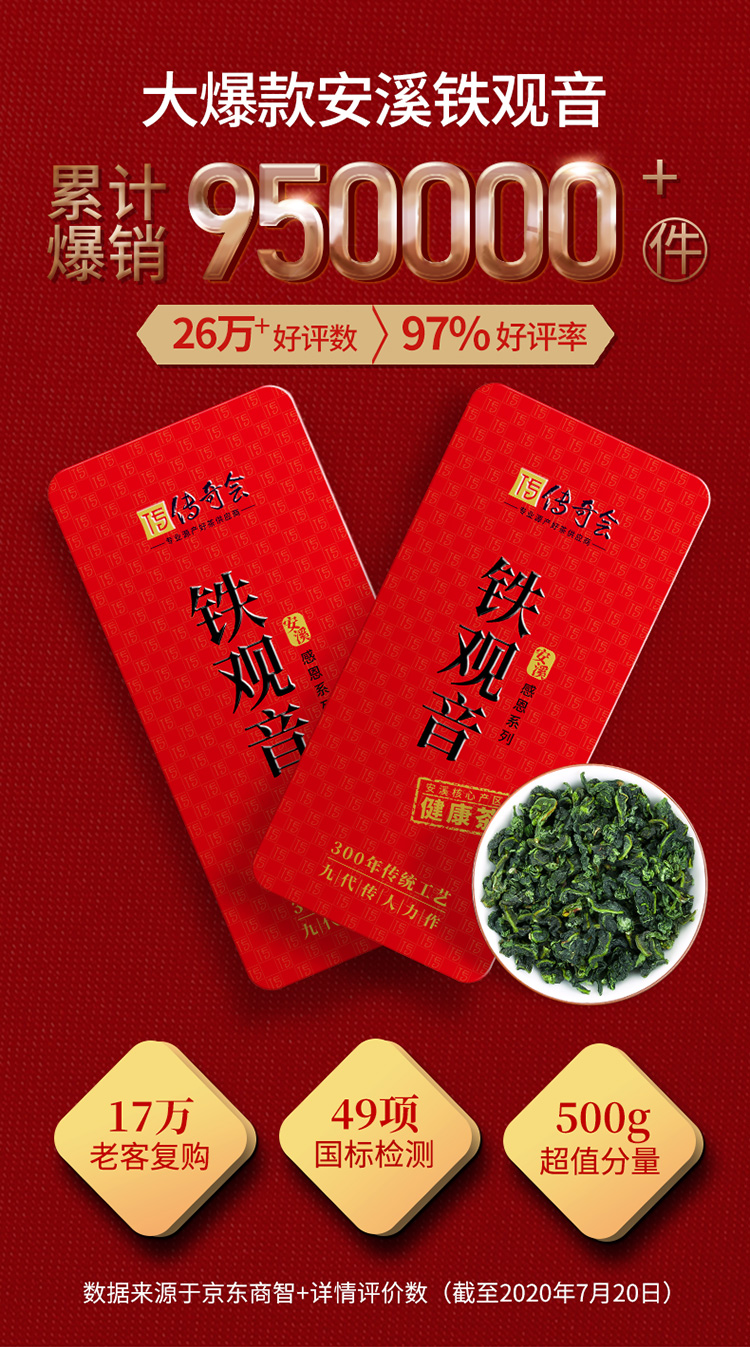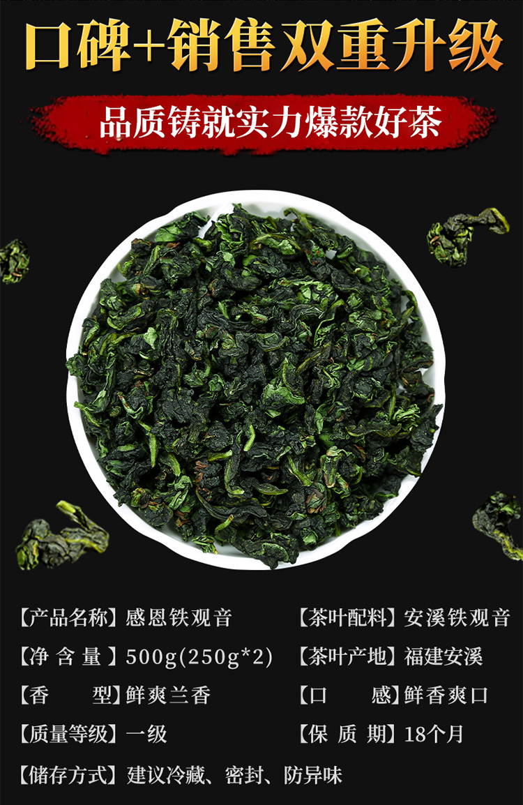 传奇会茶叶 无农残清香型安溪铁观音茶叶礼盒装 正宗兰花香福建乌龙茶送礼非散装500g(250g*2)