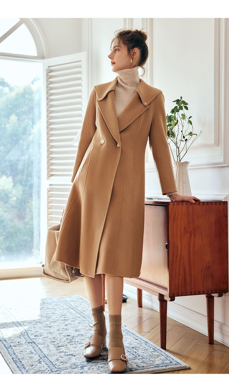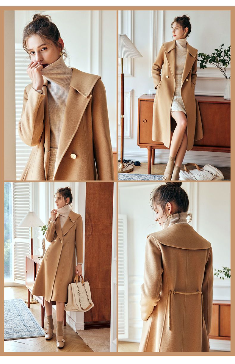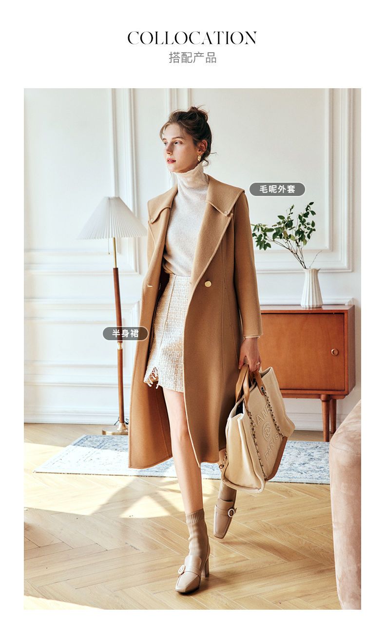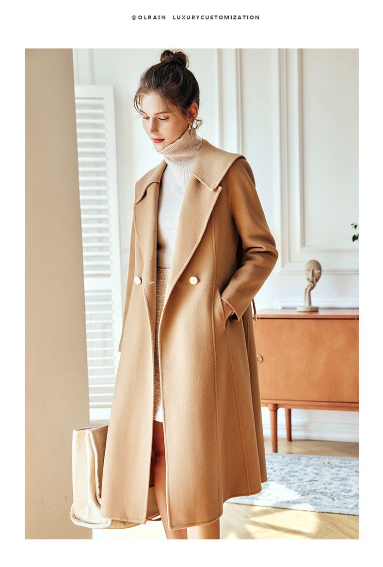 OLrain欧芮儿法式双面呢毛呢外套女春2025年新款中长款羊毛大衣