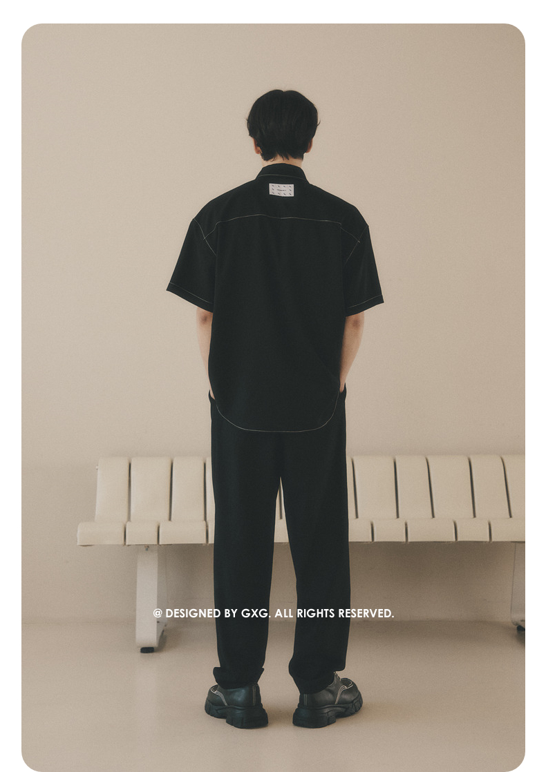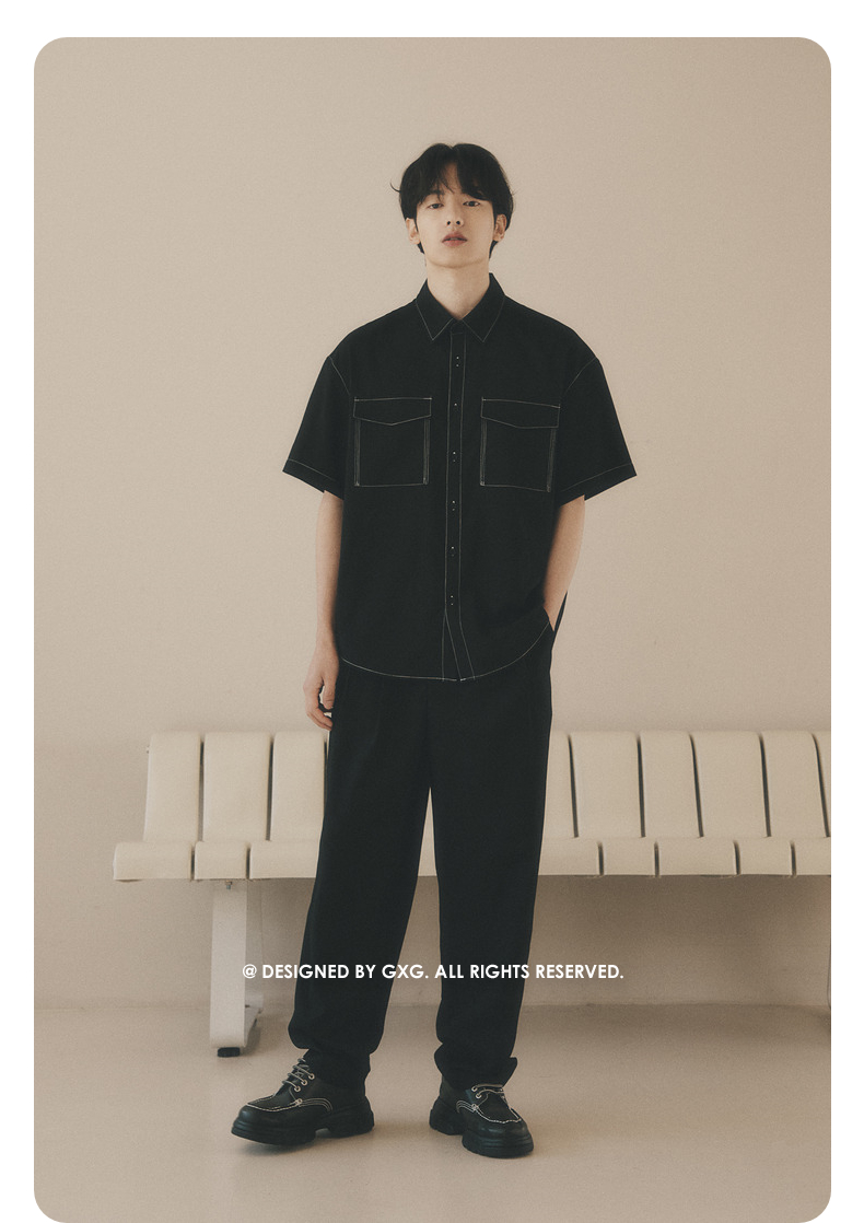 GXG男装 非正式通勤1.0黑色工装潮流时尚短袖衬衫 夏季热卖