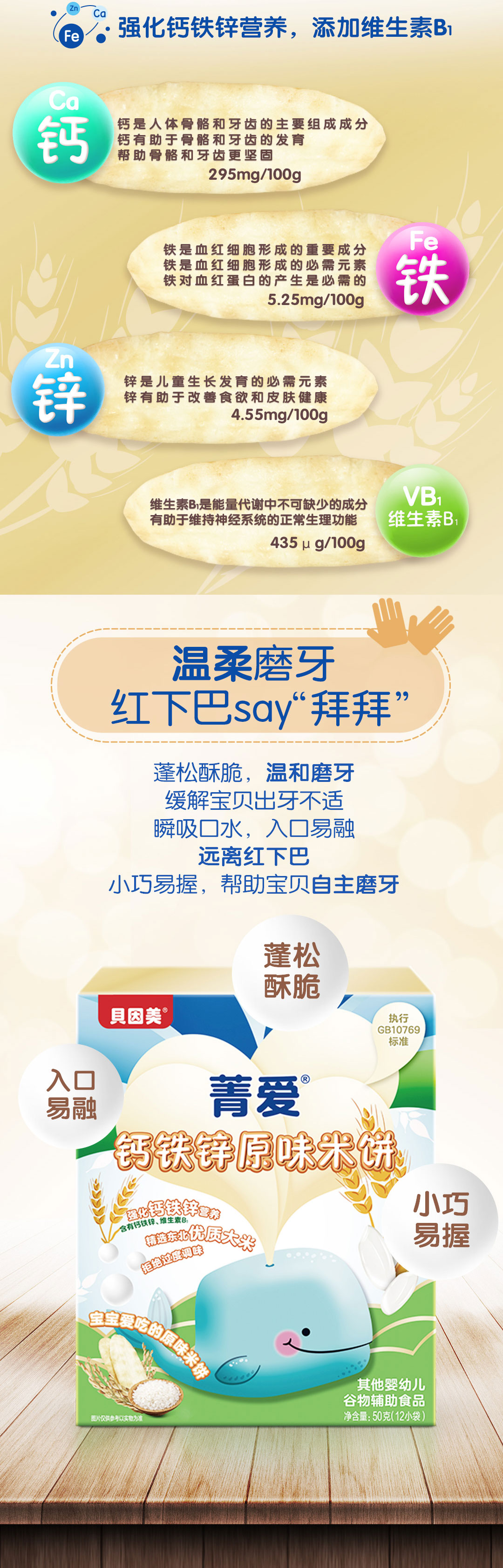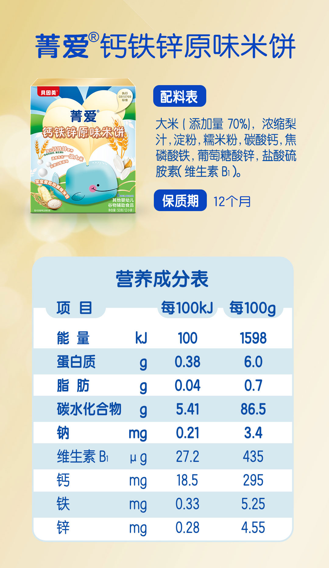 【新品】菁爱婴幼儿钙铁锌原味米饼