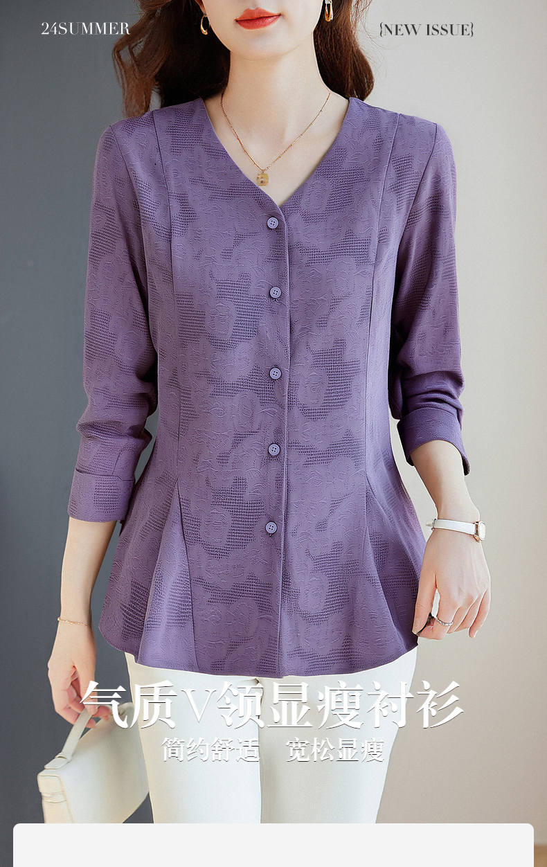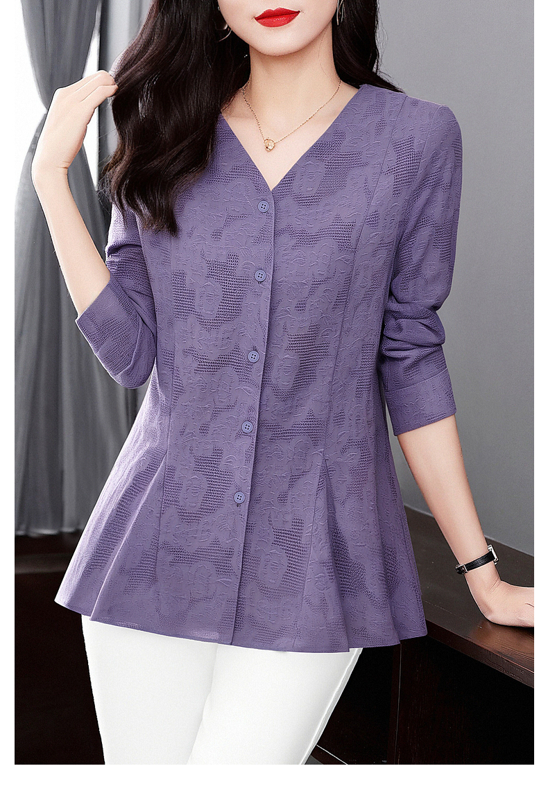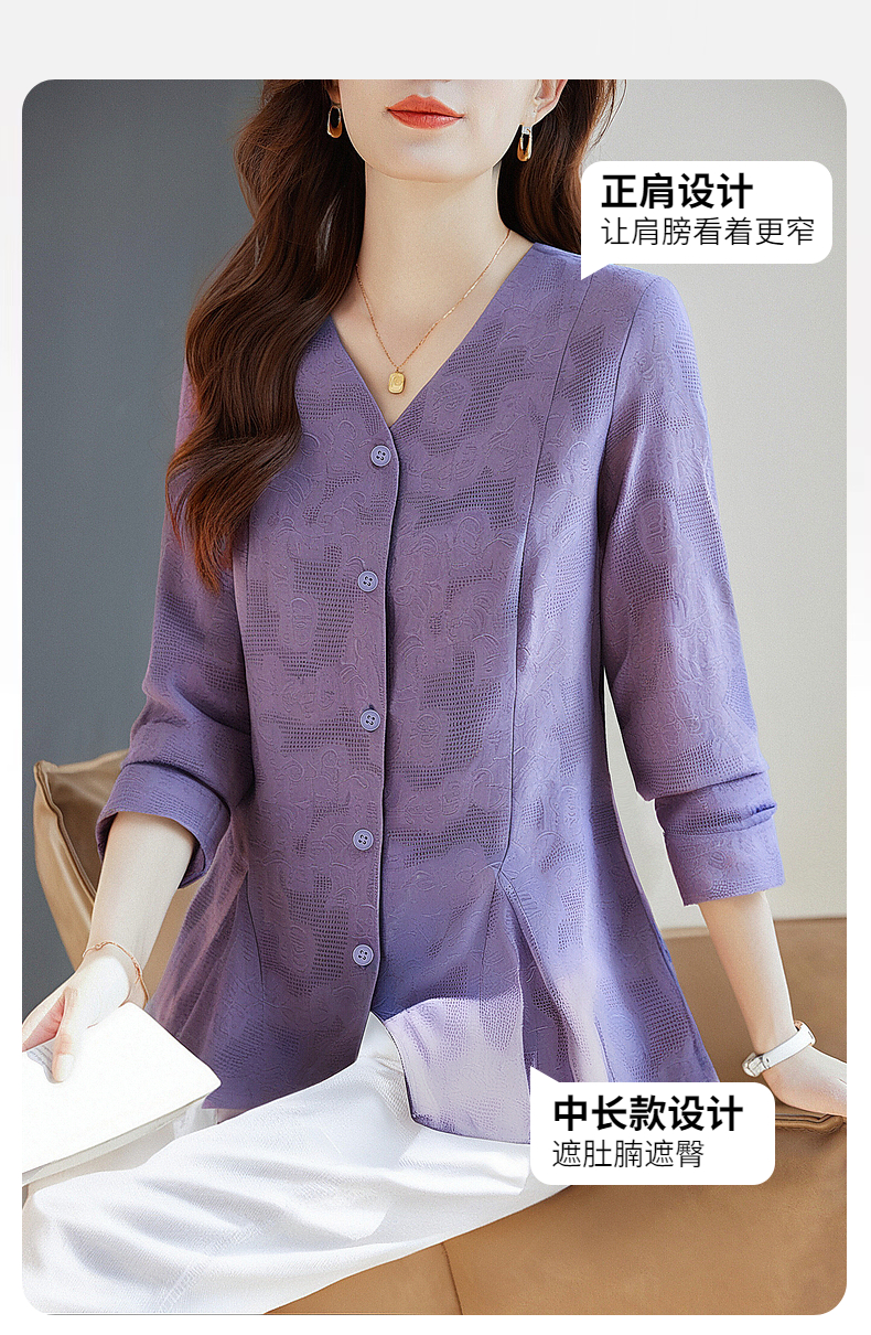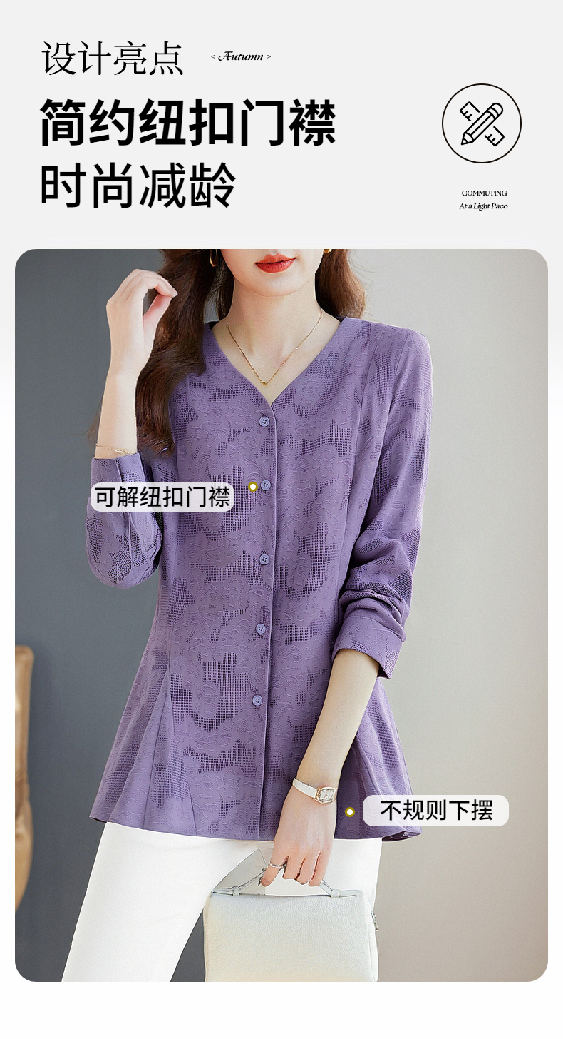 春秋上衣2026新款大码女装妈妈洋气衬衣外套紫色长袖女士衬衫高级