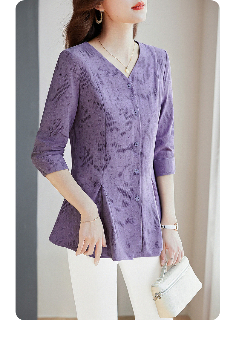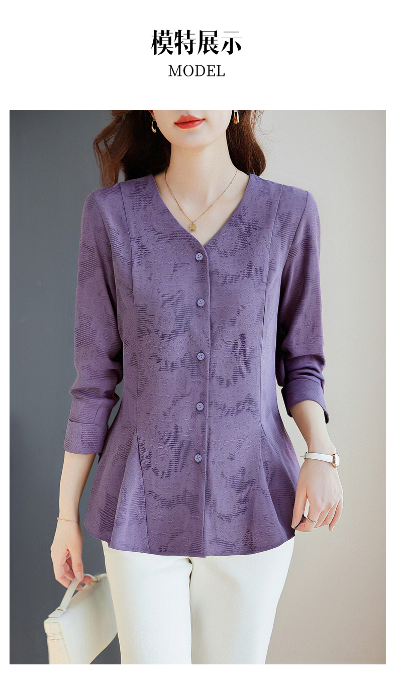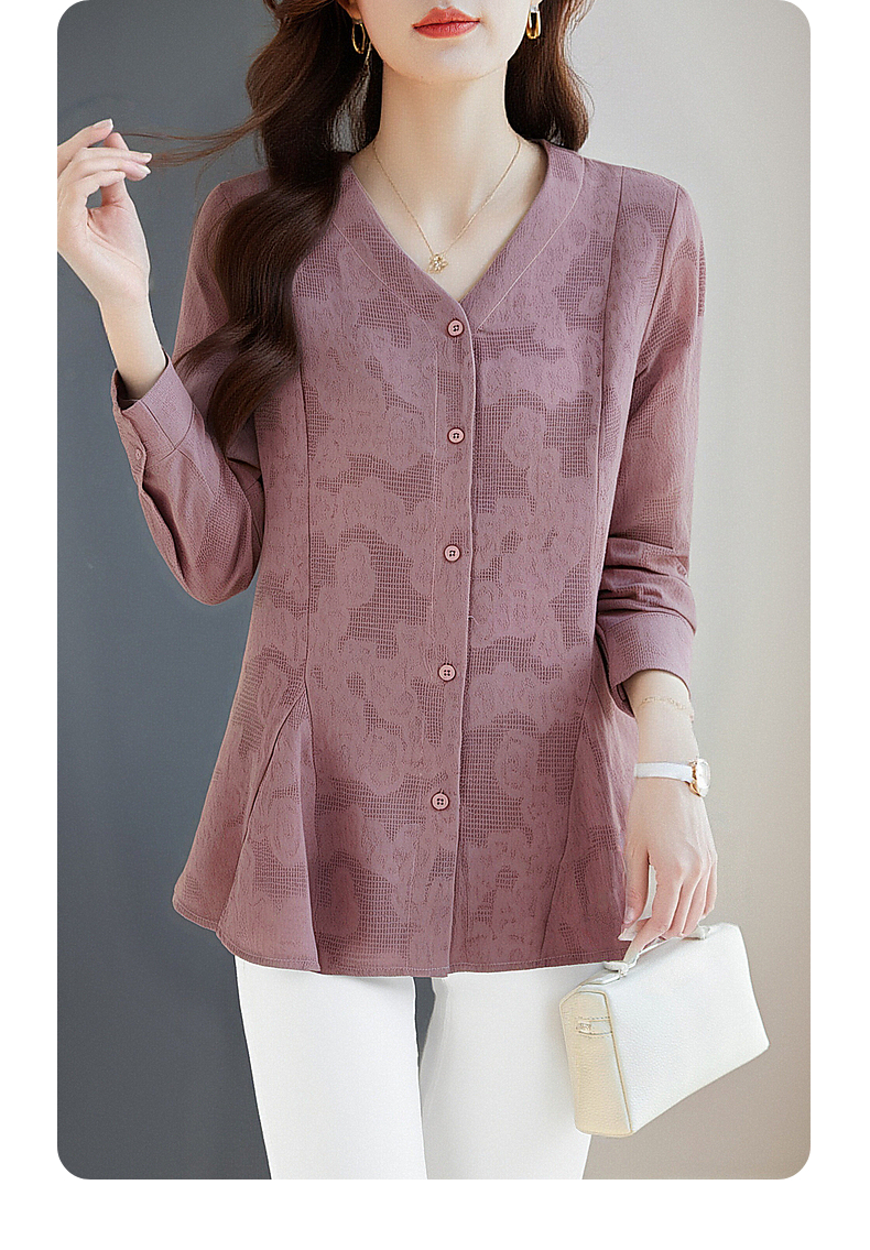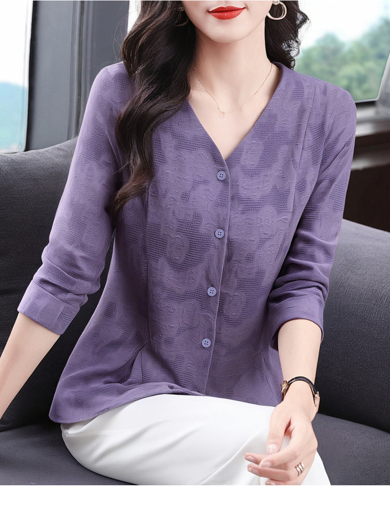 春秋上衣2026新款大码女装妈妈洋气衬衣外套紫色长袖女士衬衫高级