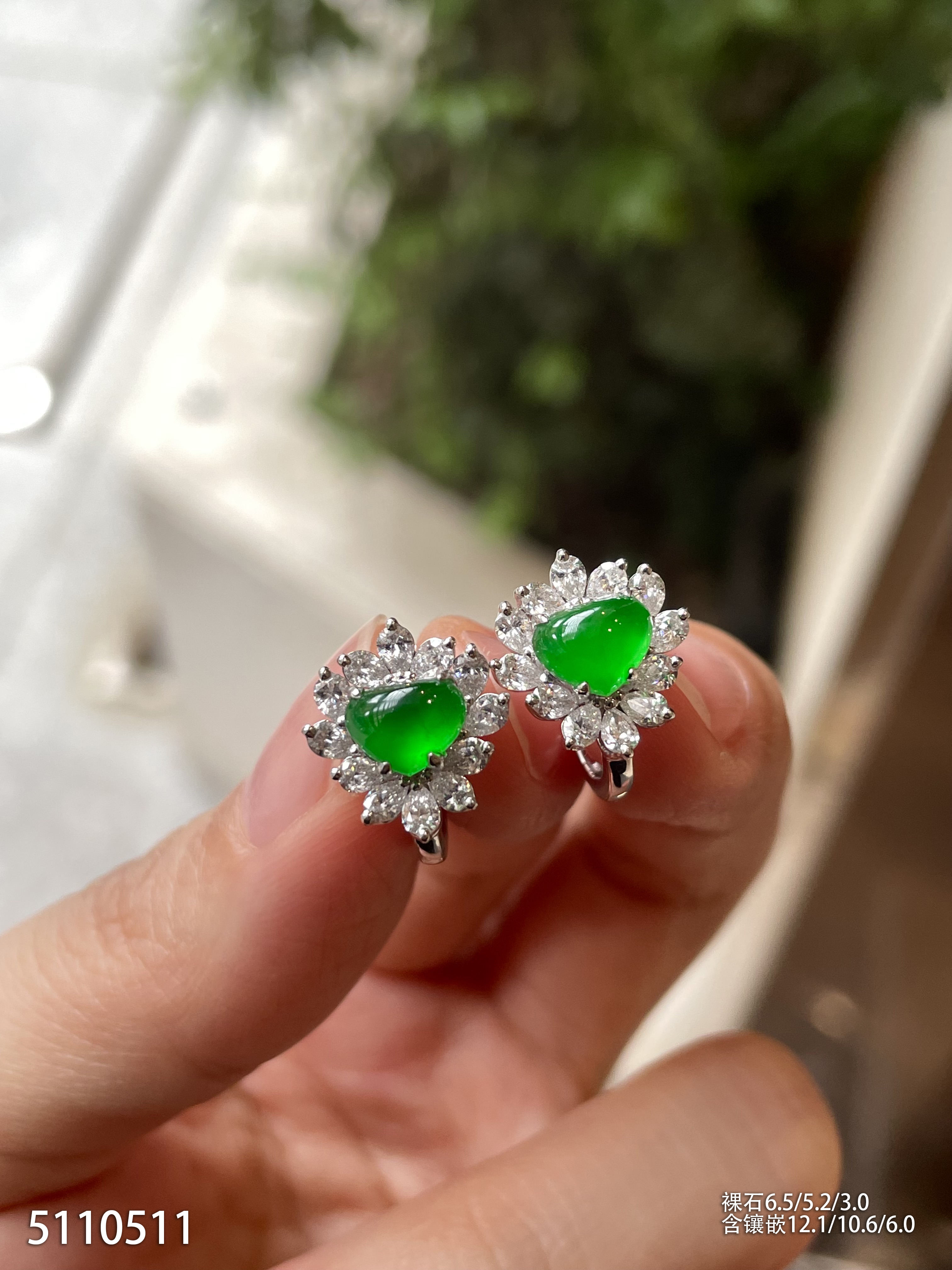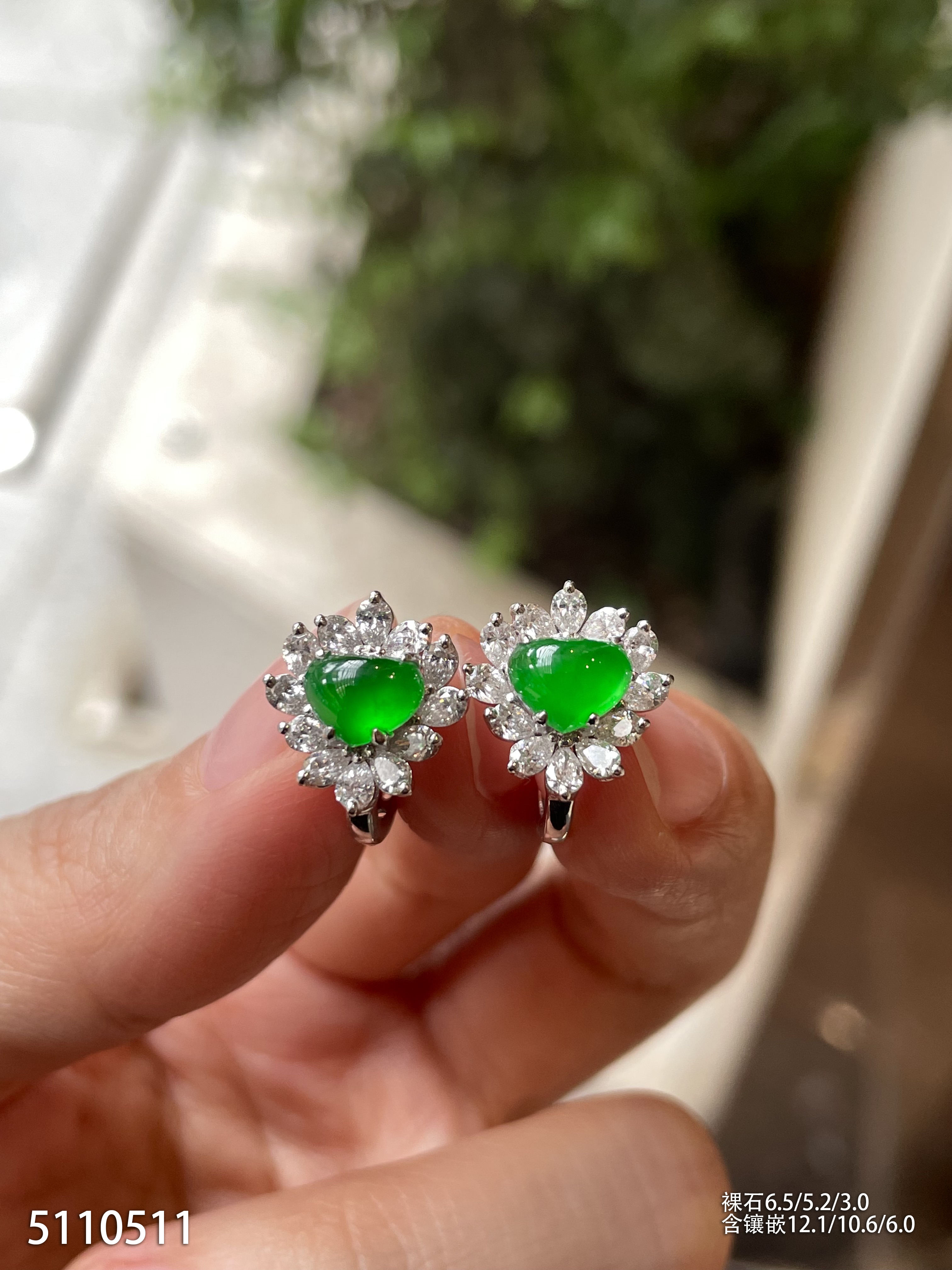 高冰种艳绿葫芦耳坠 72999【6024304】