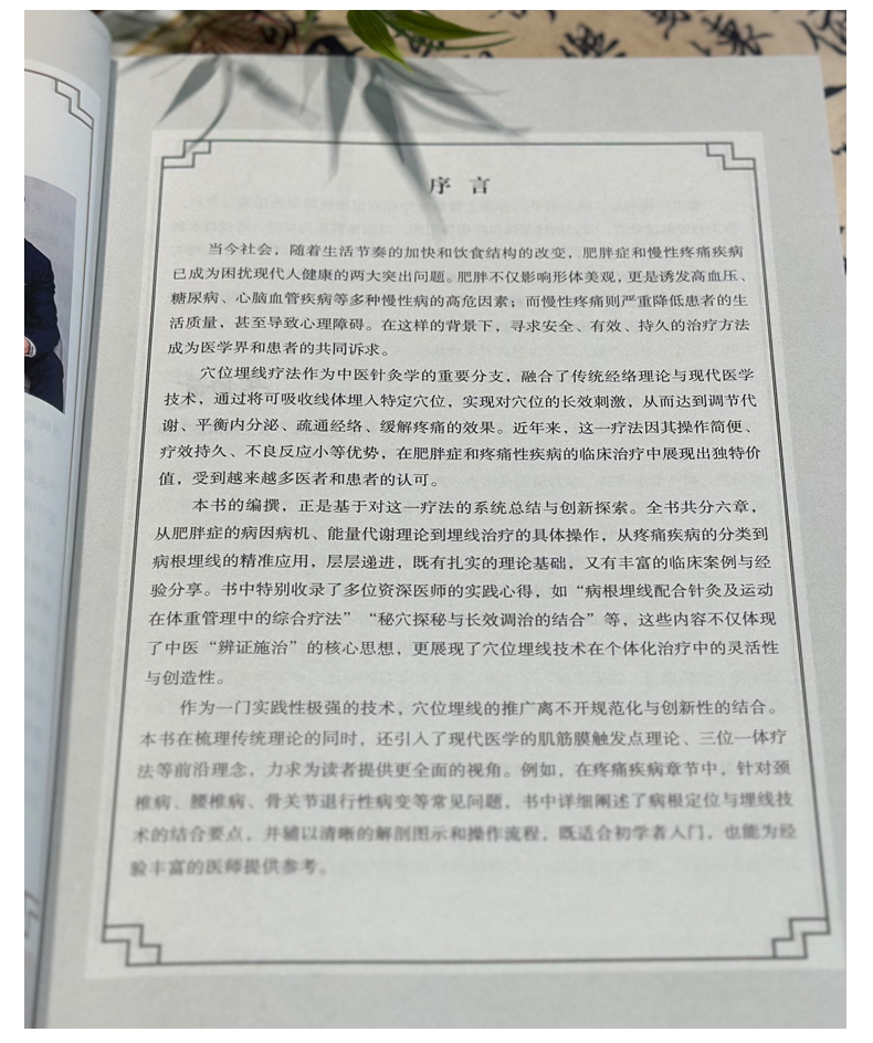 全书共分六章,从肥胖症的病因病机、能量代谢理论到埋线治疗的具体操作,从疼痛疾病的分类到病根埋线的精准应用,层层递进,既有扎实的理论基础,又有丰富的临床案例与经验分享。本书的编写立足于临床实践,兼顾理论与技术,既适合针灸医师、疼痛科医生参考,也可作为中医药院校师生和研究人员的辅助读物。