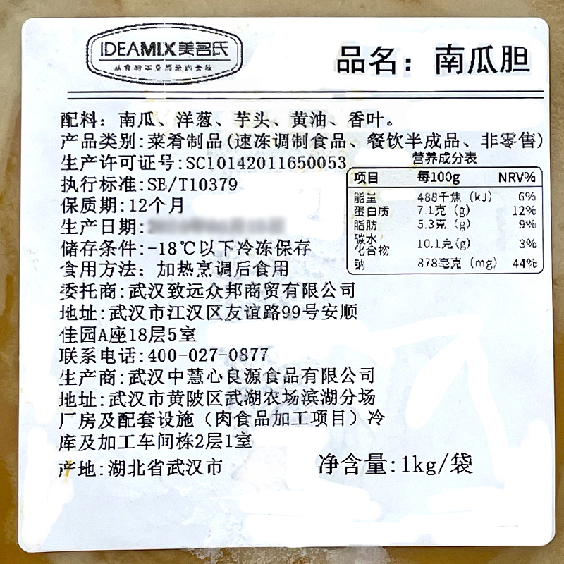 美名氏南瓜胆1kg商用奶油南瓜汤酱法式汤品西餐店专用速食汤料包