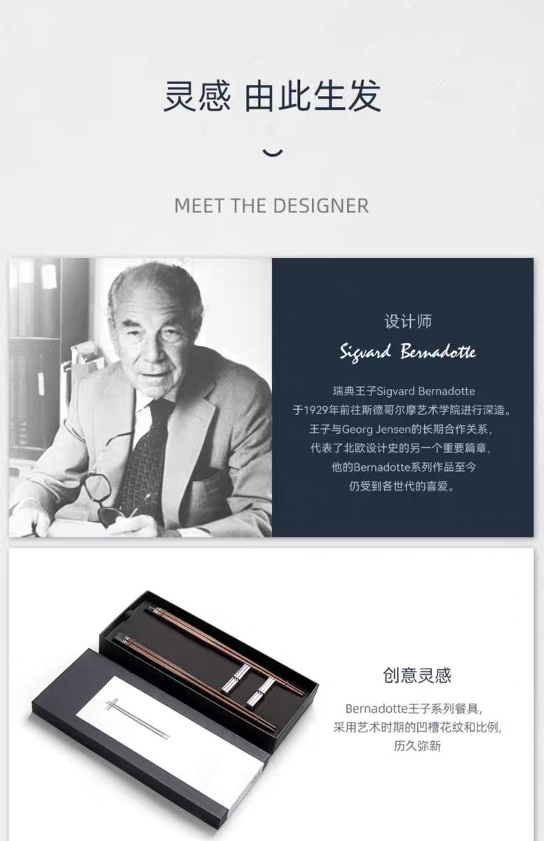Georg Jensen乔治杰生北欧不锈钢筷子轻奢家用高档餐具乔迁礼品