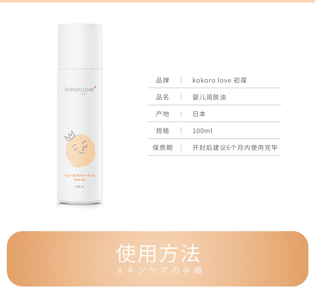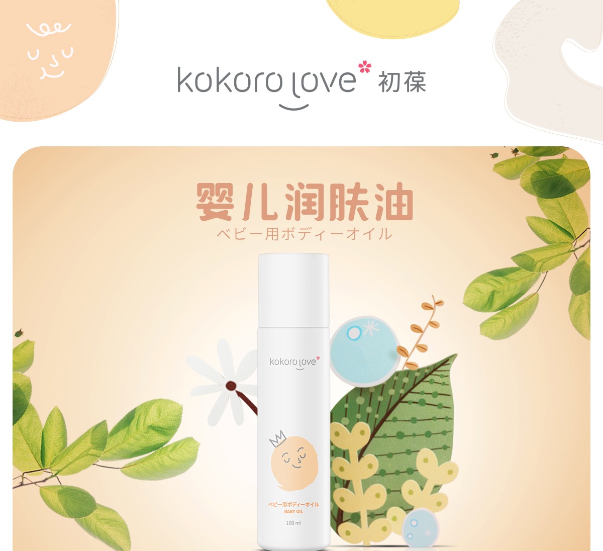 Kokoro love 初葆婴儿抚触油 清爽不腻儿童bb山菜籽油新生儿按摩油宝宝润肤油100ml