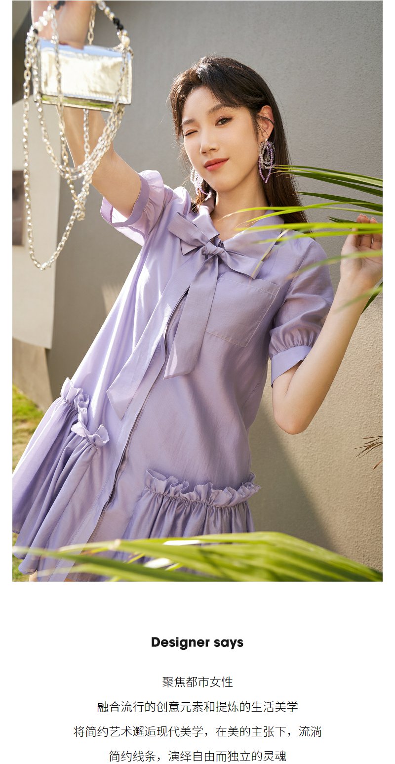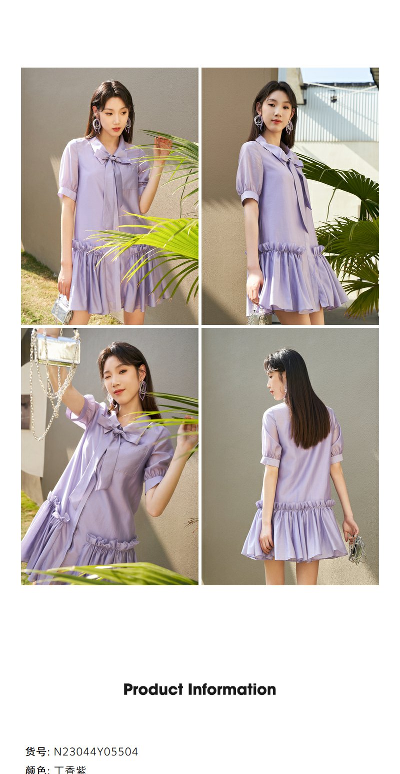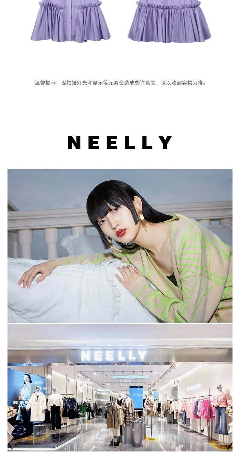 NEELLY纳俪夏季新款连衣裙女衬衫领系带娃娃裙减龄A字裙中长款N23044Y05504