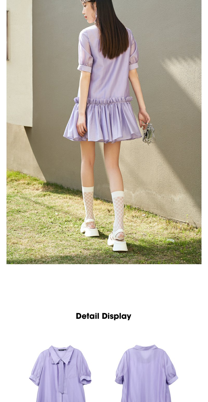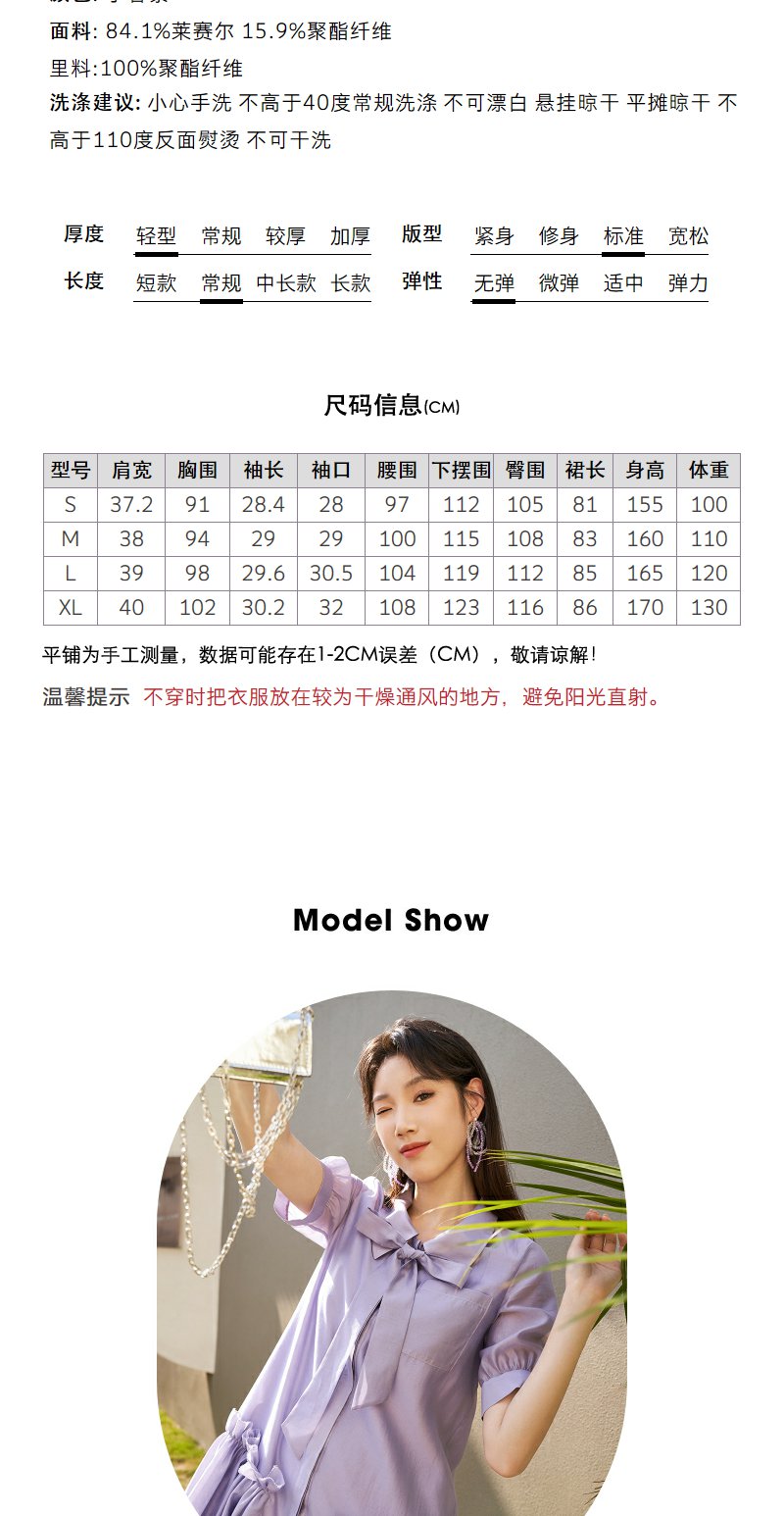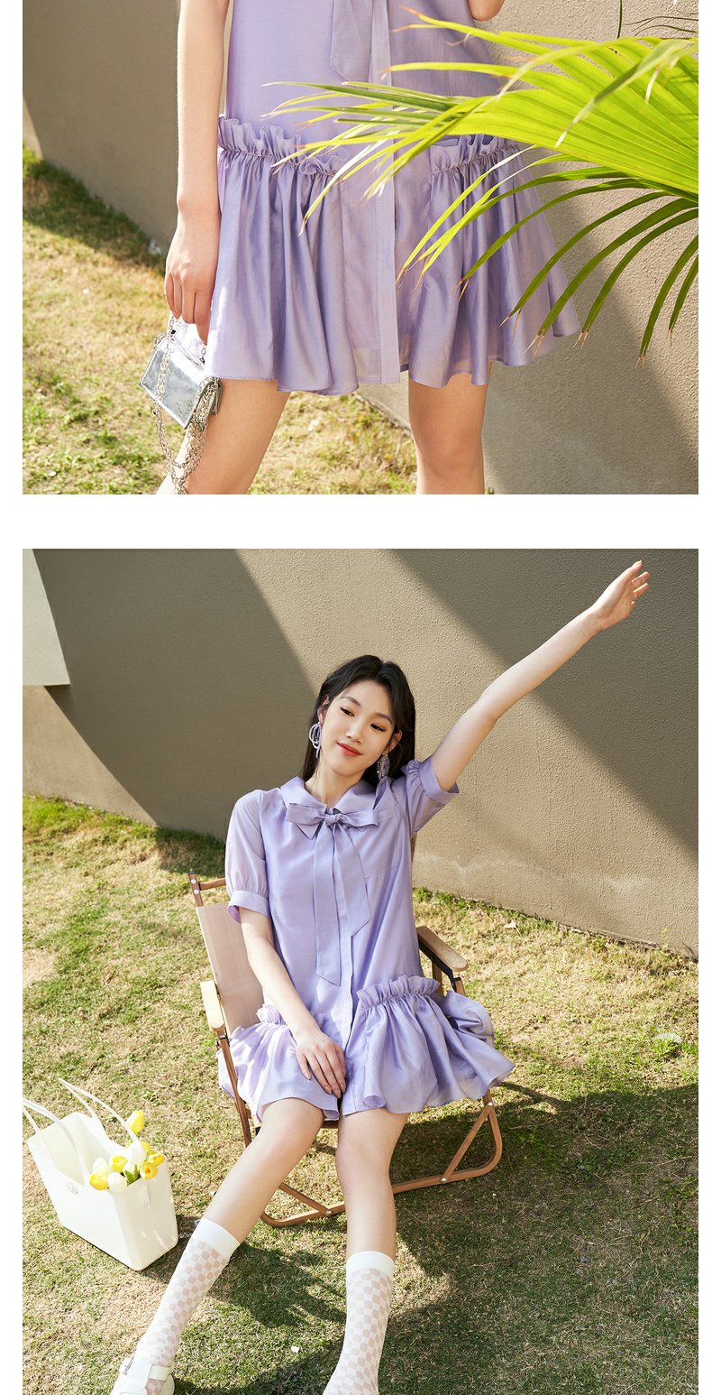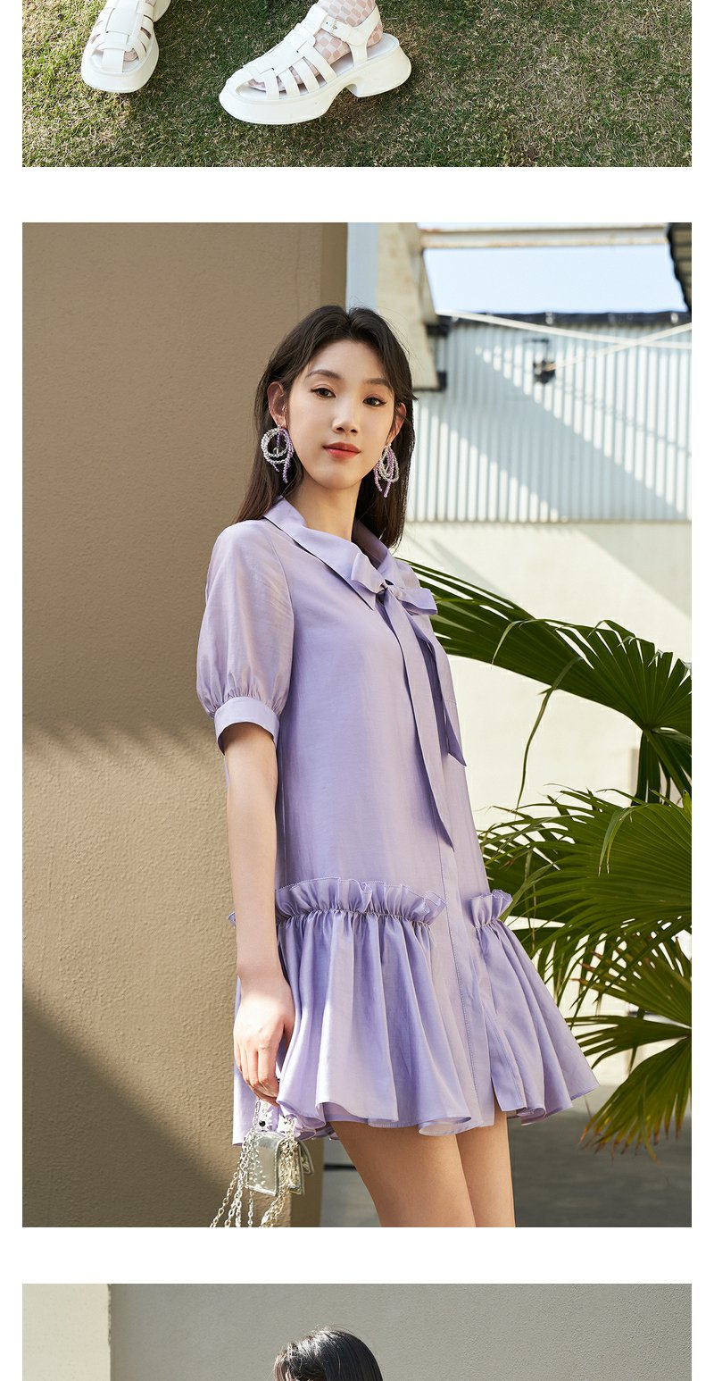 NEELLY纳俪夏季新款连衣裙女衬衫领系带娃娃裙减龄A字裙中长款N23044Y05504