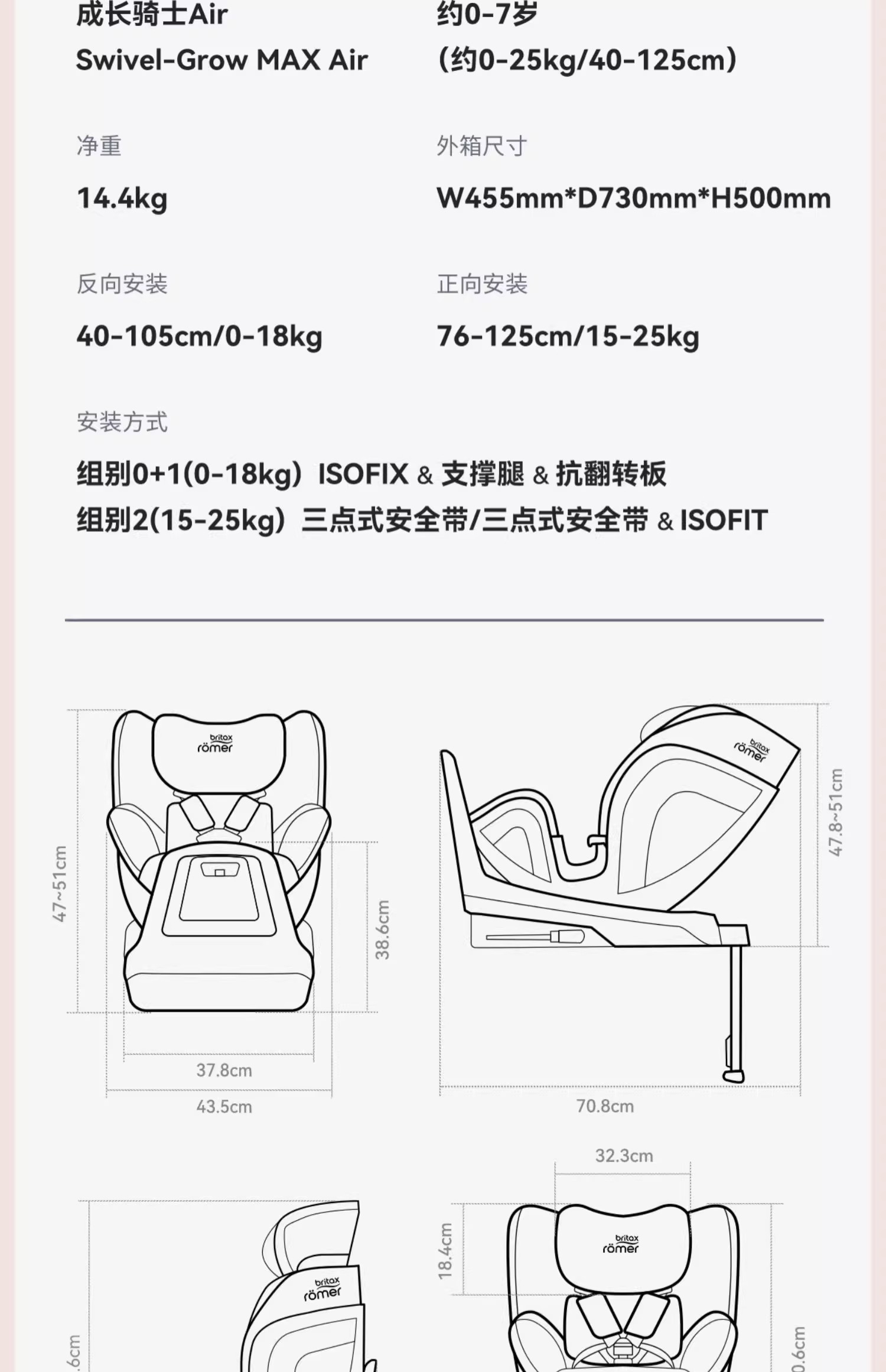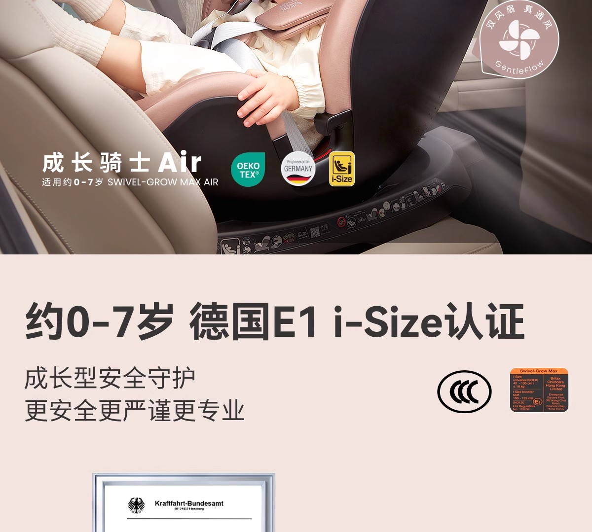 Britax宝得适 成长骑士Air Style 通风版 儿童安全座椅车载isize通风0-7岁