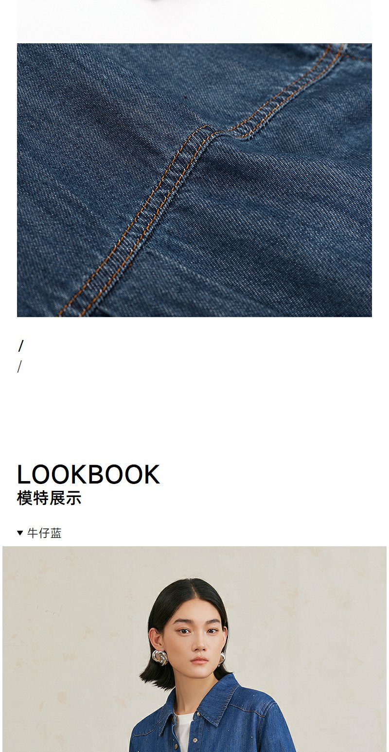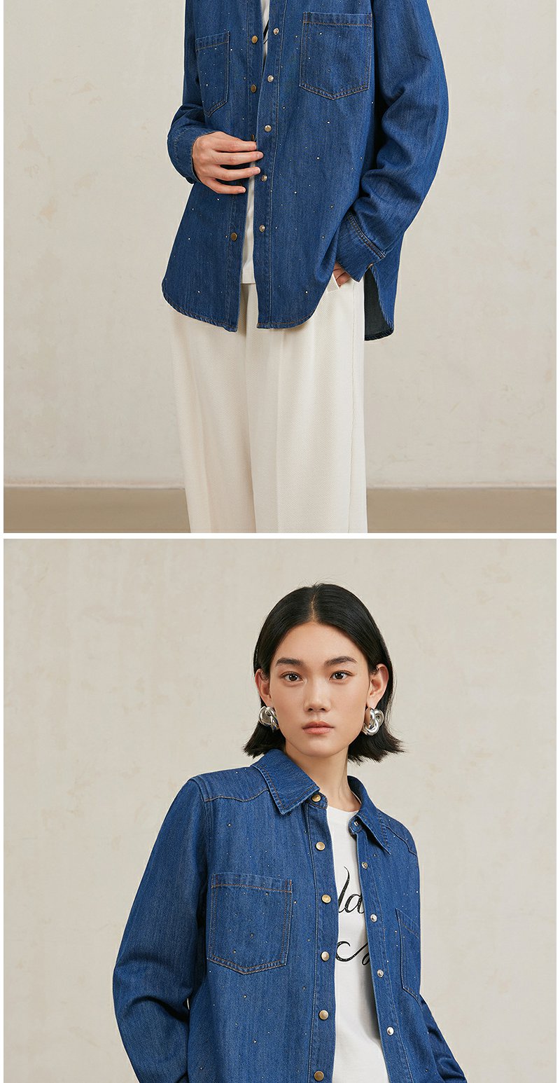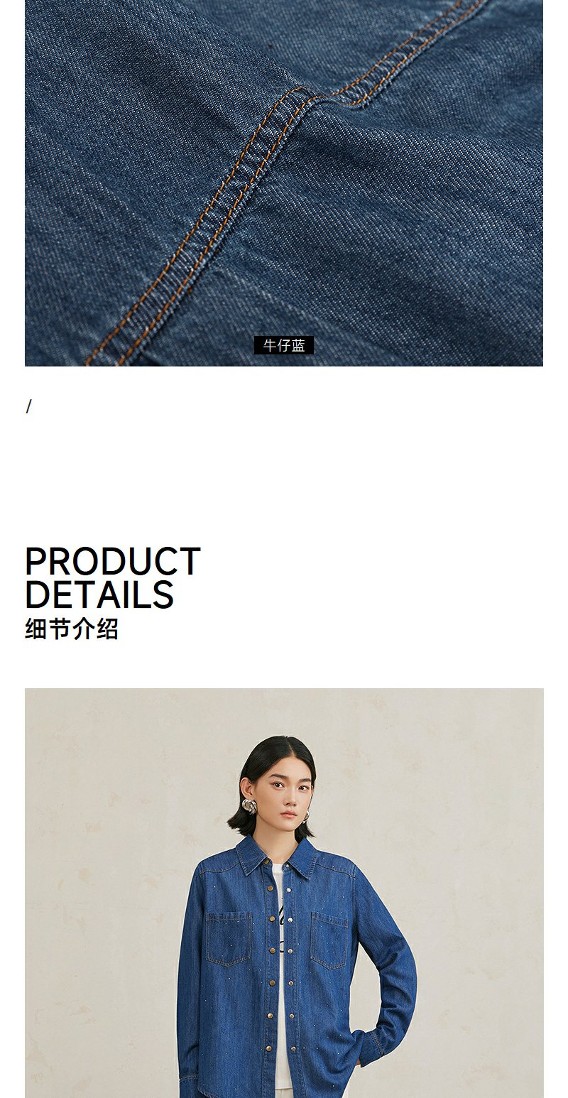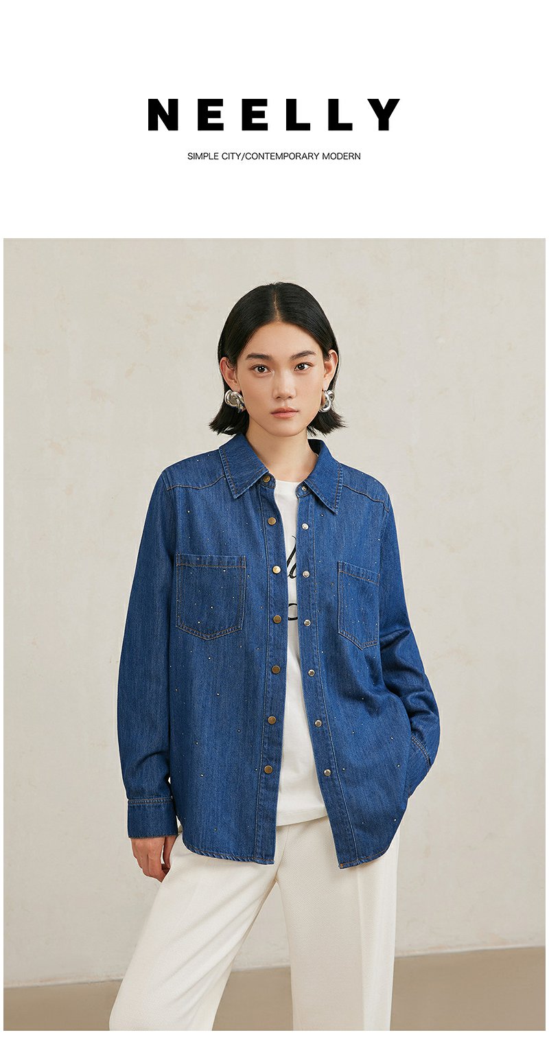 NEELLY纳俪商场同款冬季新款复古廓形衬衣女百搭显瘦牛仔衬衫上衣N25104B04514