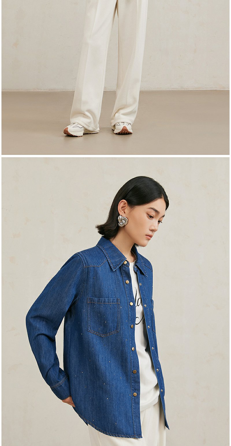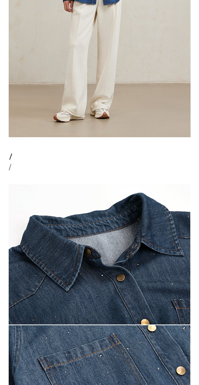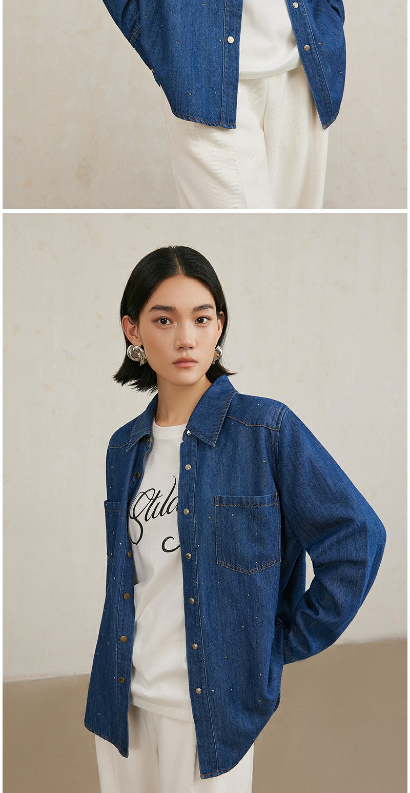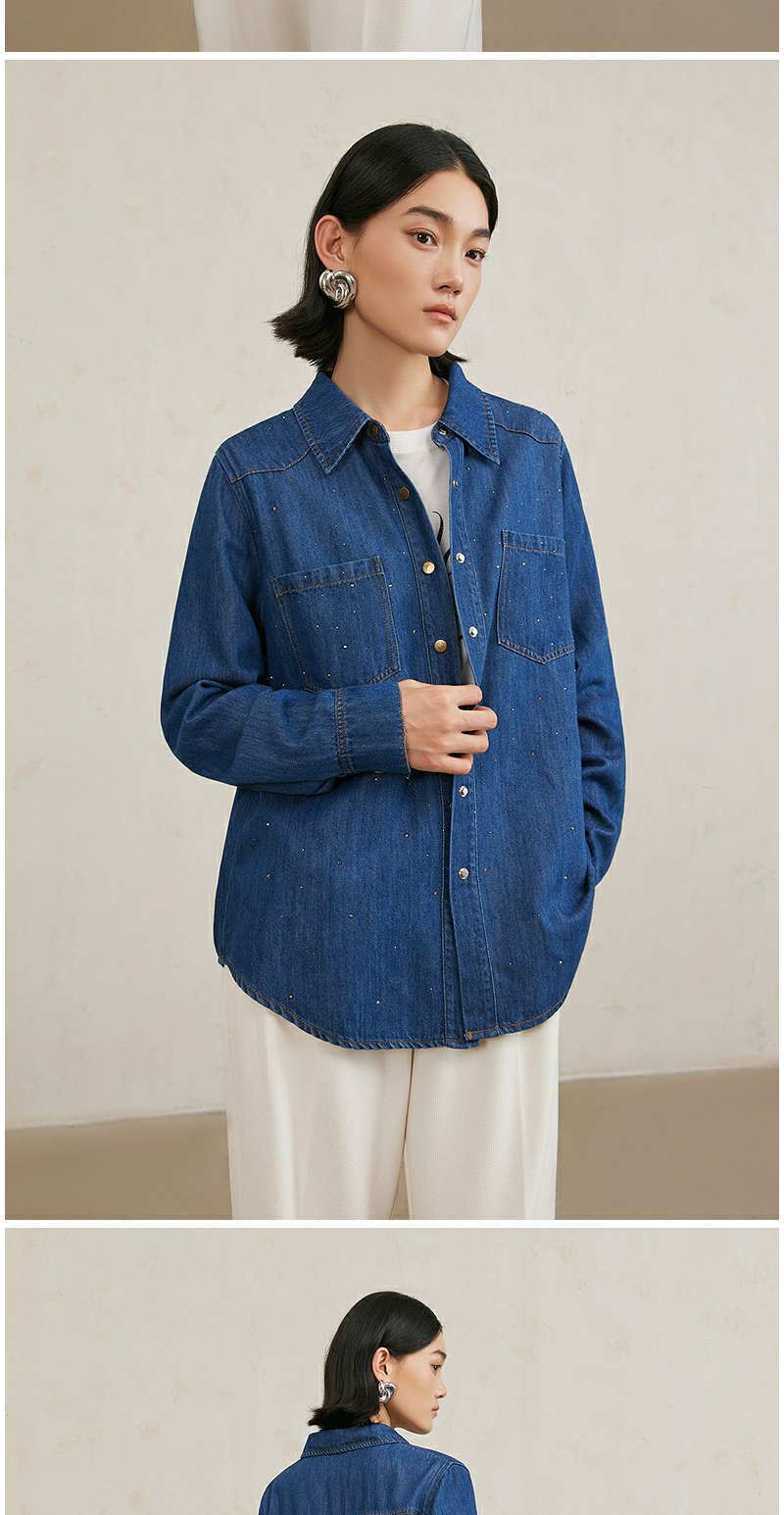 NEELLY纳俪商场同款冬季新款复古廓形衬衣女百搭显瘦牛仔衬衫上衣N25104B04514