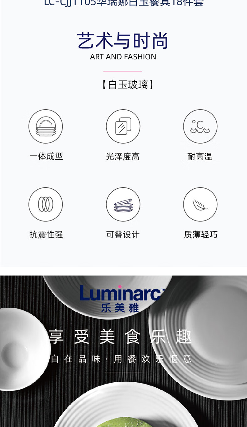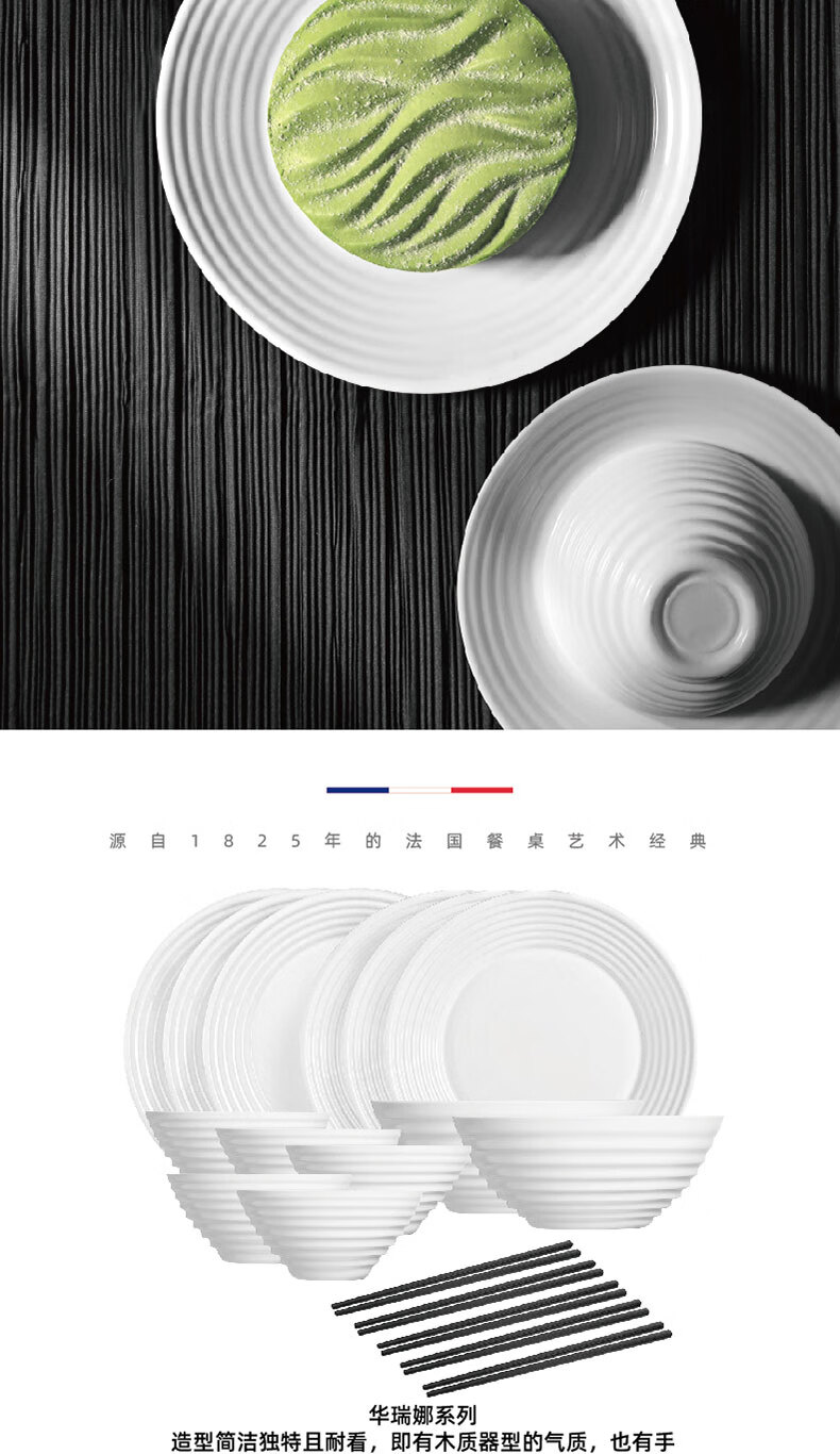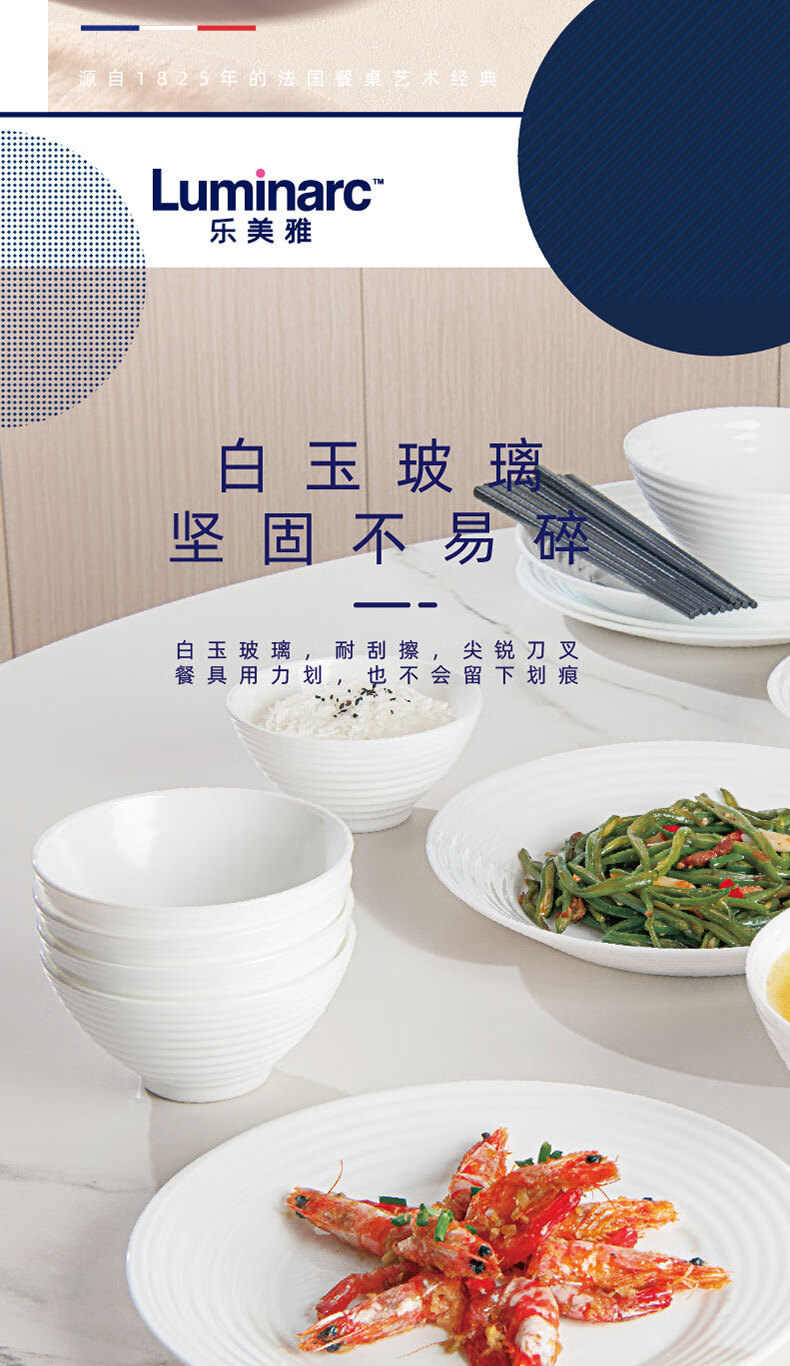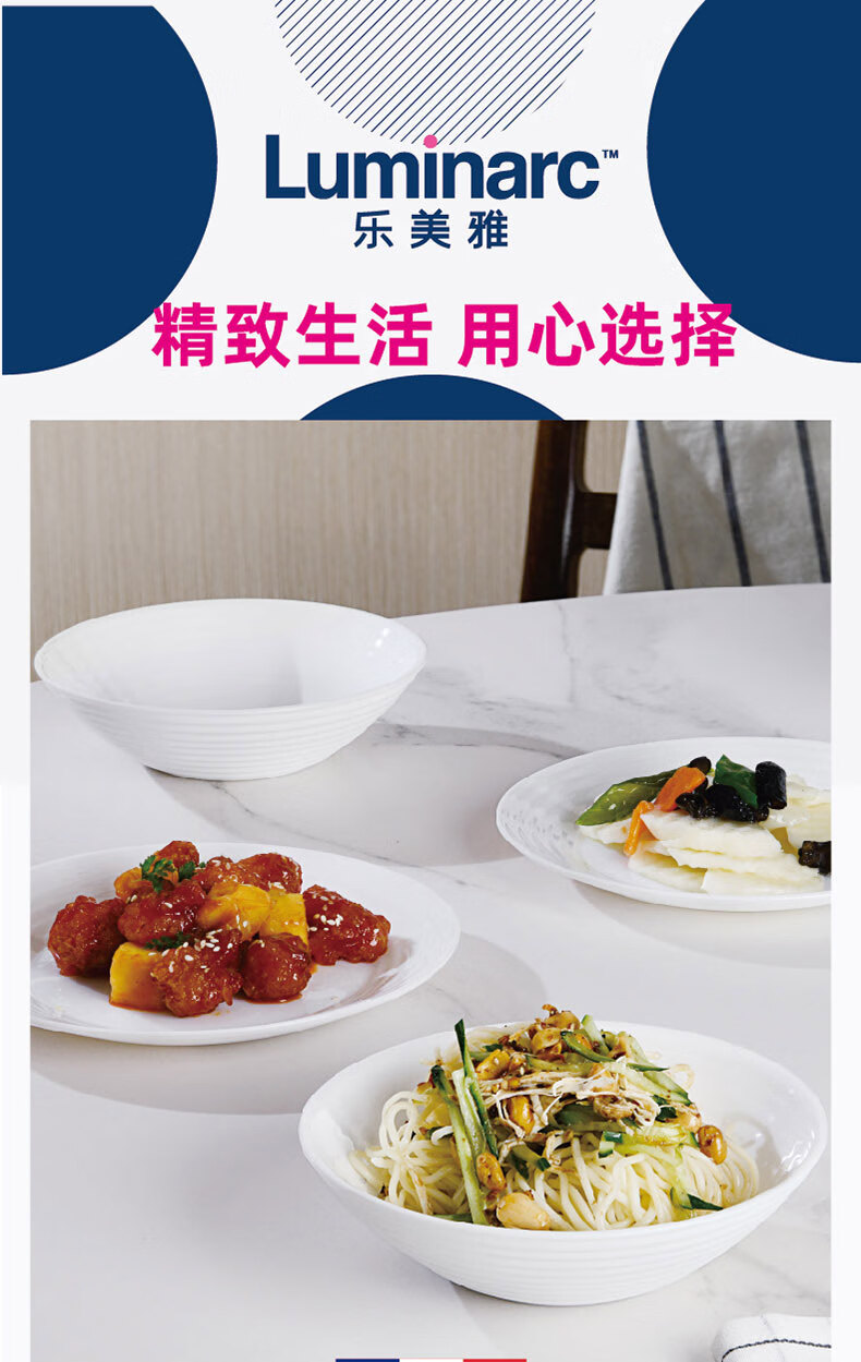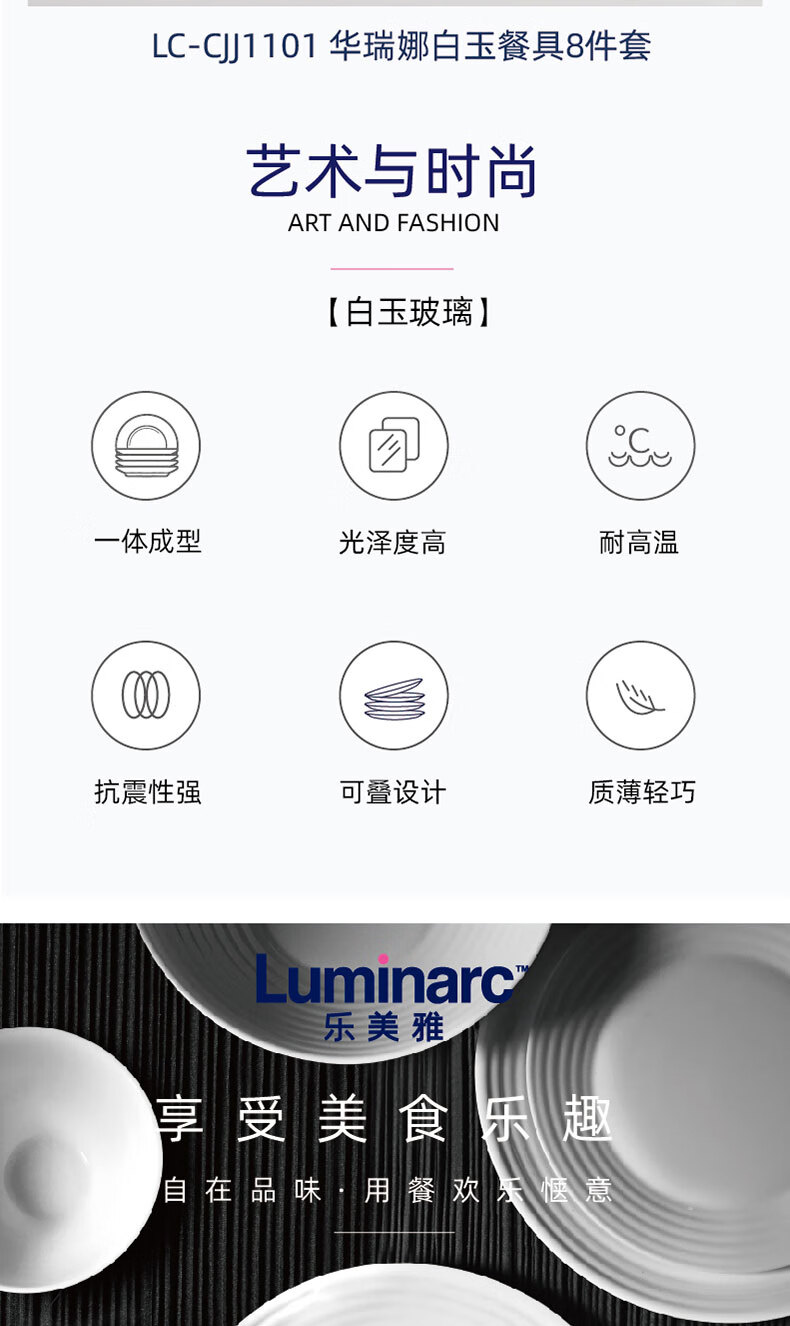 乐美雅(Luminarc)餐具华瑞娜套装家用无铅白玉玻璃耐高温饭面汤碗餐盘微波炉适用 LC-CJJ1101华瑞娜白玉餐具8件套