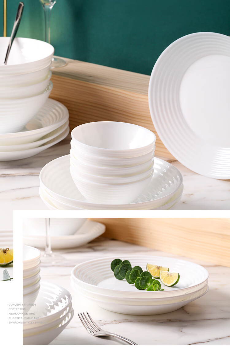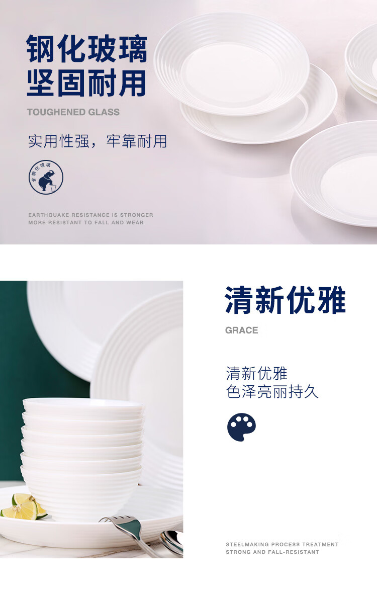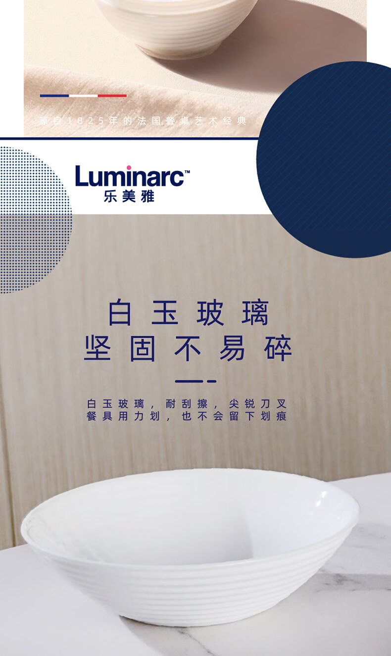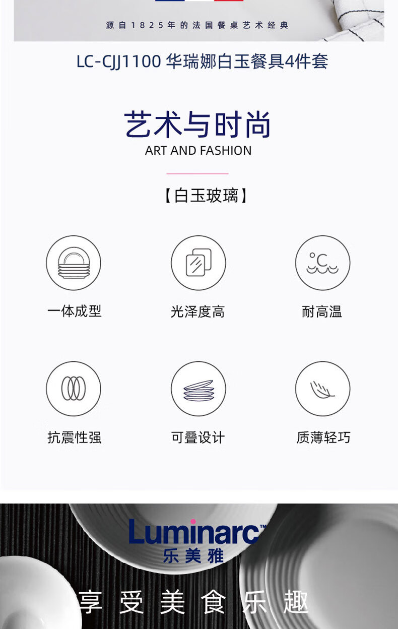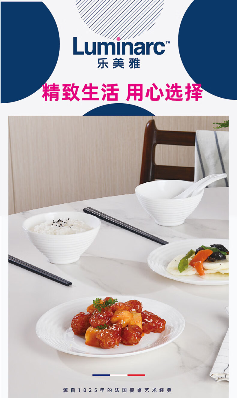 乐美雅(Luminarc)餐具华瑞娜套装家用无铅白玉玻璃耐高温饭面汤碗餐盘微波炉适用 LC-CJJ1101华瑞娜白玉餐具8件套