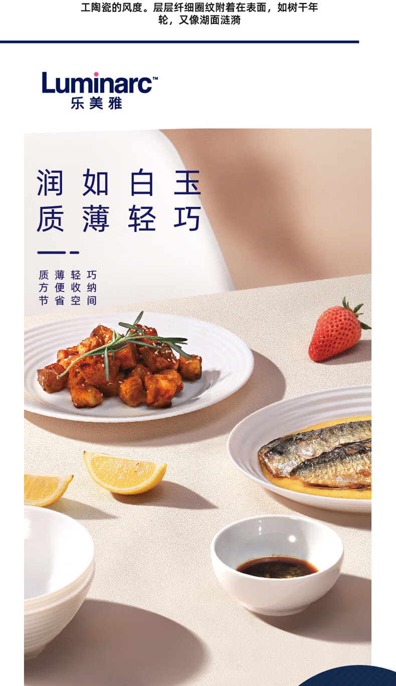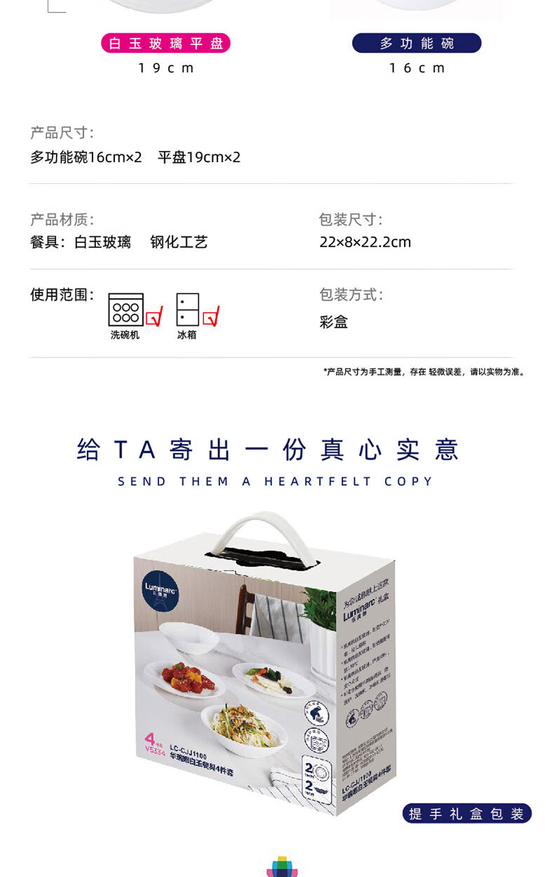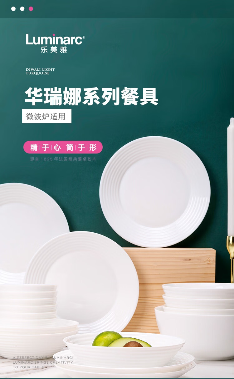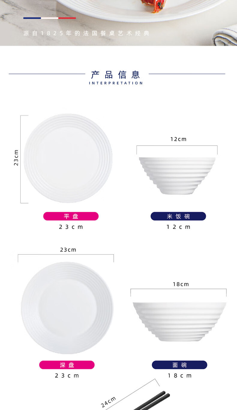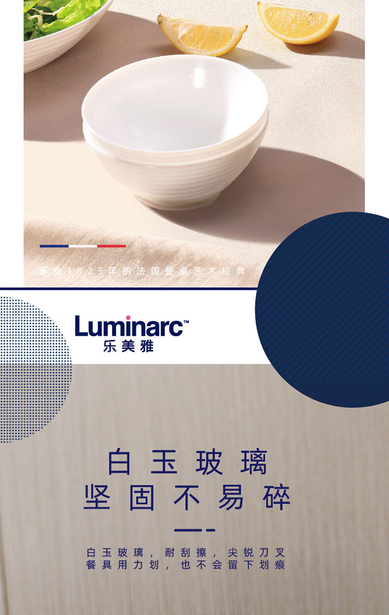 乐美雅(Luminarc)餐具华瑞娜套装家用无铅白玉玻璃耐高温饭面汤碗餐盘微波炉适用 LC-CJJ1101华瑞娜白玉餐具8件套