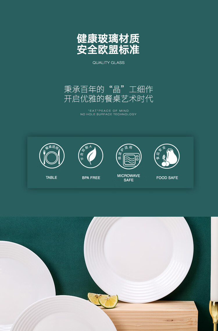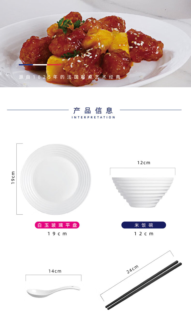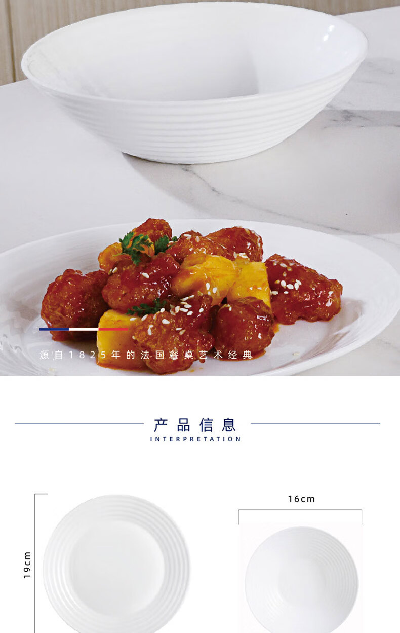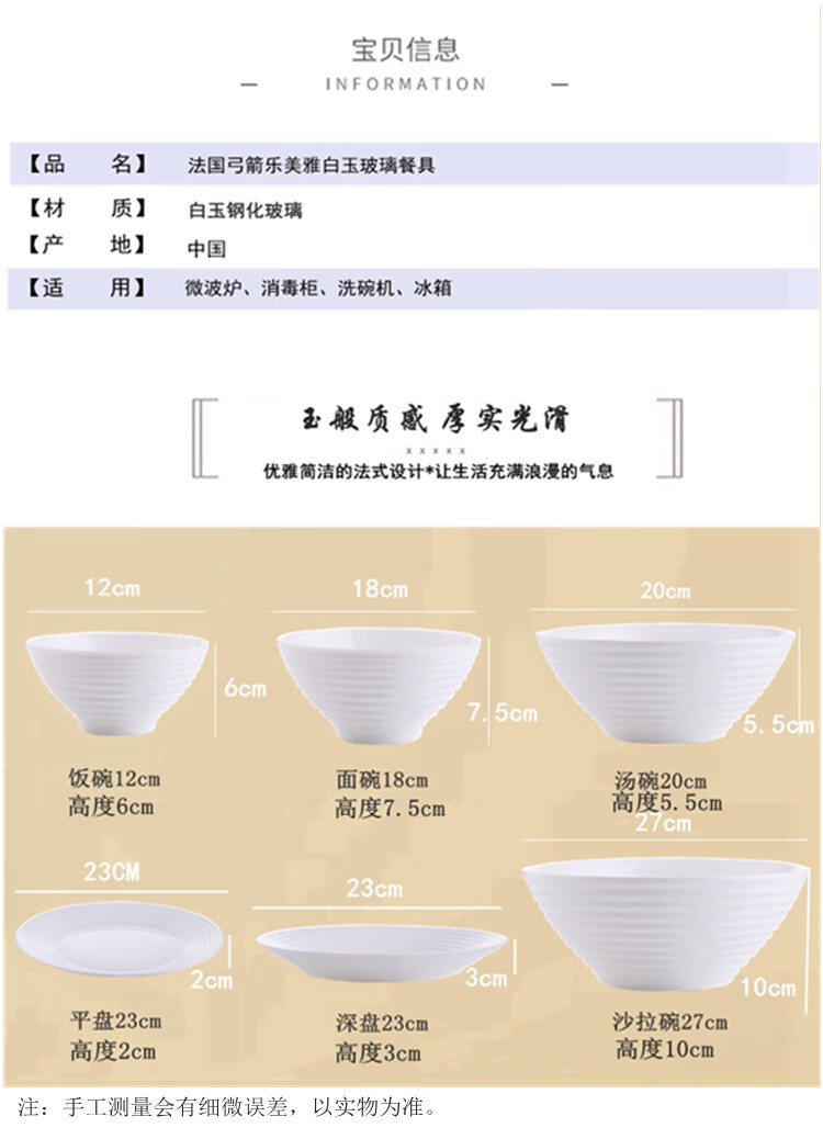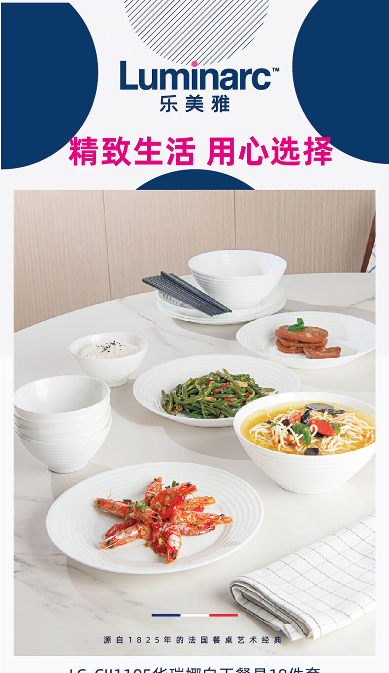 乐美雅(Luminarc)餐具华瑞娜套装家用无铅白玉玻璃耐高温饭面汤碗餐盘微波炉适用 LC-CJJ1101华瑞娜白玉餐具8件套