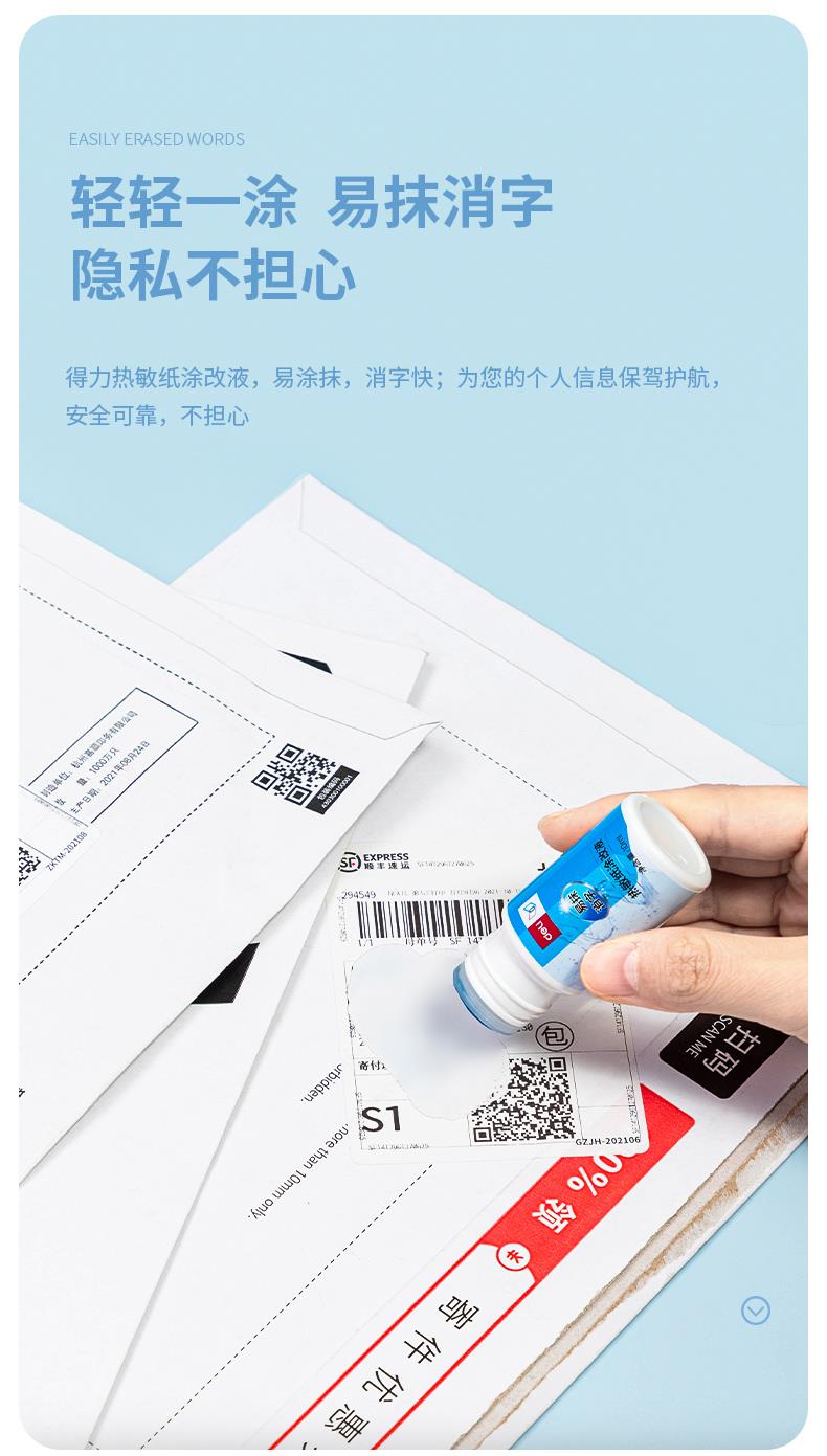 得力热敏纸涂改液快递涂码笔速干保护隐私消字灵无痕修正液批发