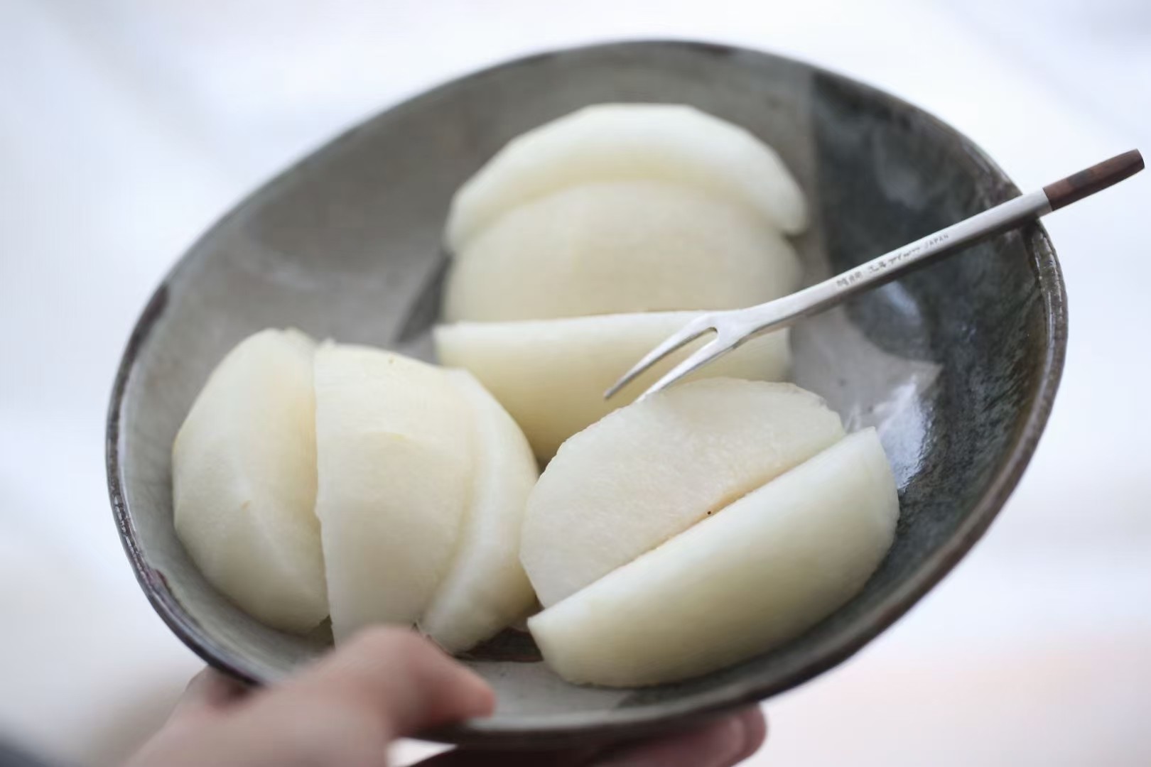 猫太说: 这一箱秋月梨,个个都有拳头般大小,皮却薄薄的,拿在手里冰凉光滑,沉甸甸的,光摸着就质感十足!果肉雪白如凝脂,晶莹剔透,咬一口,汁水就顺着手掌流下来,梨子入口细嫩无渣,连果皮都是软嫩的,没有一丝梨的颗粒感! 它有个外号——“加了冰糖的矿泉水”,可见它的甘甜多汁,真的甜!水润!连靠近核的地方都是甜的!口感爽脆,清润冰凉,肥厚的果肉在嘴中轻轻一抿就化成了一汪梨汁!实在是太解渴了!去皮吃,更是幼嫩! 大家都知道秋季干燥、缺水,还容易上火,秋月梨80%都是水分,实在是太应季的水果了!秋季多吃白色的食物特别养生,梨子就是,除了直接吃,打成梨汁、做成冰糖炖梨,或是和我们的银耳莲子一起煮,都超好吃的,会比丰水梨更优秀! 猫太实拍: |