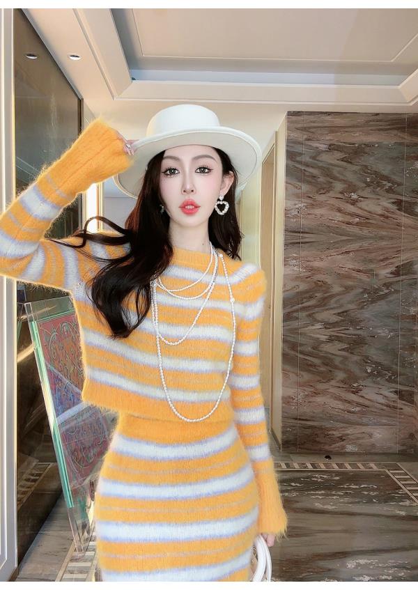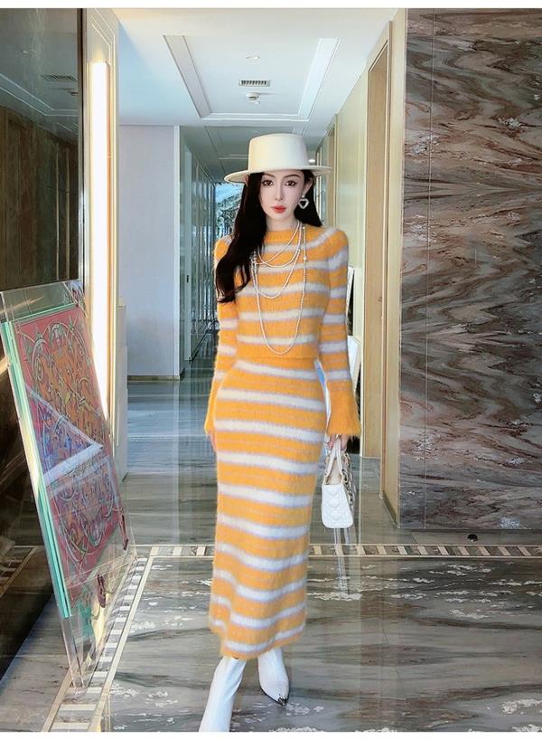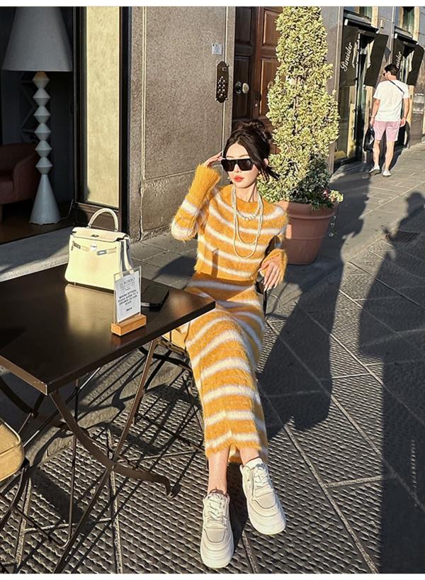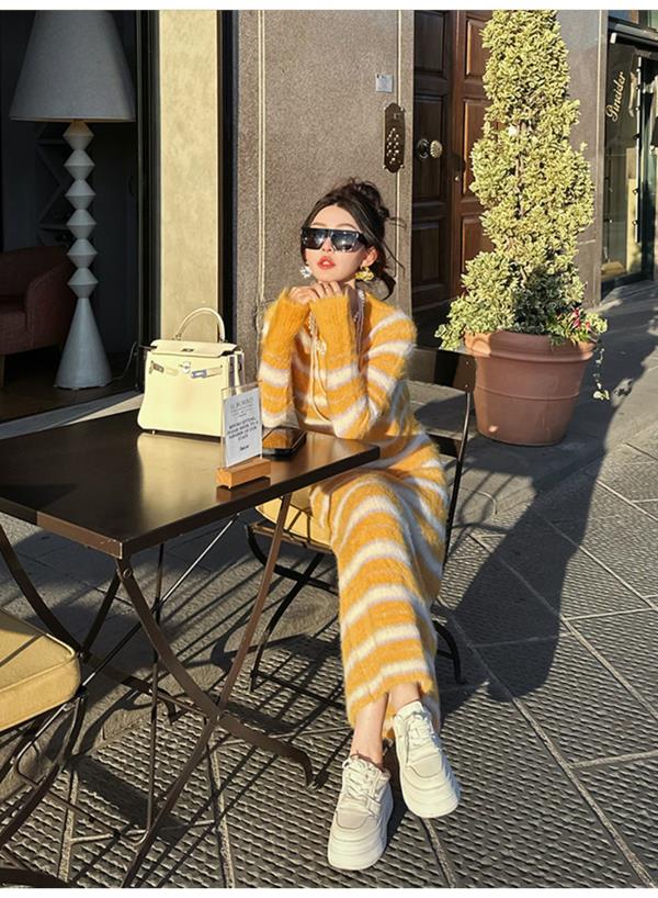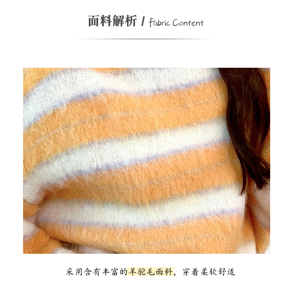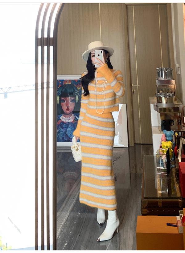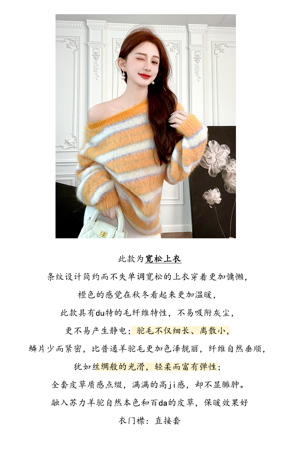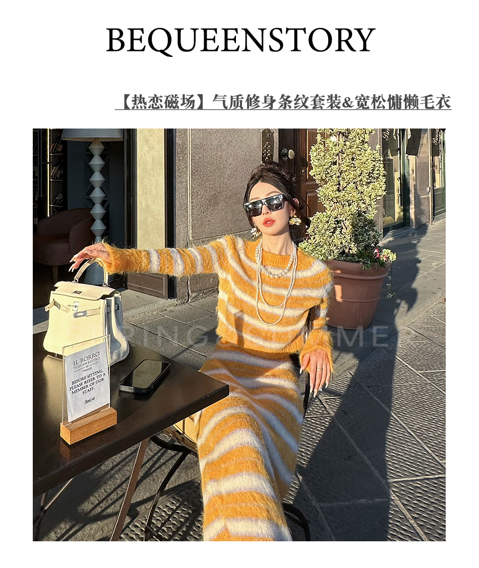 BeQueenStory【热恋磁场】羊驼毛气质修身条纹套装&宽松慵懒毛衣