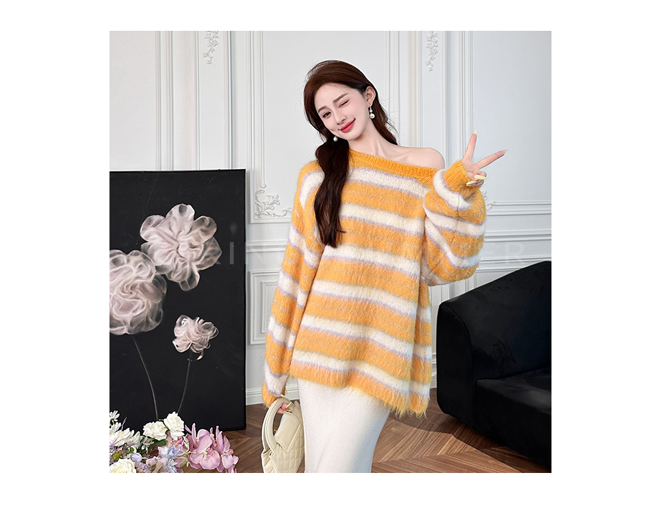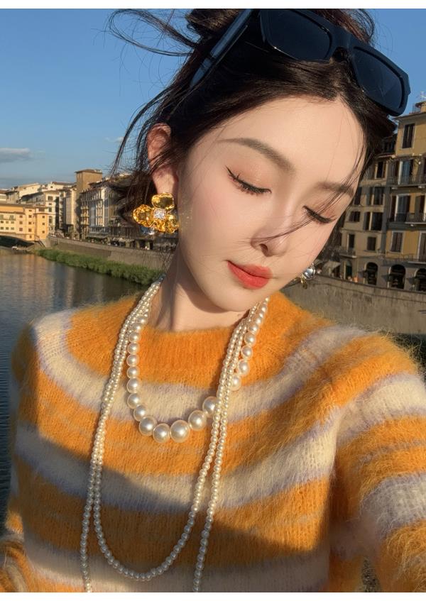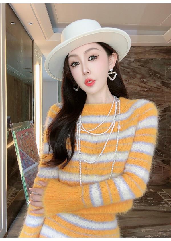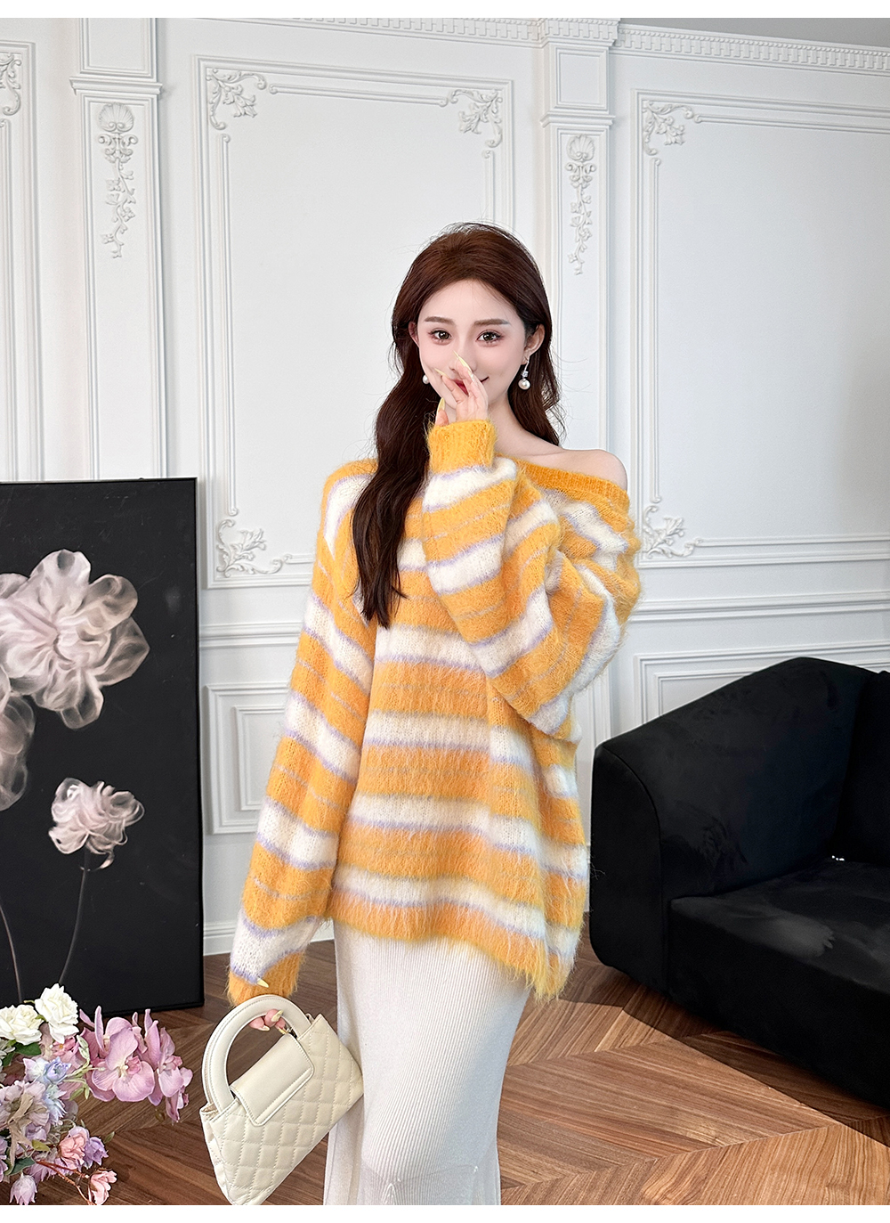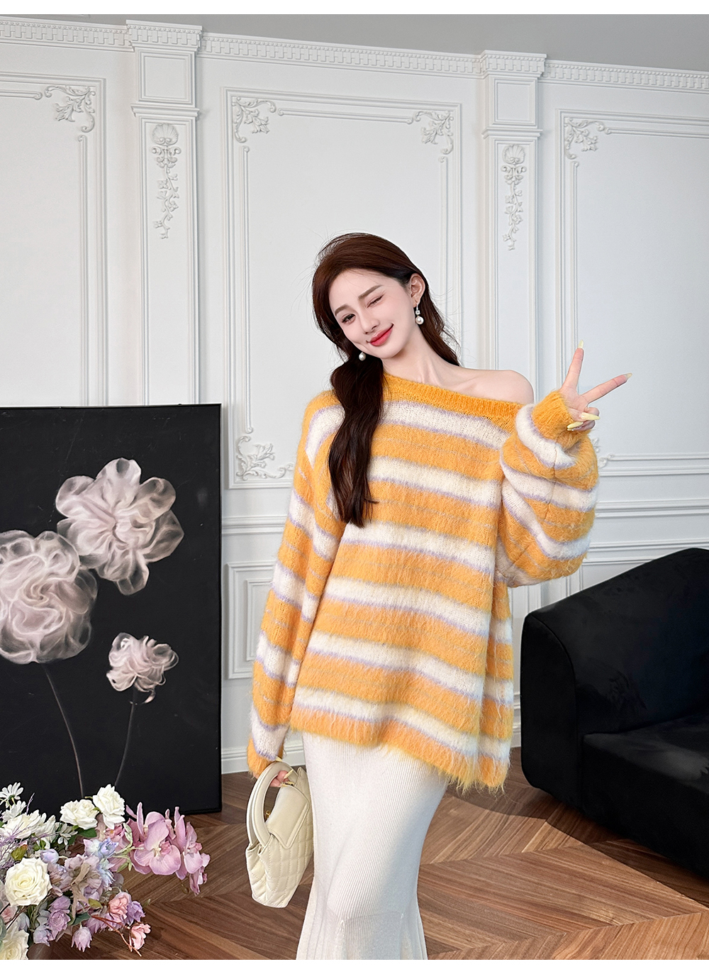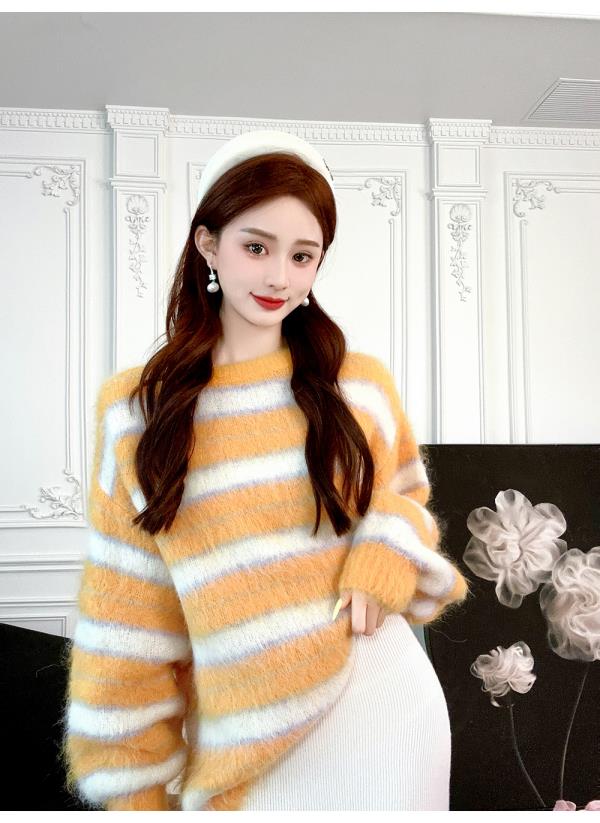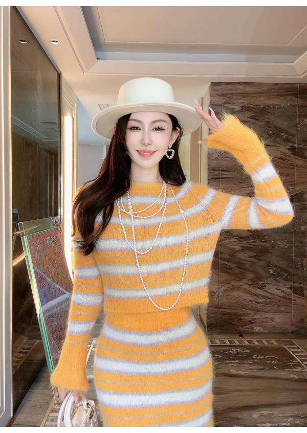BeQueenStory【热恋磁场】羊驼毛气质修身条纹套装&宽松慵懒毛衣