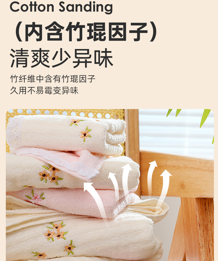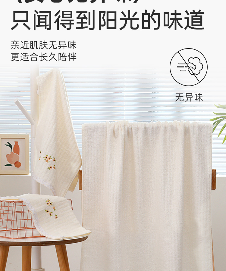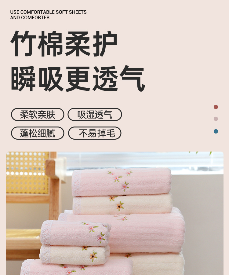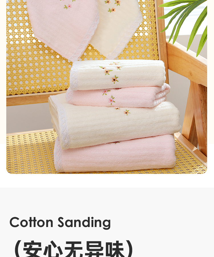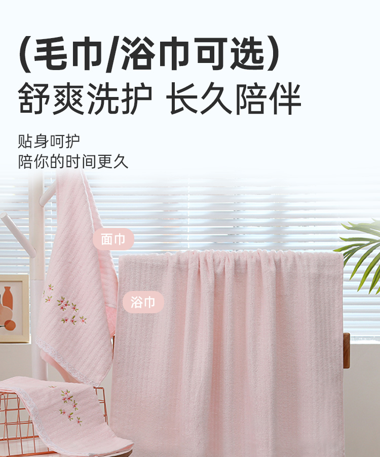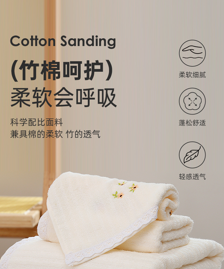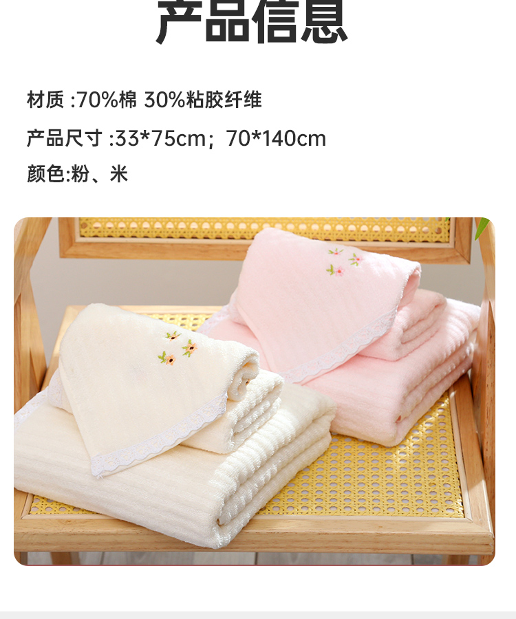 竹棉健康毛浴巾(花边绣蕊)