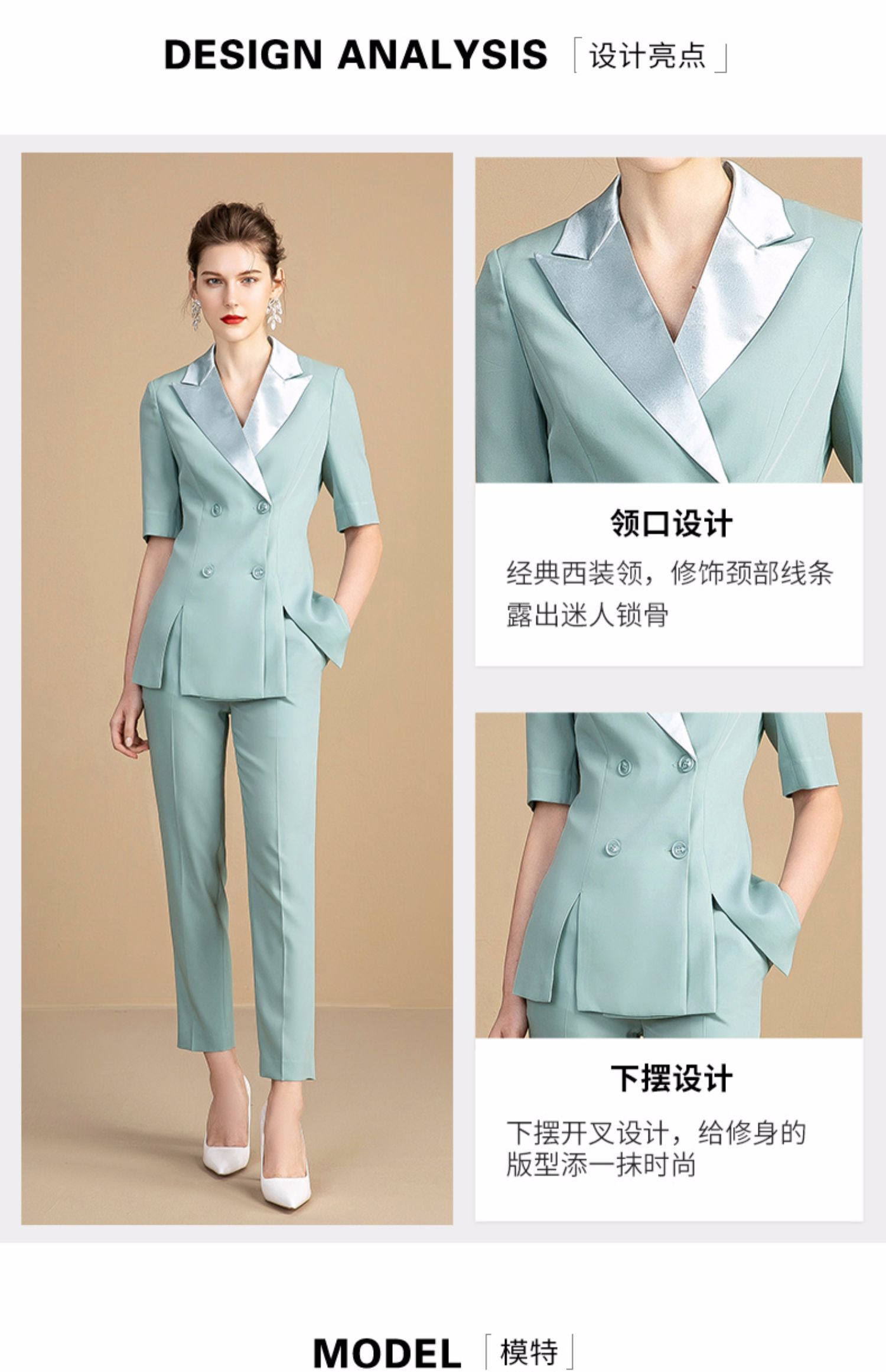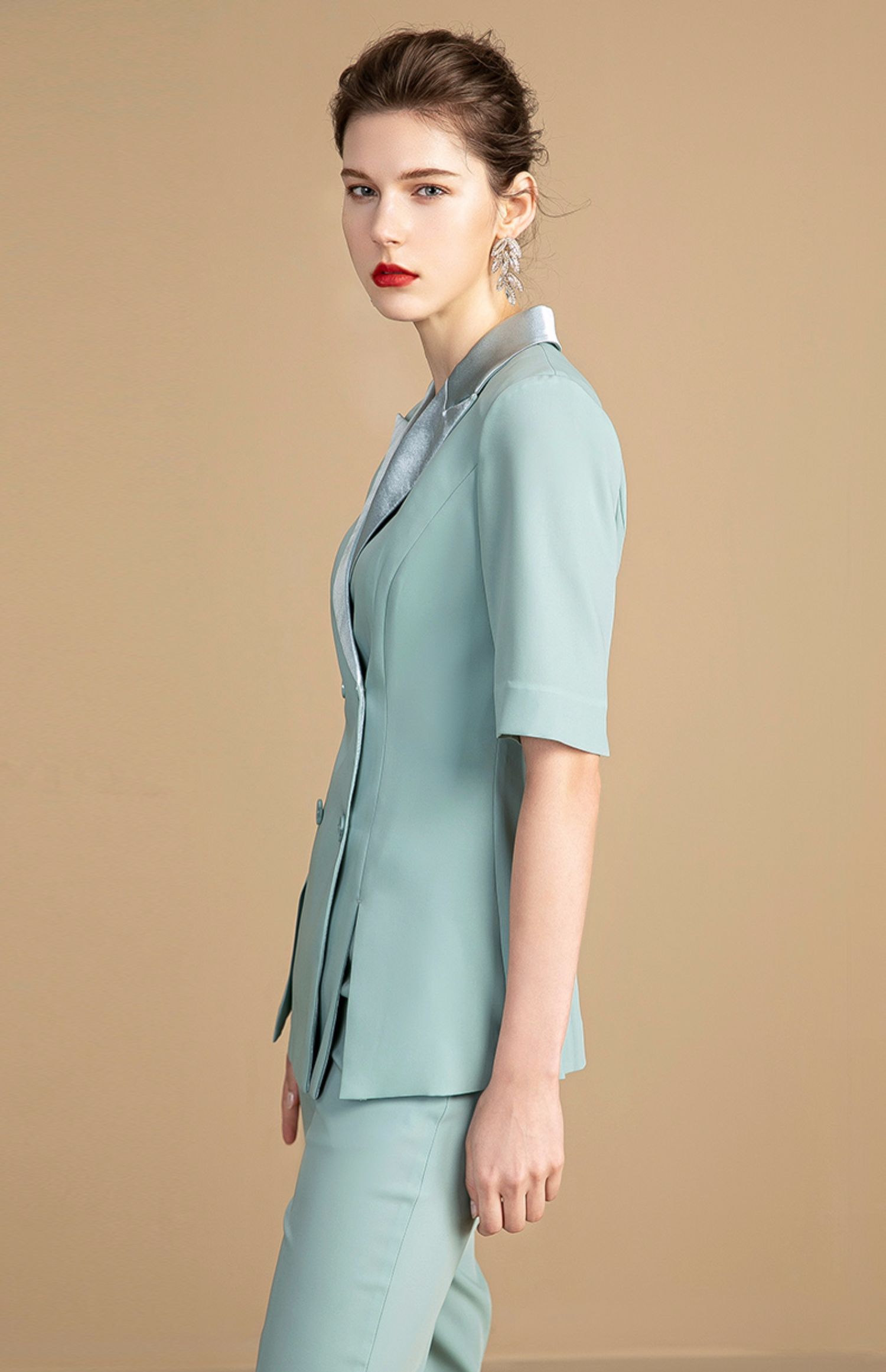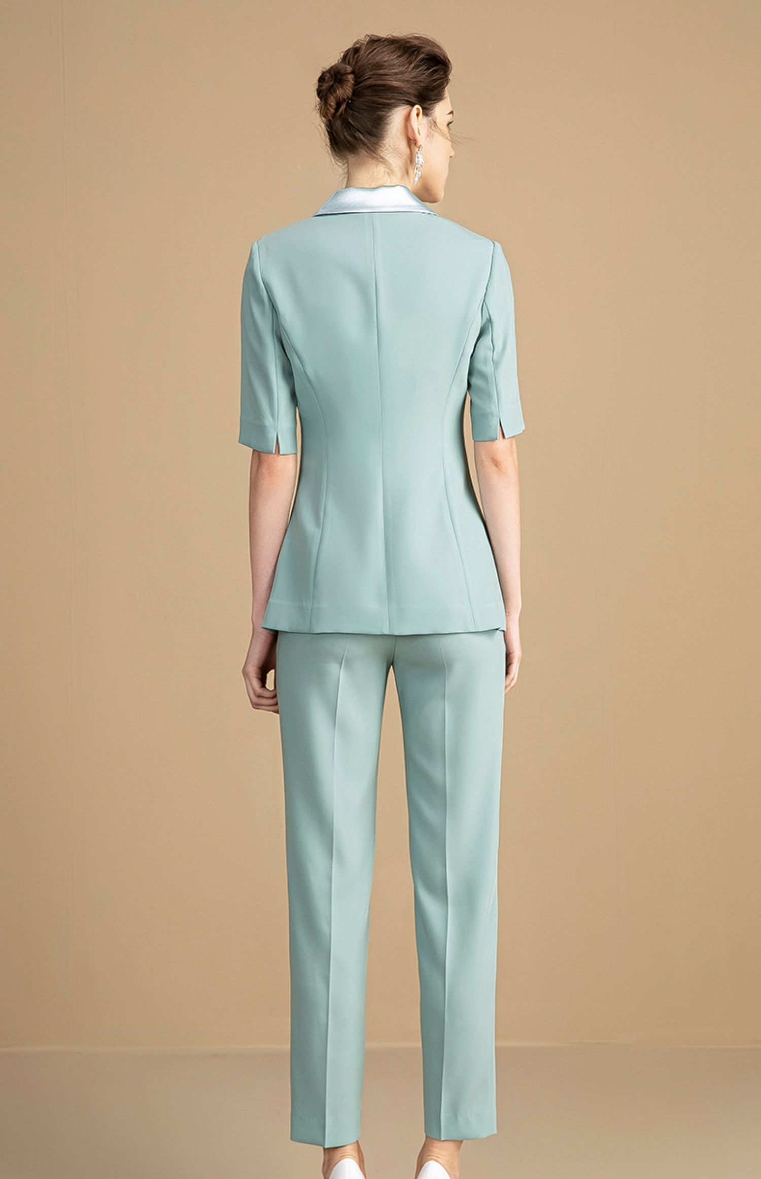 IWY/绿色短袖西装套装女薄款气质休闲商务名媛正装职业装212094C1+212094P1