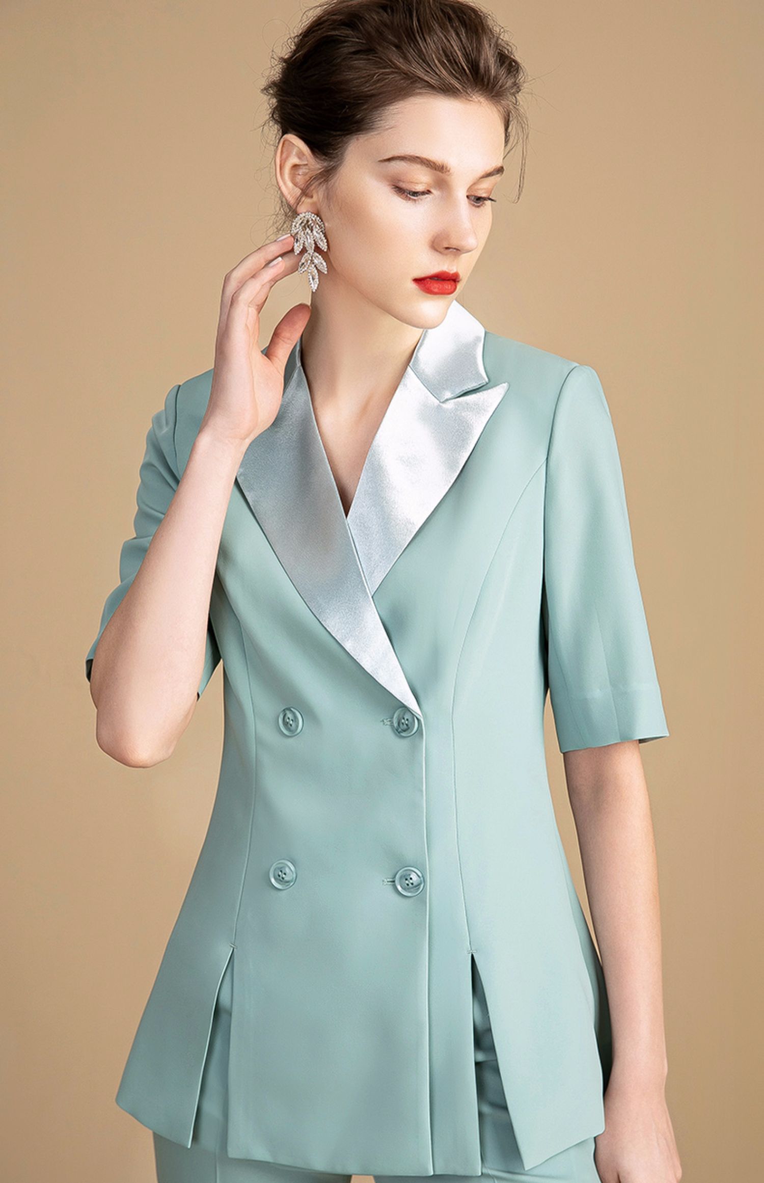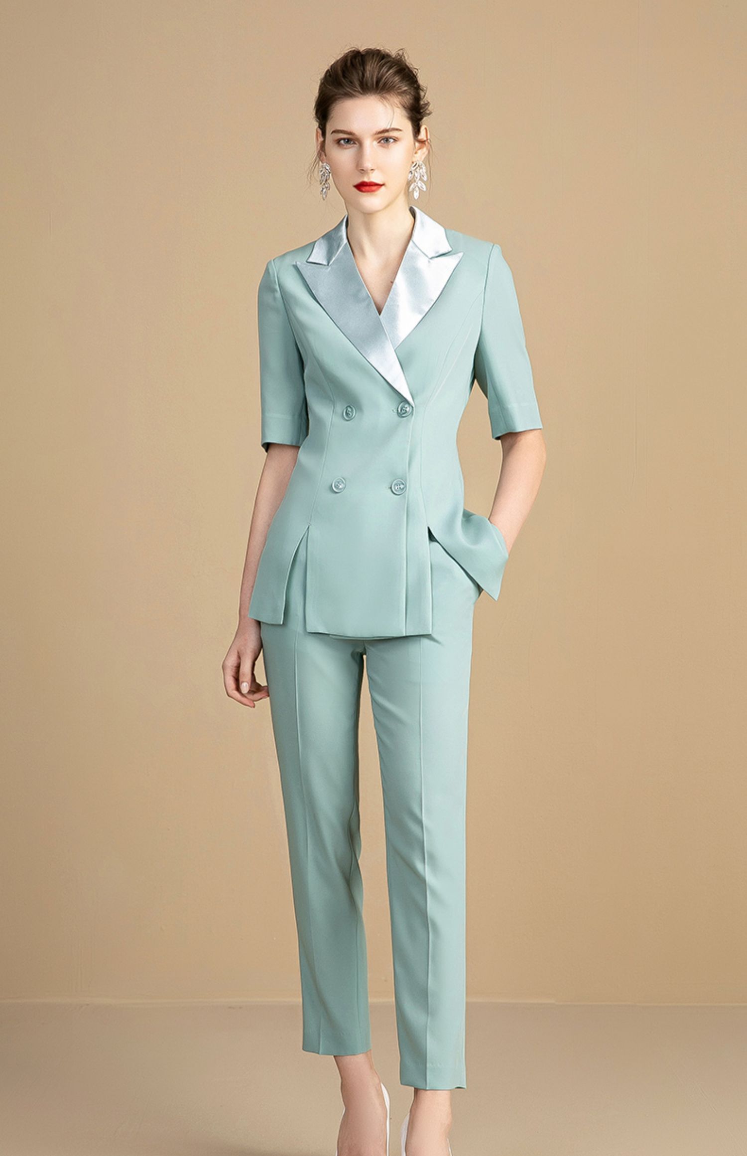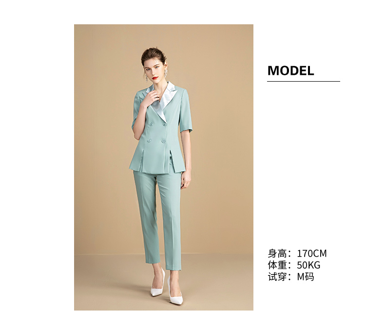 IWY/绿色短袖西装套装女薄款气质休闲商务名媛正装职业装212094C1+212094P1