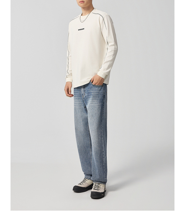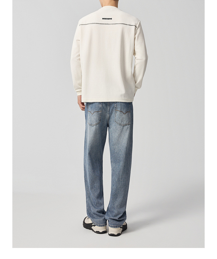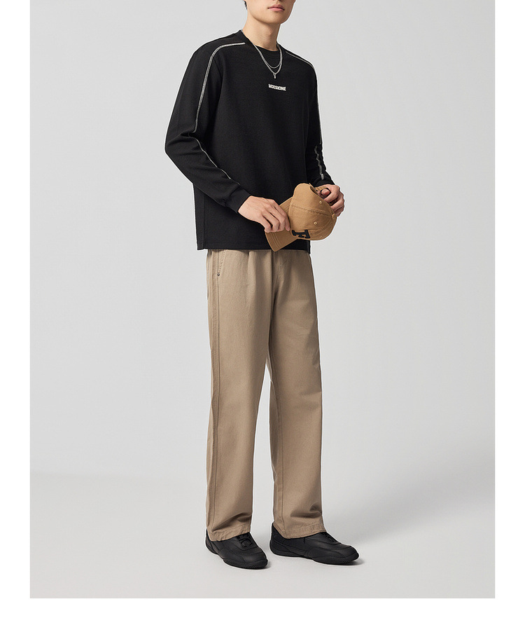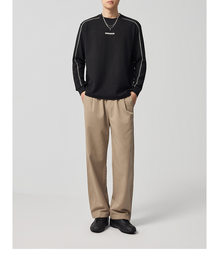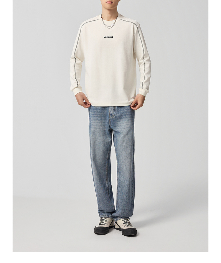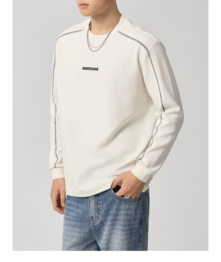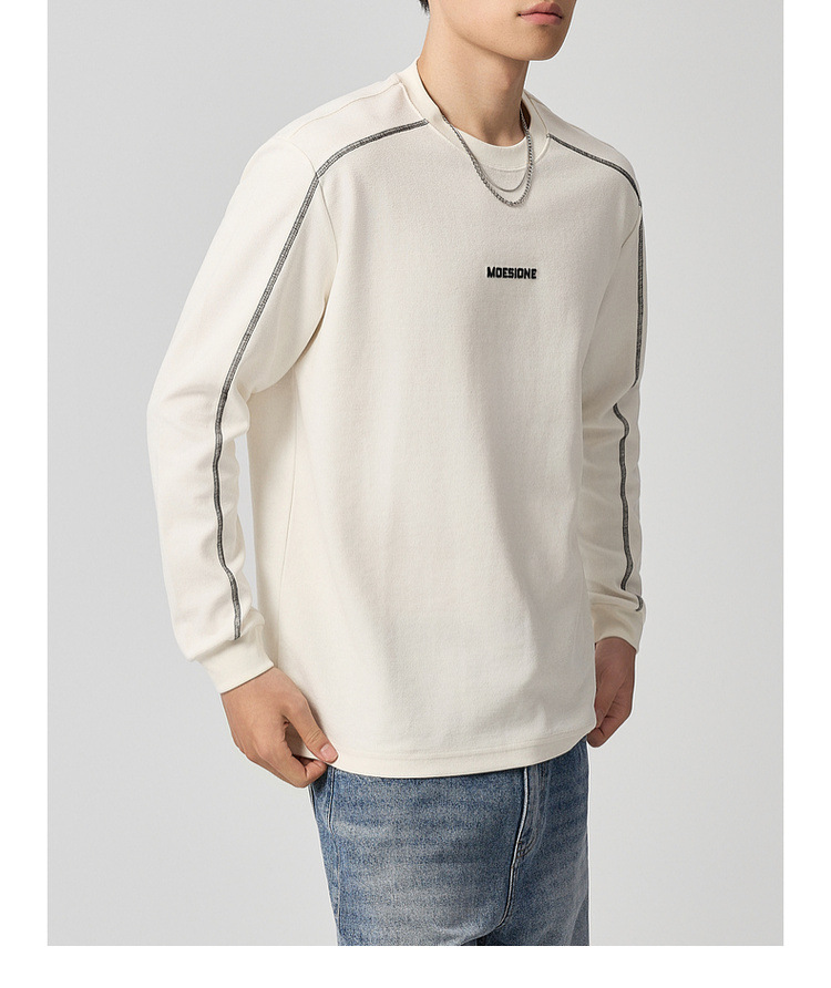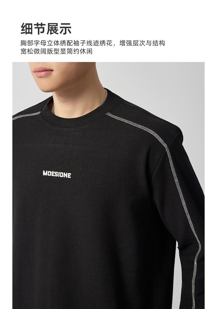 墨麦客男装线迹刺绣圆领卫衣男2025秋新款简约宽松男士卫衣55759.