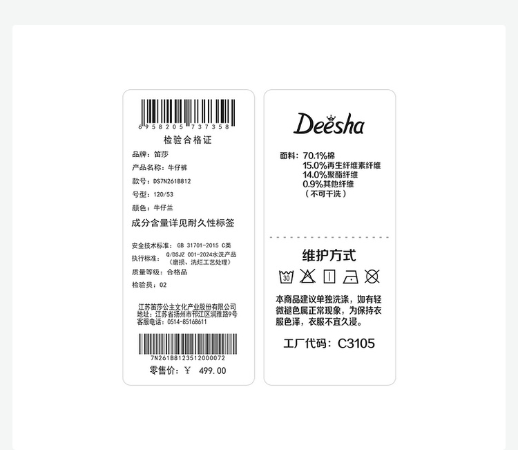 笛莎Deesha 2026年夏季新款小童女童直筒裤裤子