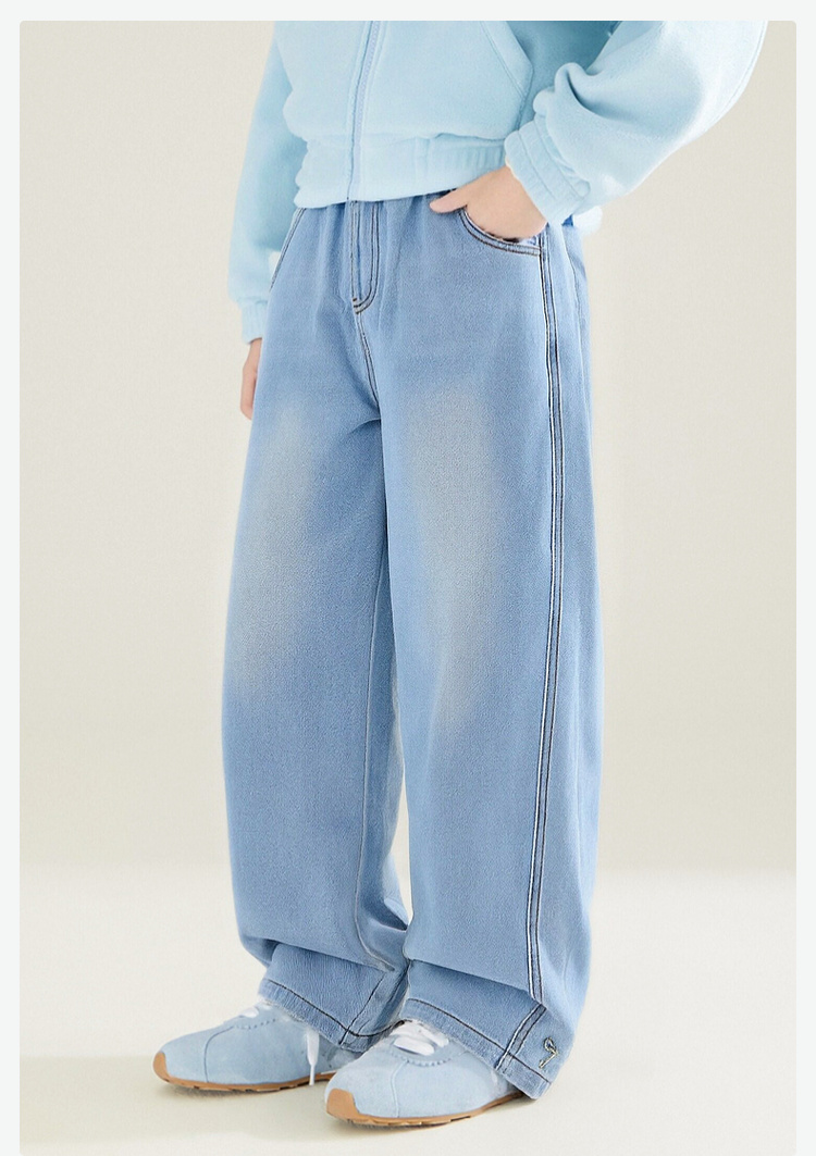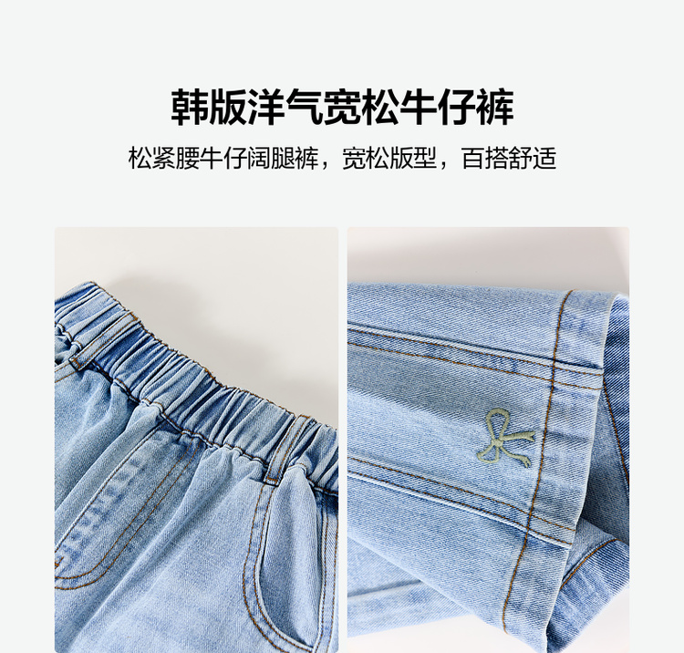 笛莎Deesha 童装女童裤子2026春新款韩版洋气宽松牛仔裤