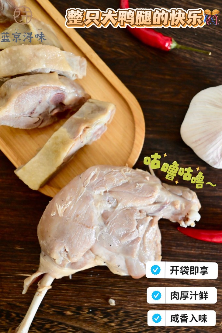【金陵盐水鸭腿】非遗美食,千年古法秘制,老卤熬制,入口有嚼劲,肥而不腻、香鲜味美,十二时辰的匠心淬炼“炒盐腌、清卤浸、文火焖”三艺九序,缺一不可,直接切片装盘,简单美味哦