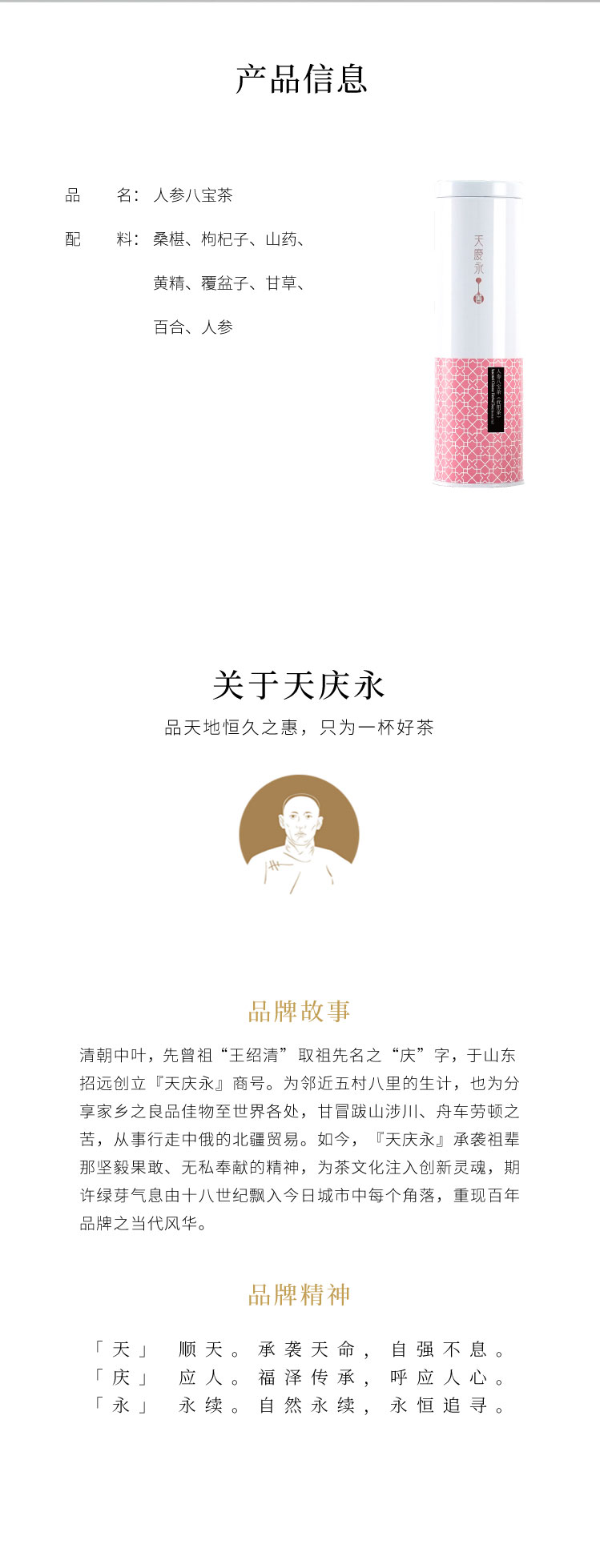 天庆永养生茶人参八宝茶黄精枸杞桑葚茶泡水8g/包*8包