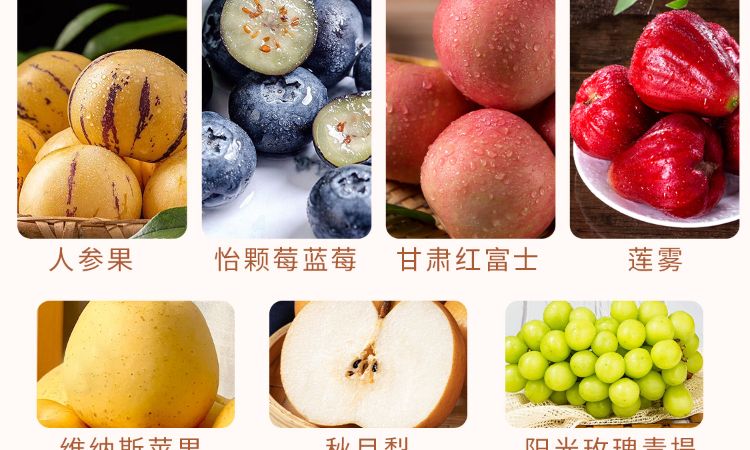 (内含:牛油果2个、葡萄柚1个、杨桃1个、阳光玫瑰青提880g、莲雾2个、人参果2个、怡颗莓蓝莓2盒、秋月梨1个、甘肃红富士2个、维纳斯苹果1个)