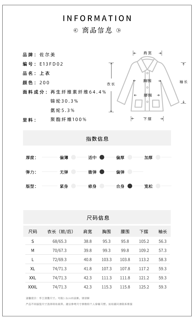 佐尔美装春秋季女装纯色外套短款简约休闲小西装上衣E61SO30