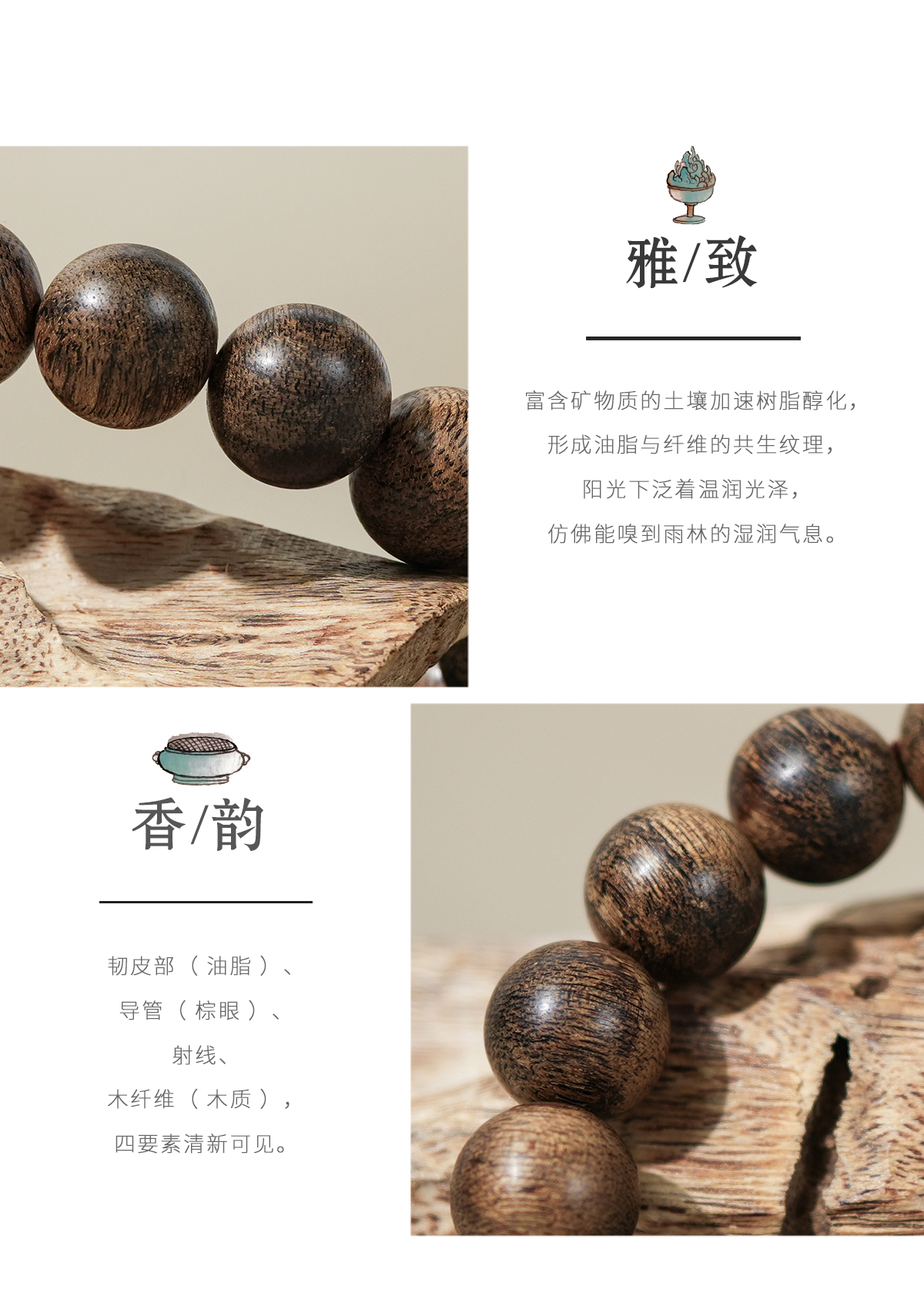 【中国沉香文化博物馆】严选沉香木质手串绿奇楠随行设计单圈搭配女