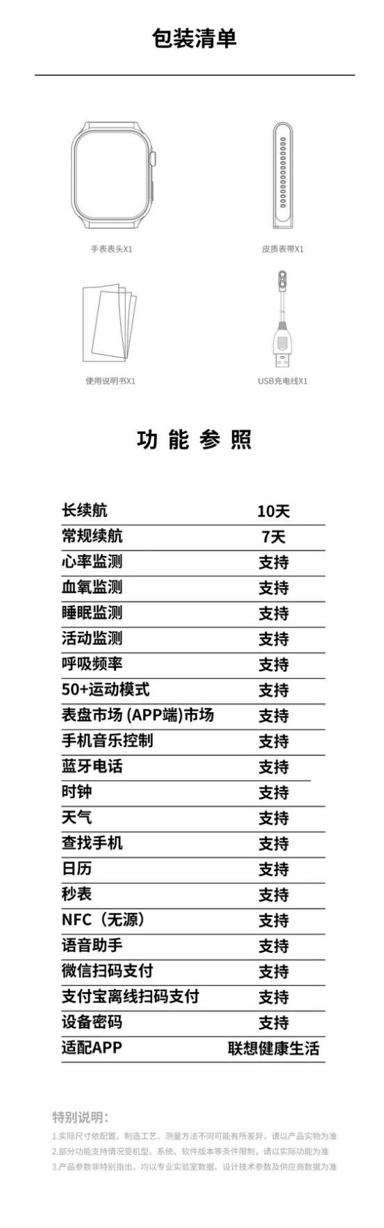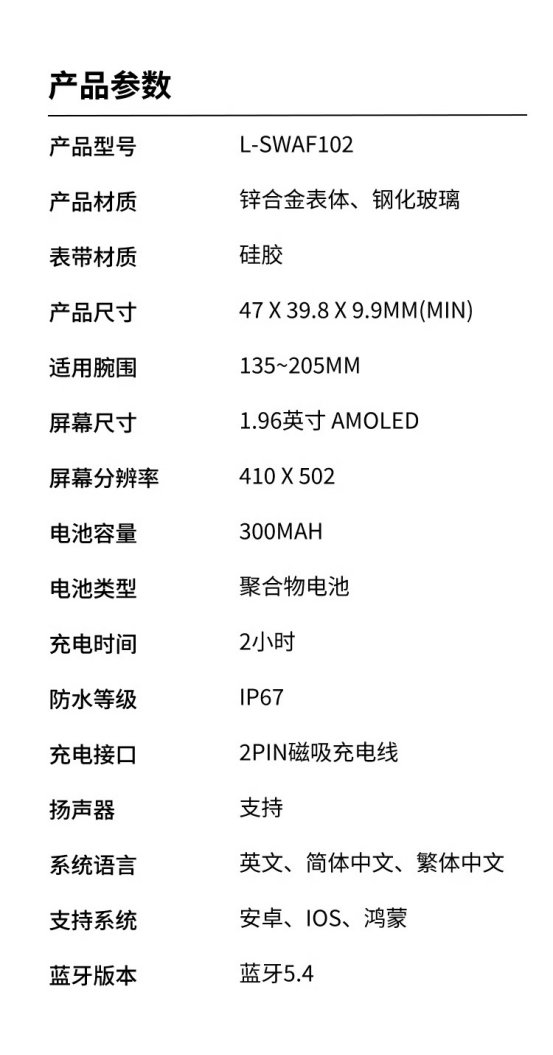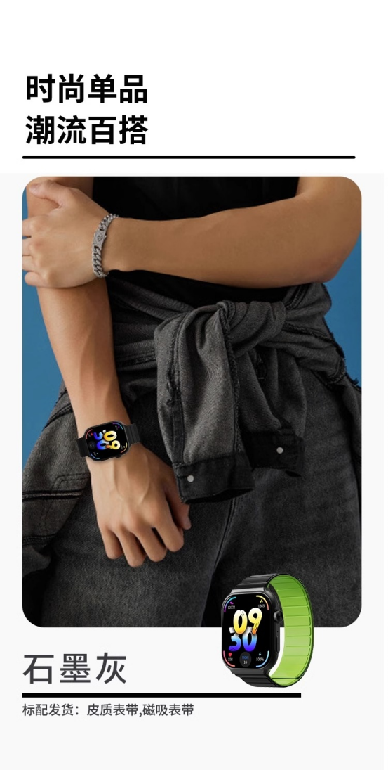 【产品清单】手表表头X1、硅胶表带X1、磁吸表带X1、使用说明书X1、USB充电线X1