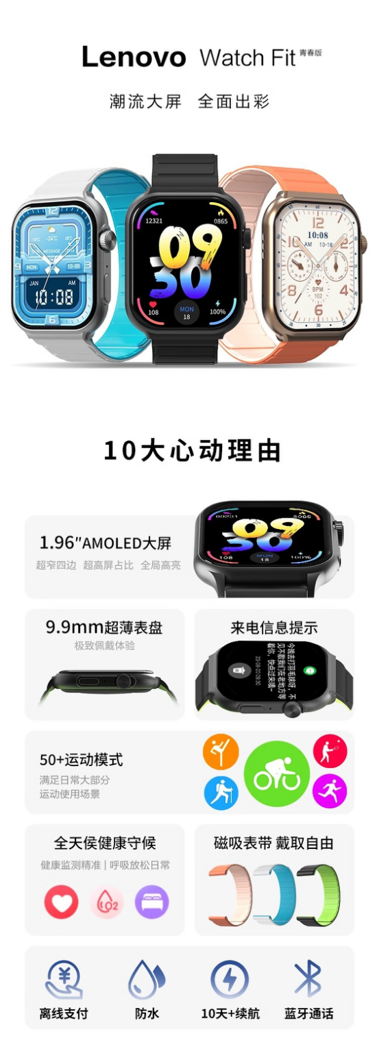 联想Lenovo Watch Fit 智能手表L-SWAF102