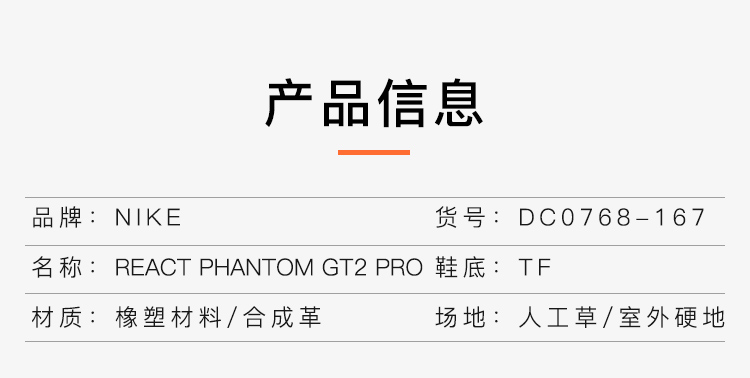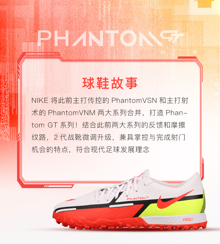 NIKE/耐克 REACT PHANTOM GT2 PRO TF PHANTOM GT2 次高端TF 碎丁足球鞋DC0768167