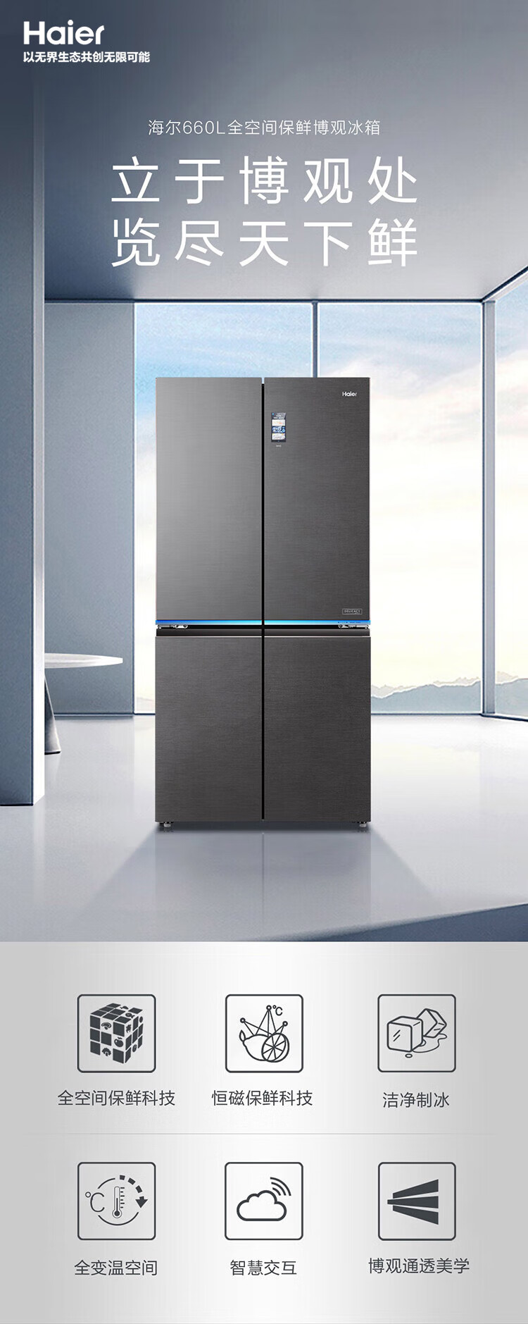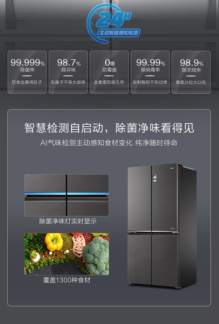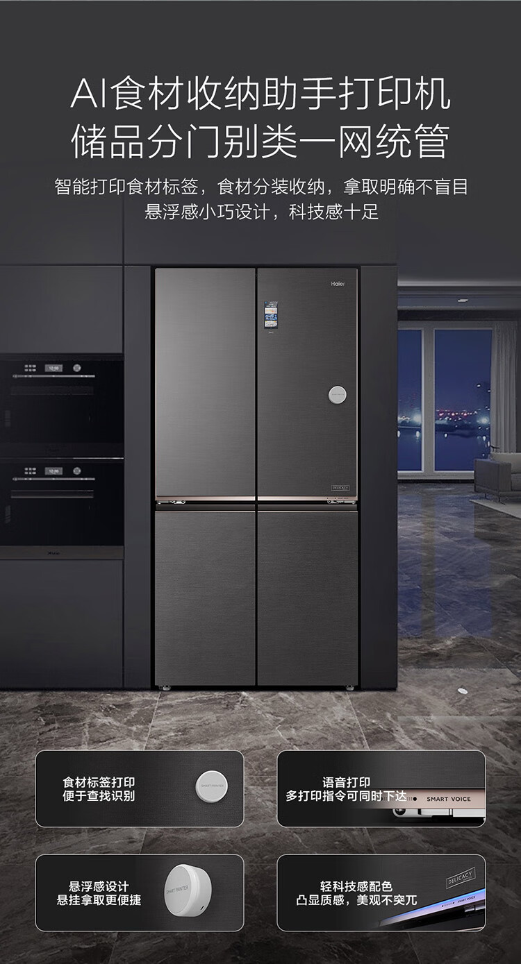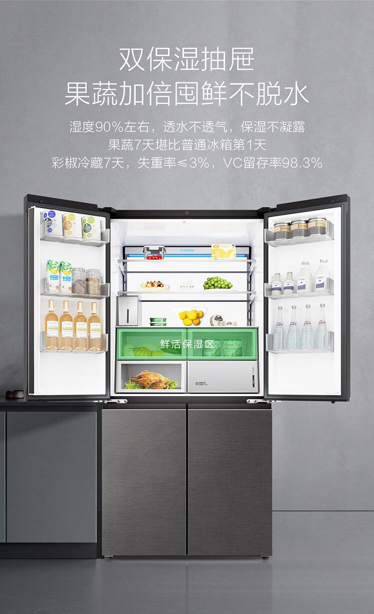 海尔冰箱 660升十字对开门全空间保鲜科技风冷无霜一级变频家用大容量电冰箱 T型四门 全自动制冰 BCD-660WGHTD2GSTU1