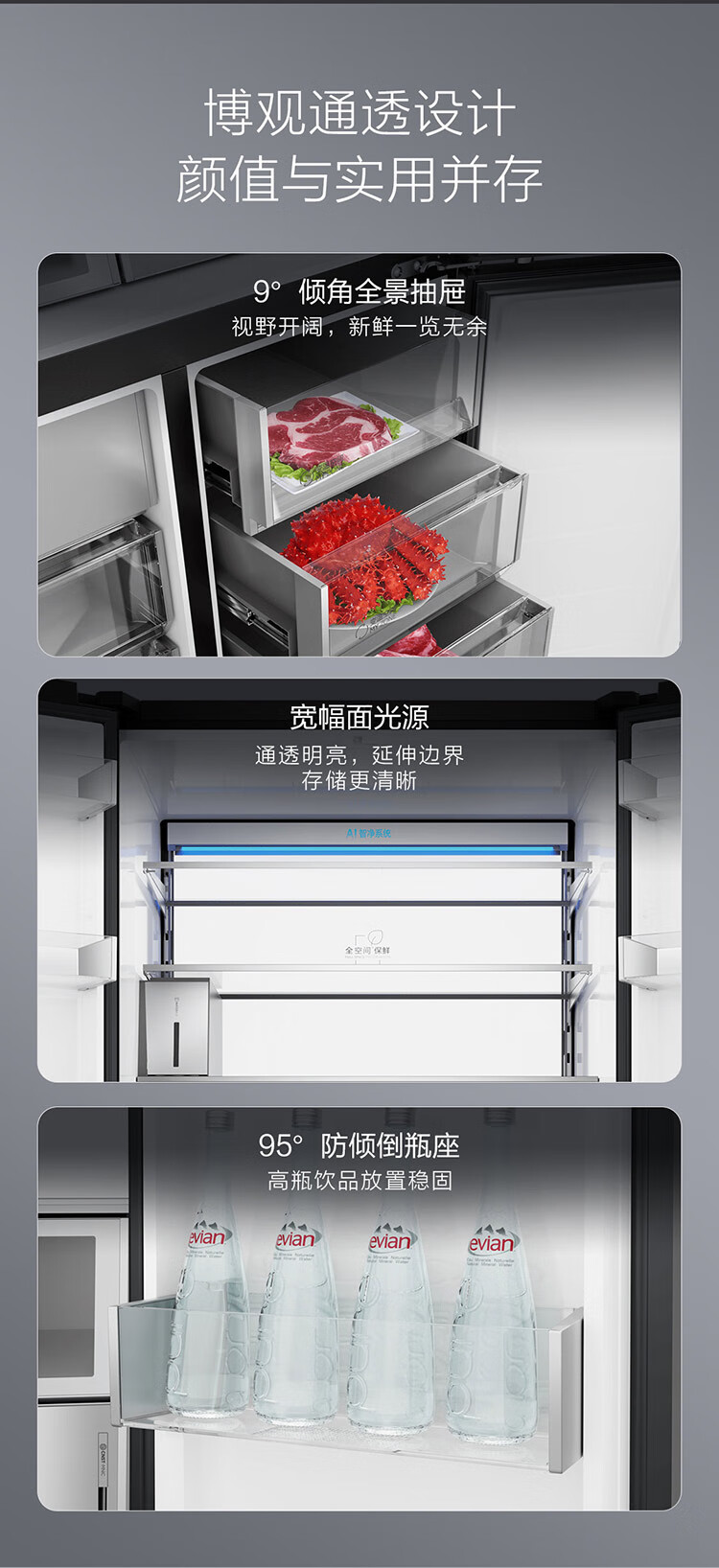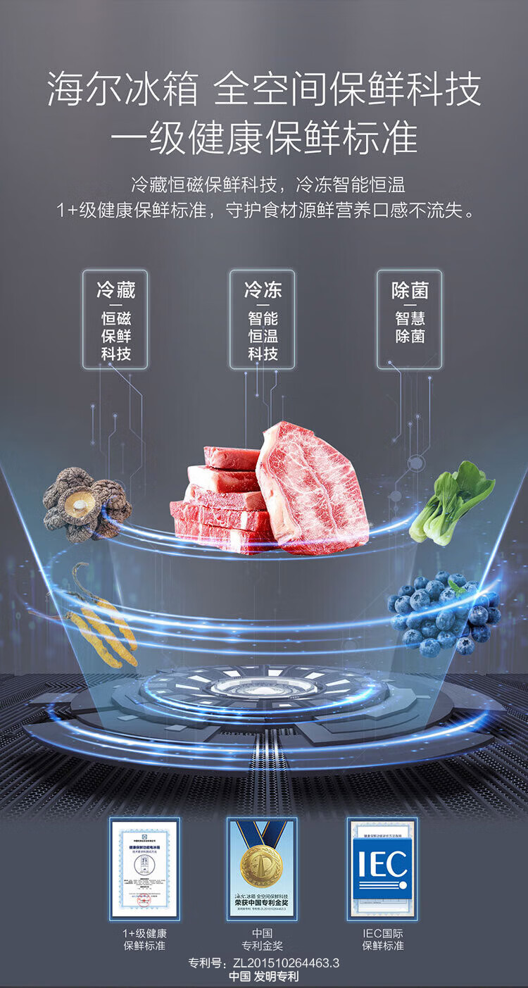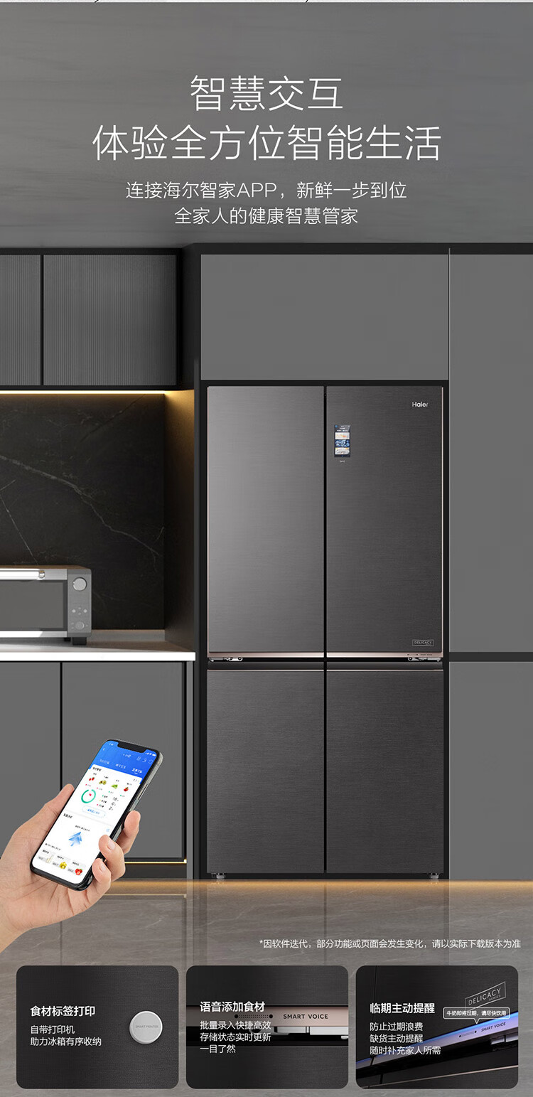 海尔冰箱 660升十字对开门全空间保鲜科技风冷无霜一级变频家用大容量电冰箱 T型四门 全自动制冰 BCD-660WGHTD2GSTU1