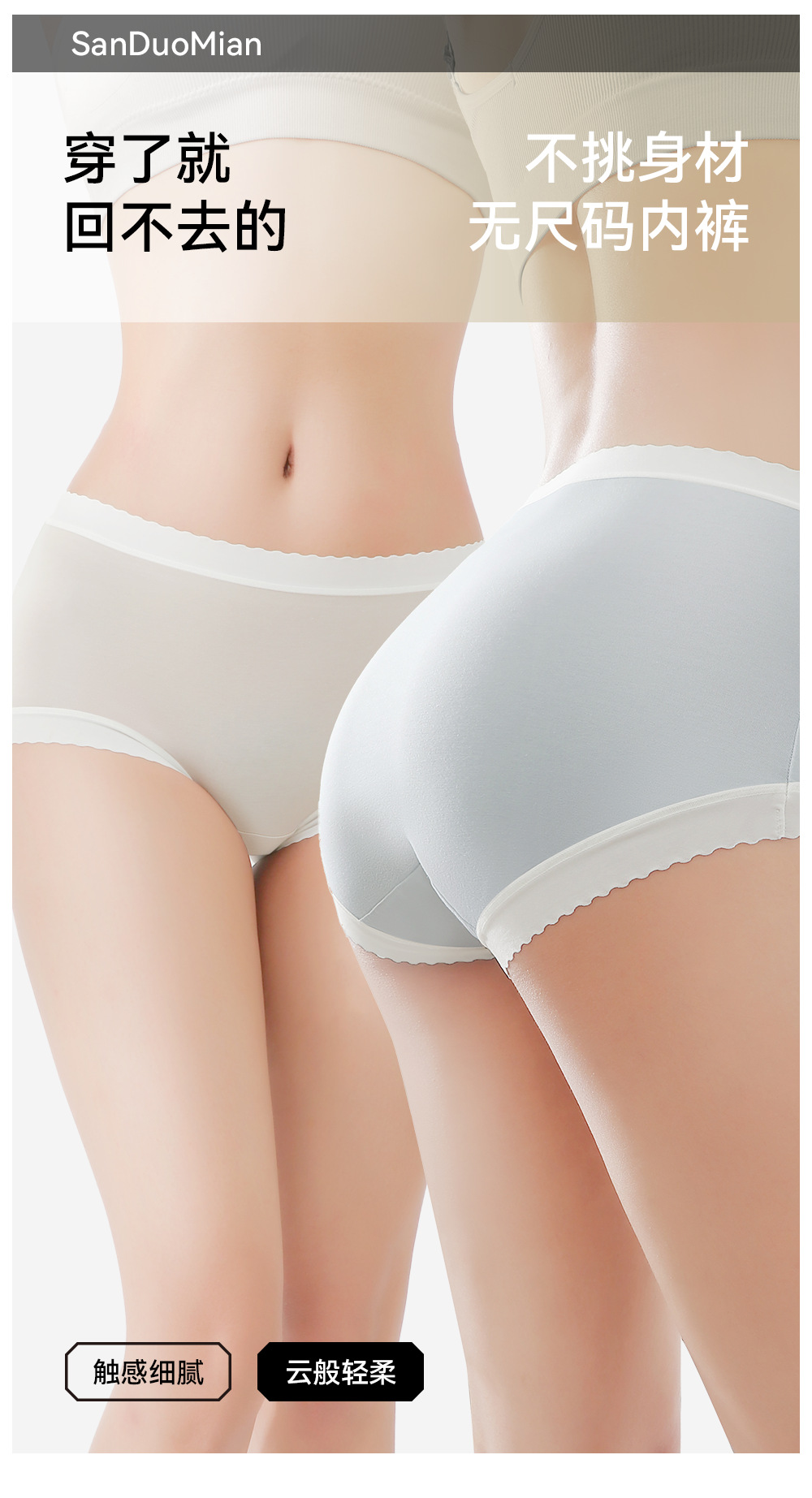 【59元4条】宝娜斯A类母婴级100支新疆长绒棉内裤 7A抑菌柔软透气中腰无痕女士内裤
