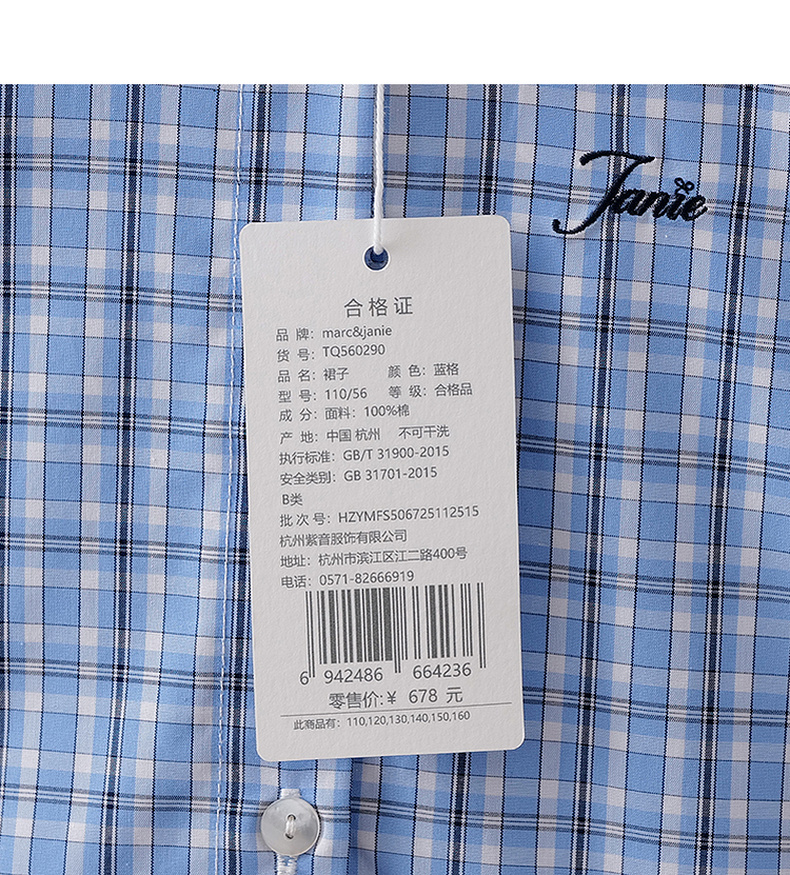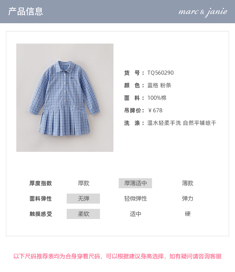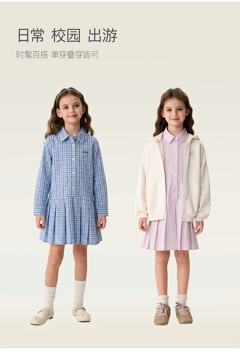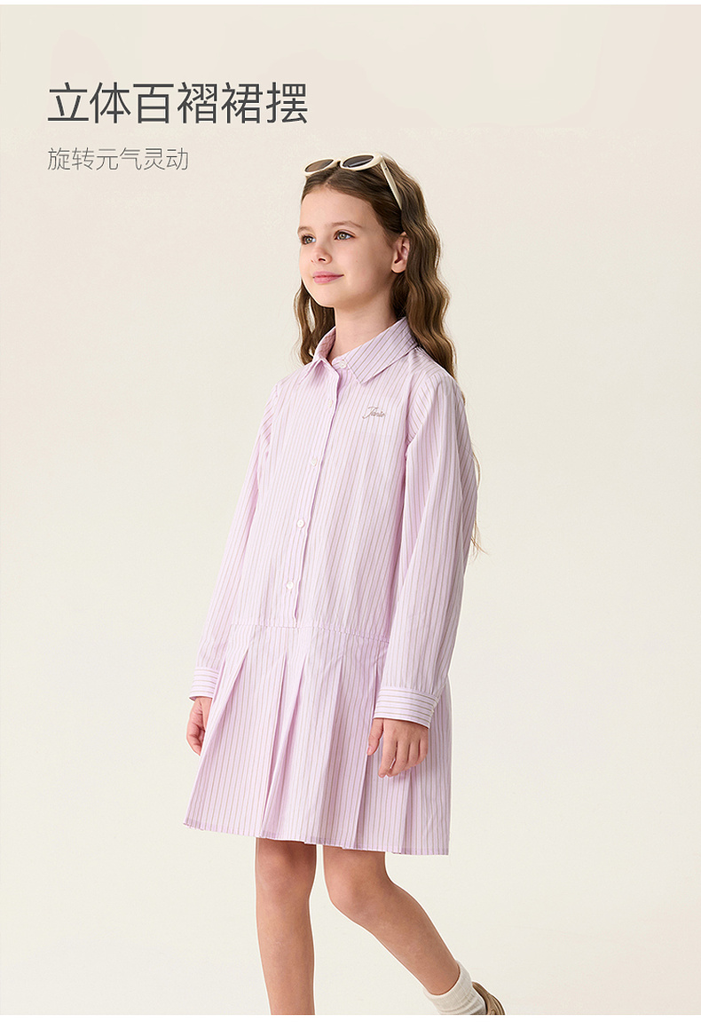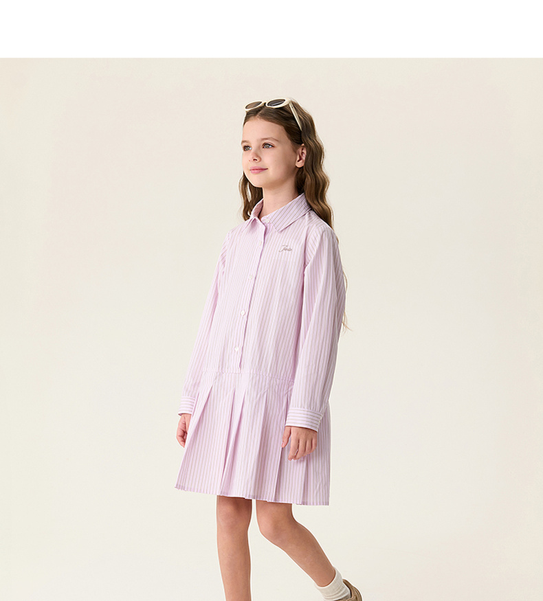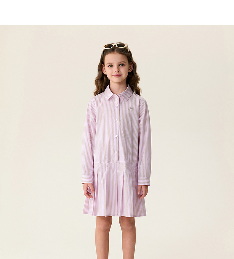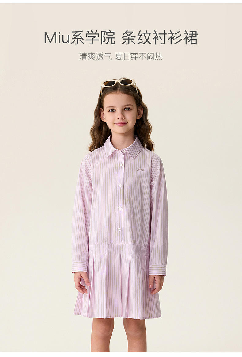马克珍妮Miu系学院女童条纹衬衫裙2026年春装新款560290