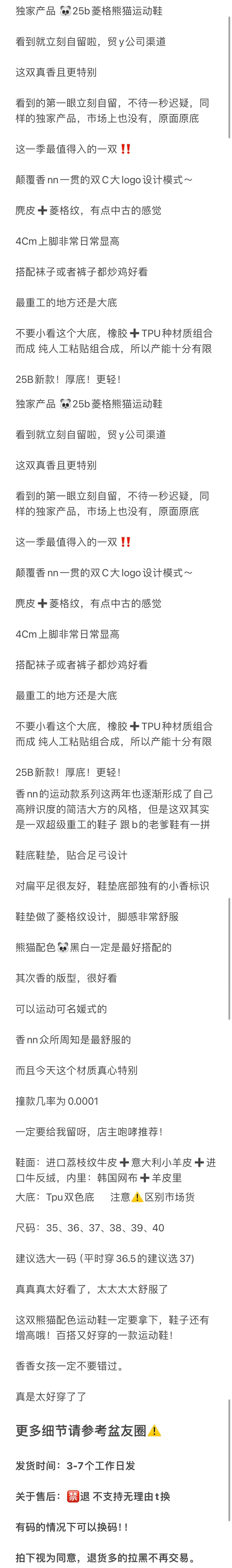 重磅新款! 25B菱格熊猫运动鞋 中古风菱格厚底增高休闲鞋