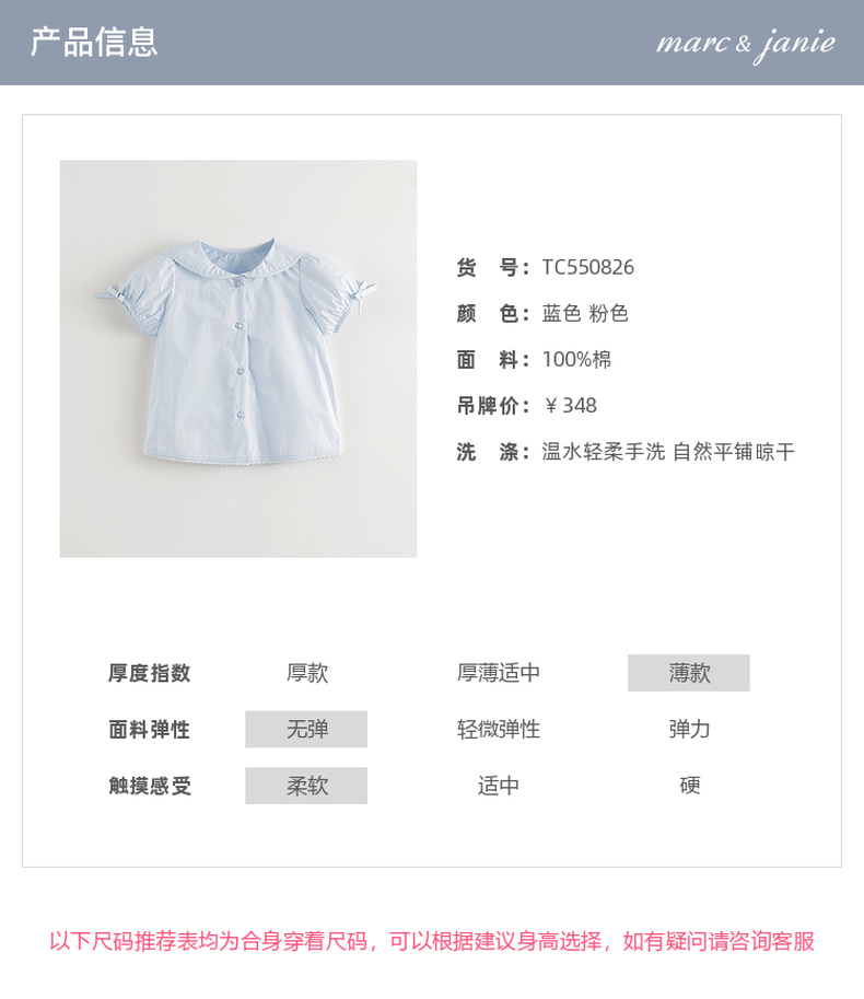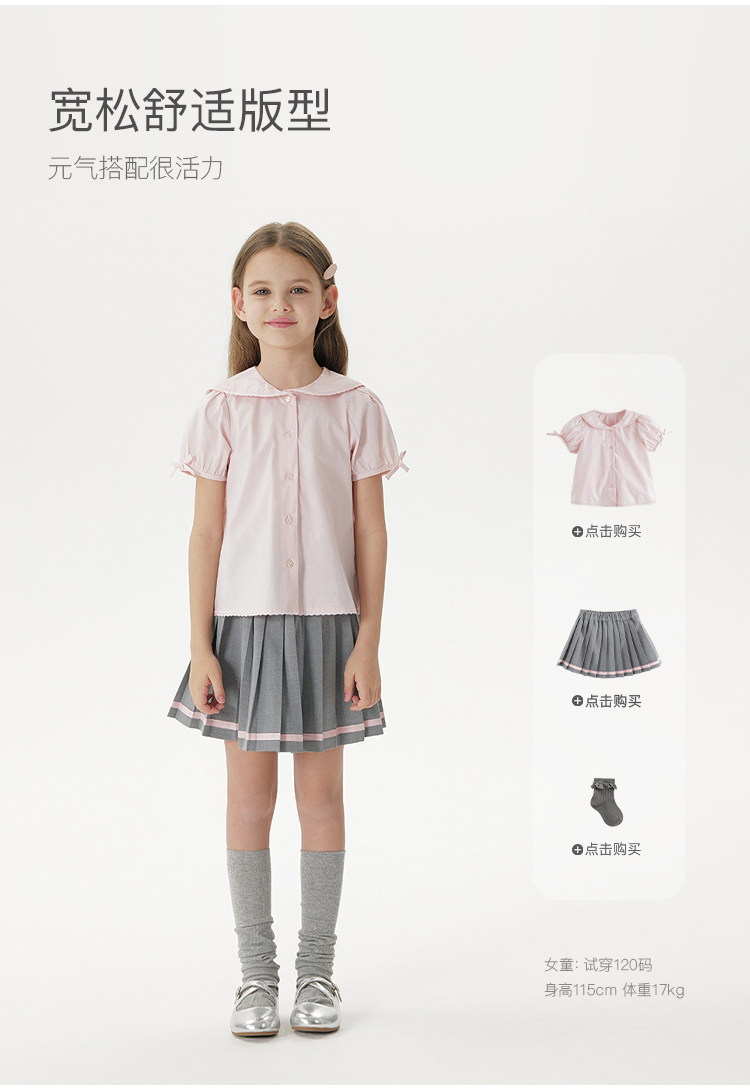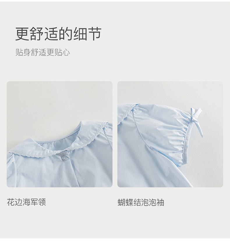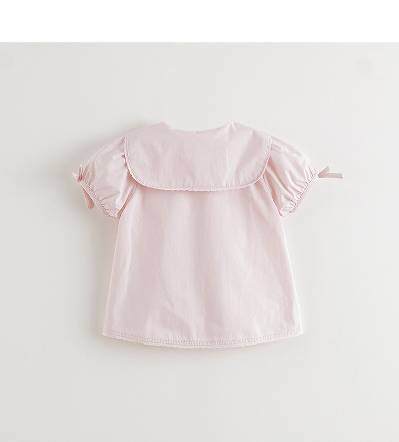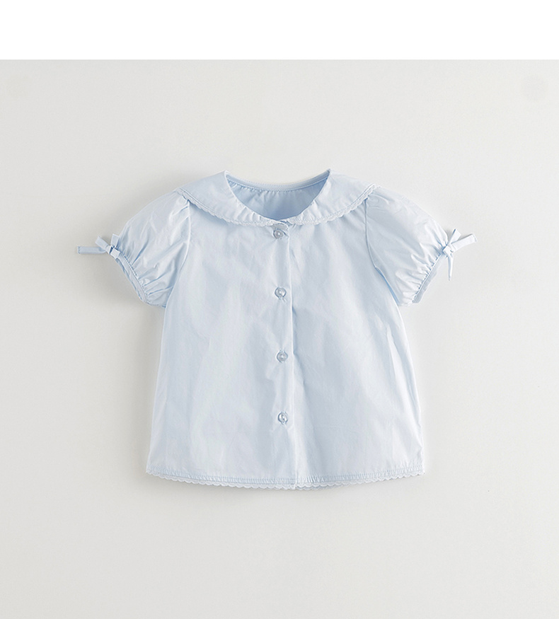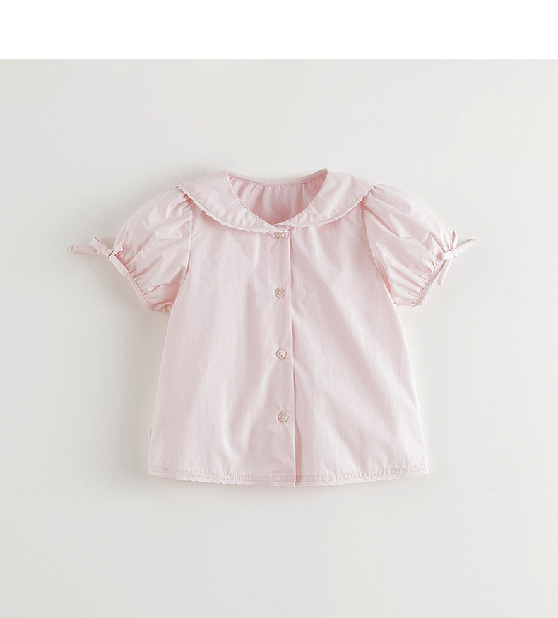 马克珍妮女童甜美泡泡袖短袖衬衫儿童纯棉衬衣2025夏装新款550826