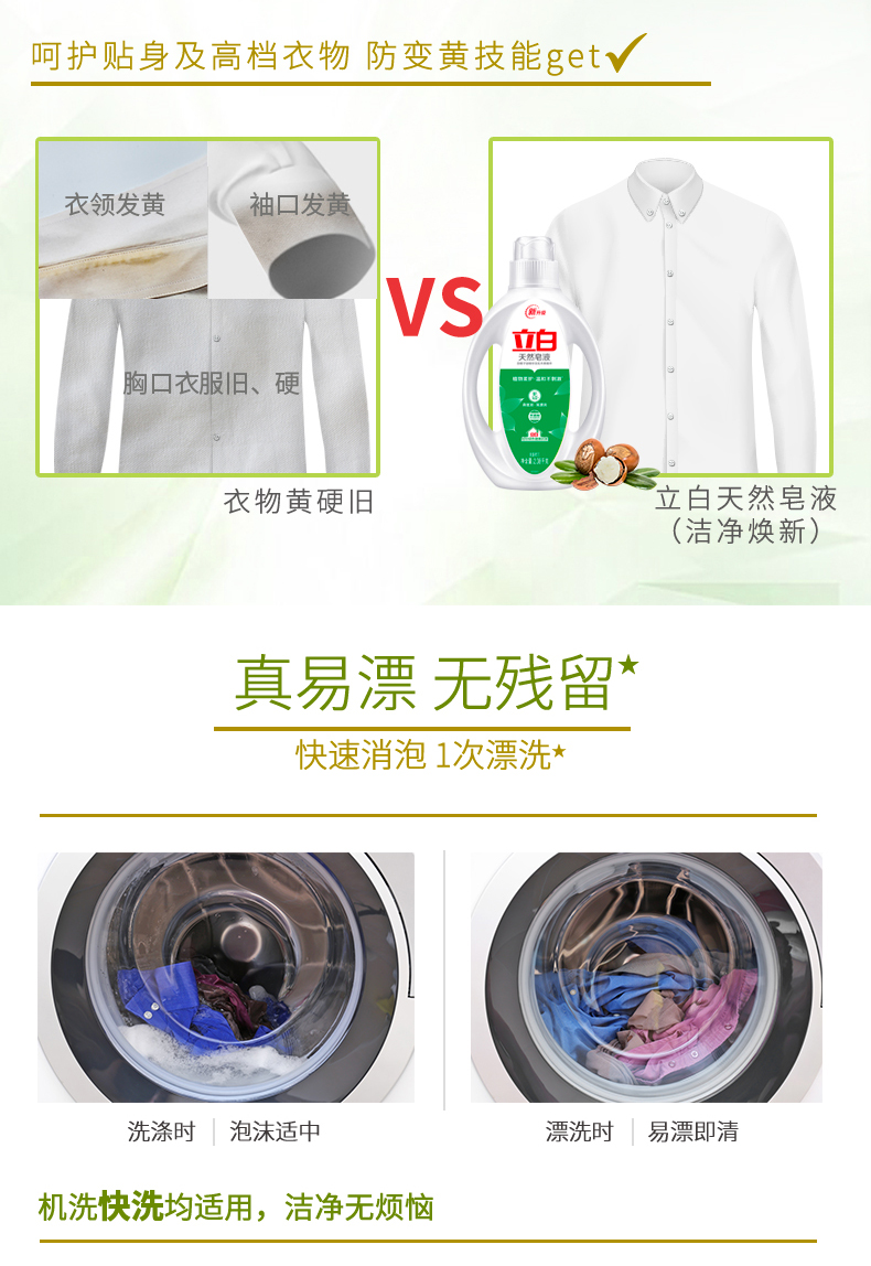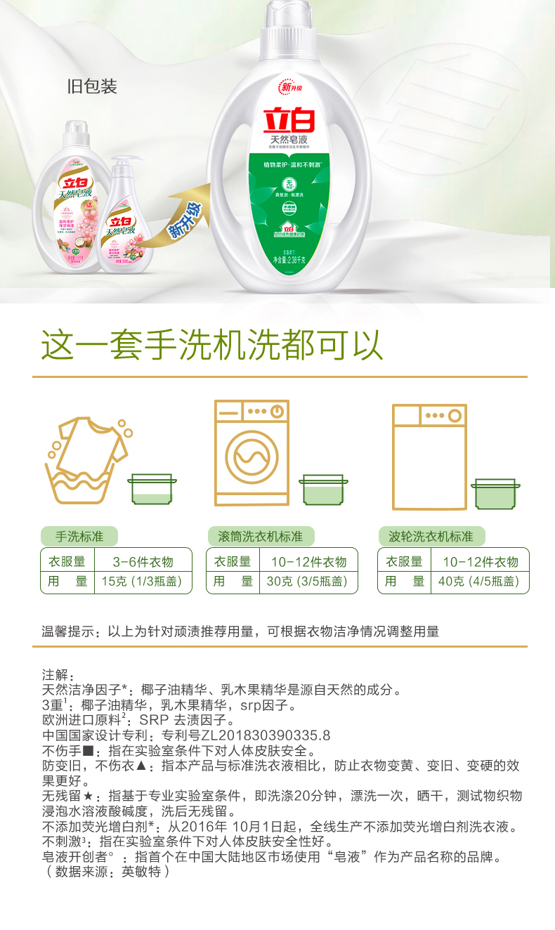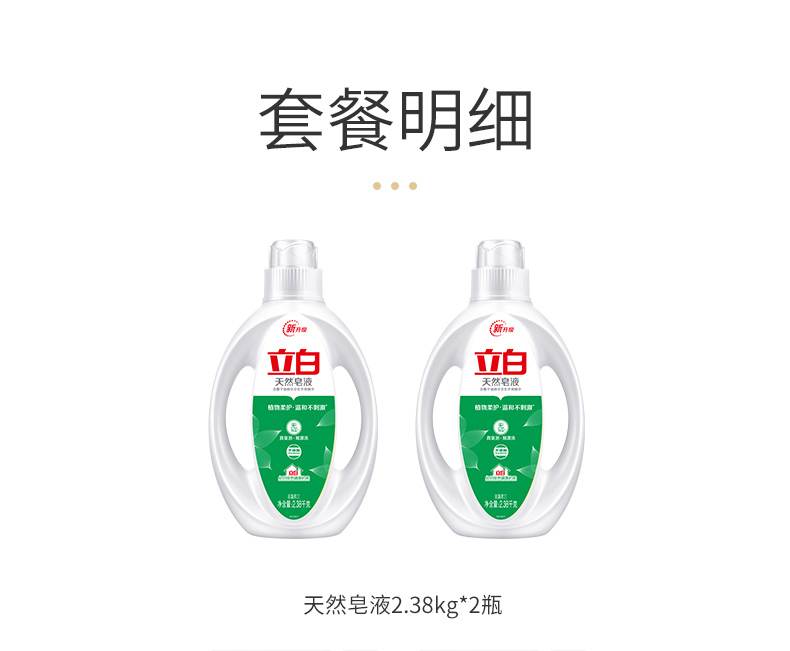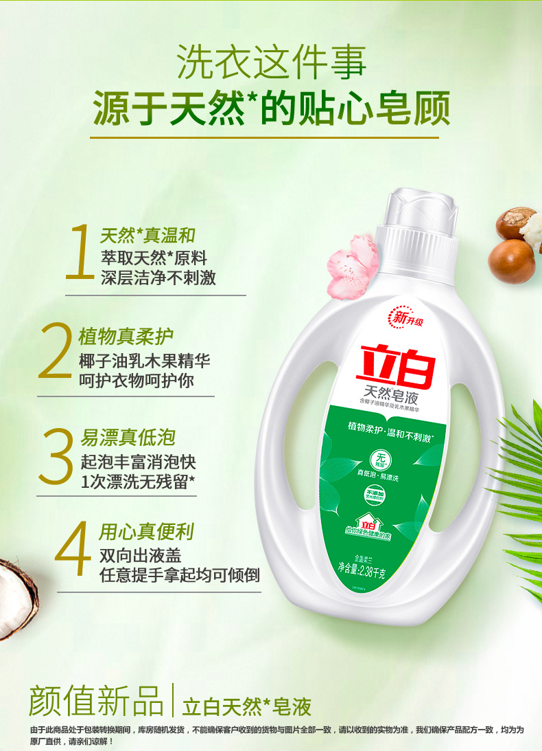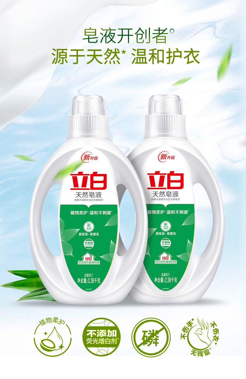 立白 天然皂液(椰子油)2380g*2瓶【9.52斤】 椰子油精华宝宝洗衣液婴幼儿童手洗皂液家用