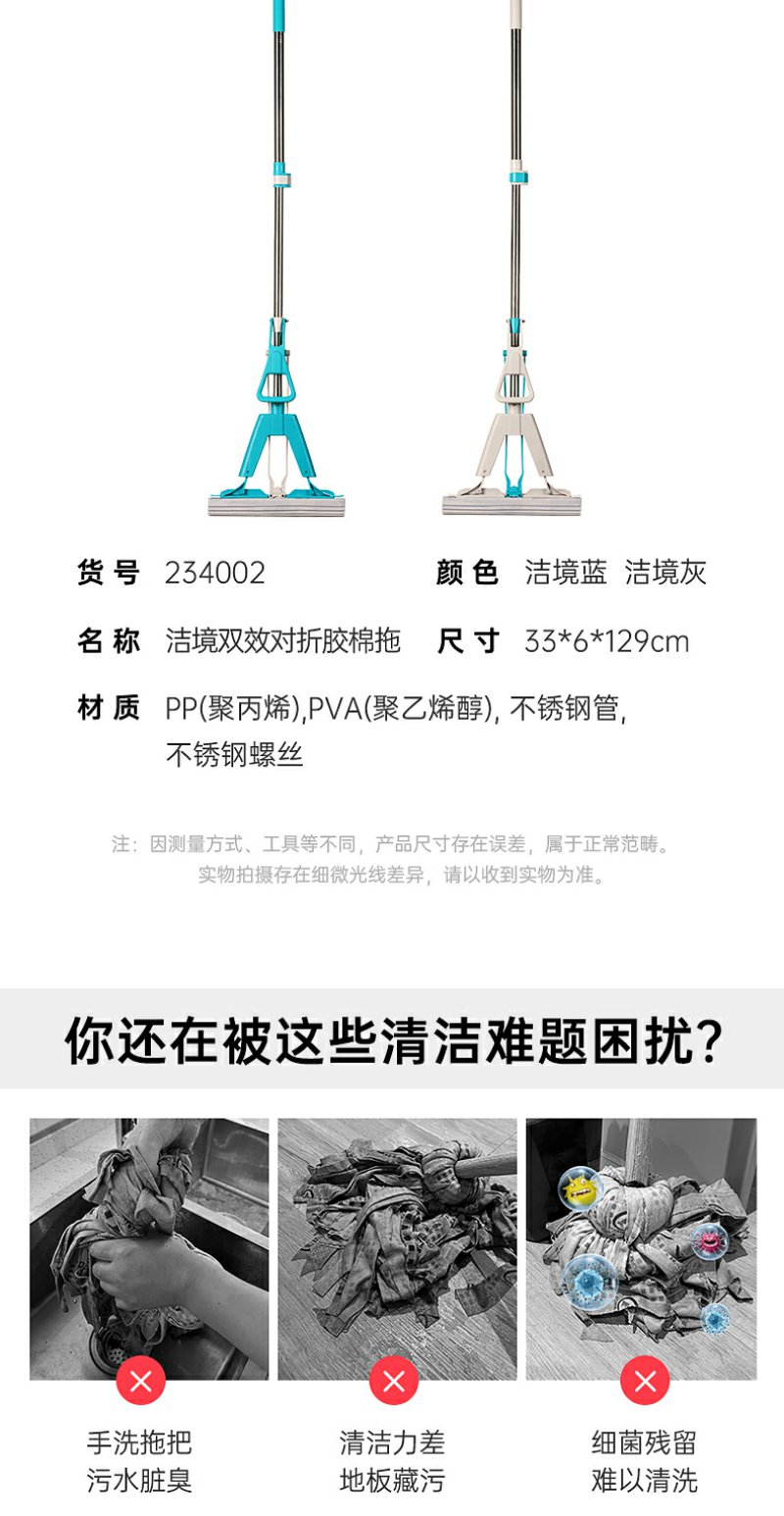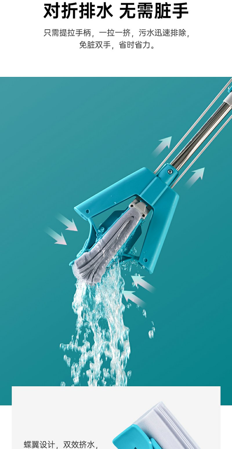 【茶花】免手洗蝶翼设计对折胶棉拖把