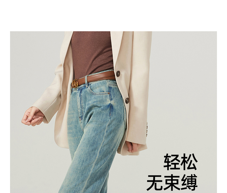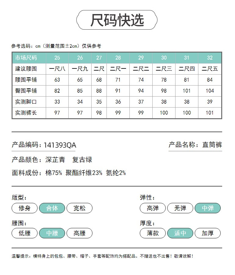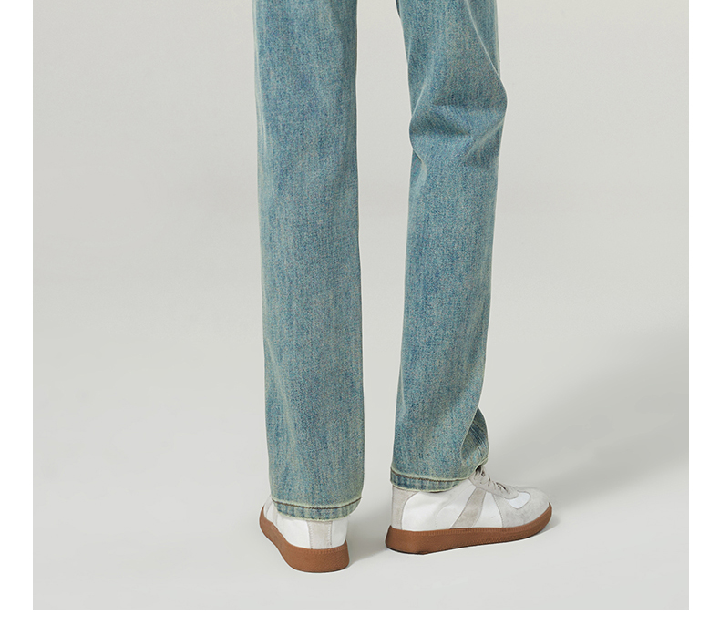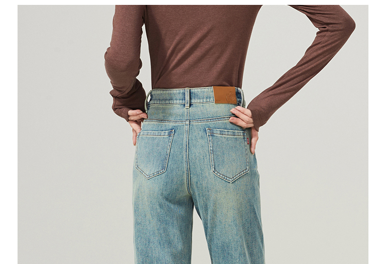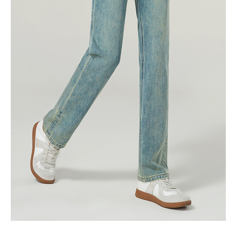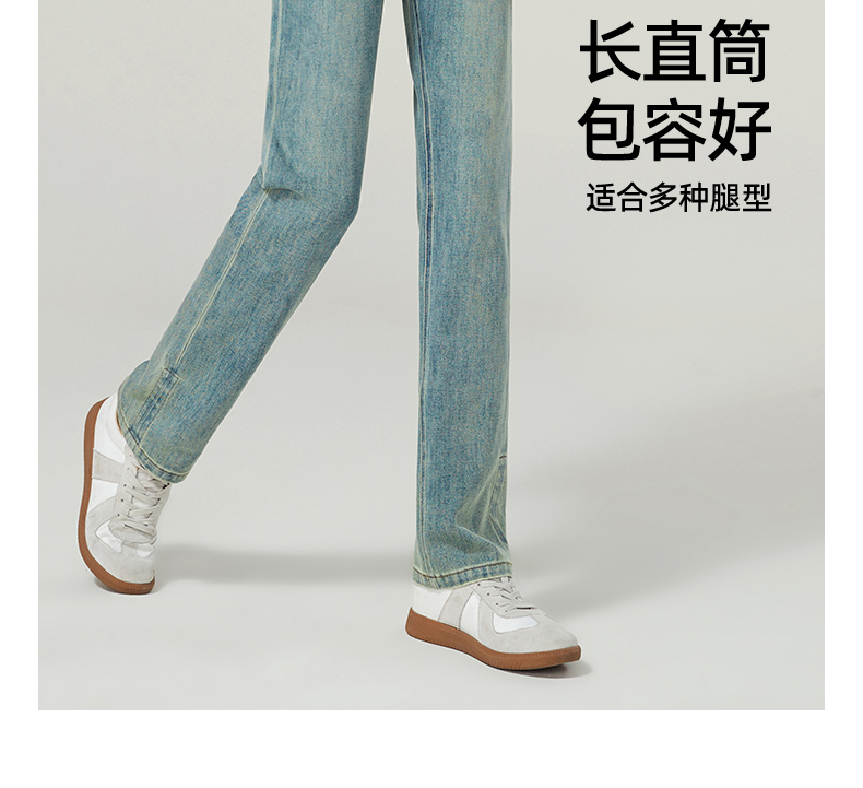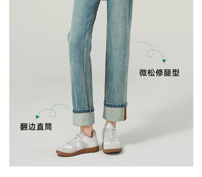 【两穿-牛仔长直筒】逸阳秋款翻边直筒高弹显瘦烟管长裤子1393