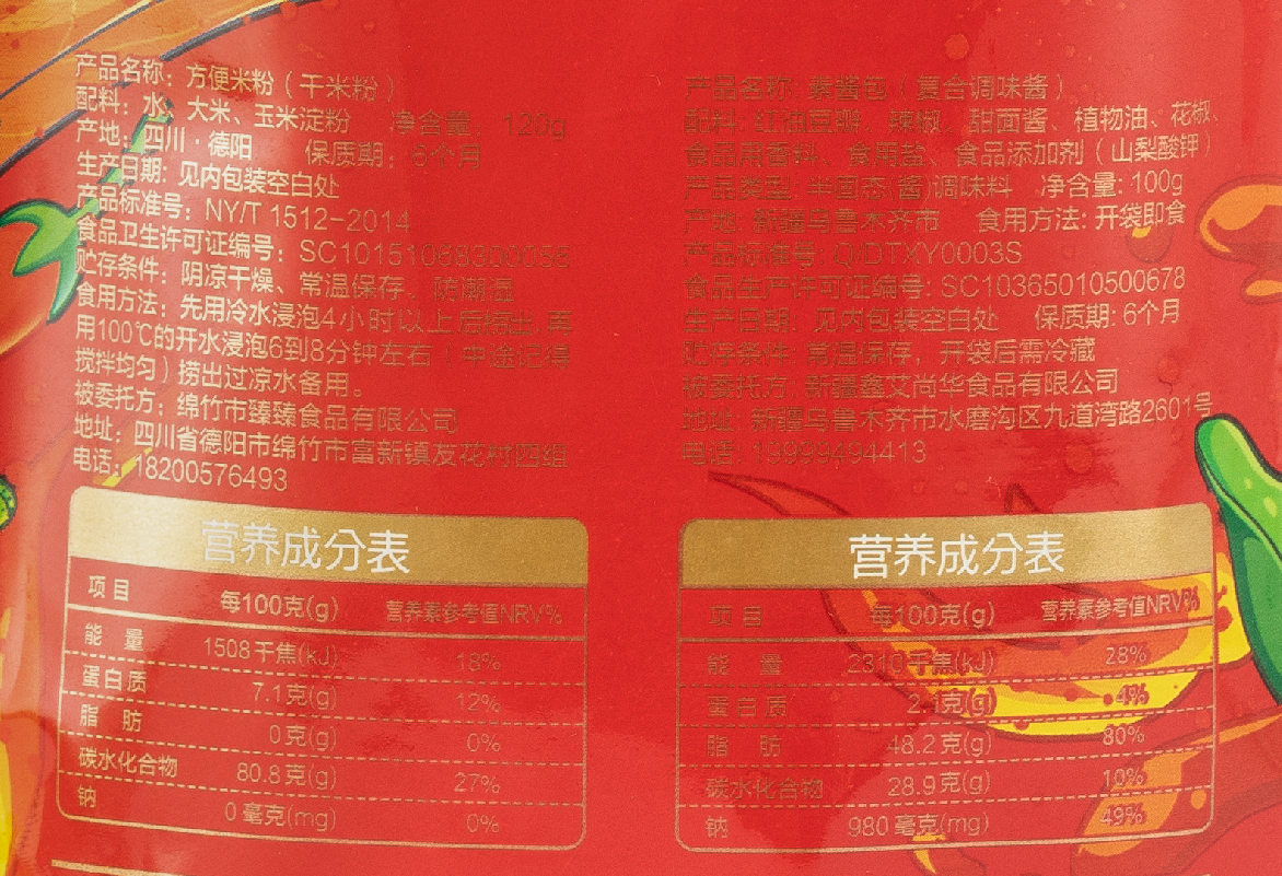 【产地】干米粉:四川德阳;素酱包:新疆乌鲁木齐